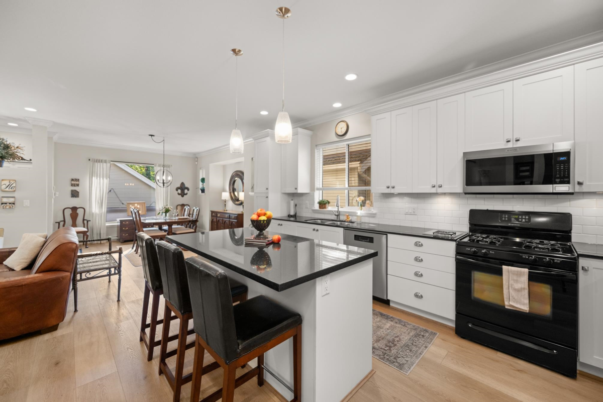 Meticulously cared for 5 bed, 4 bath Craftsman style home by Townline features a bright open layout & high end finishes throughout. Gourmet kitchen offers a gas stove, granite countertops, large island & plenty of storage-perfect for family living & entertaining. Upstairs features 2 spacious bedrooms, bonus study open area, primary suite with w/i closet & spa-inspired ensuite w/soaker tub & shower. 2-bedroom legal suite provides excellent flexibility for extended family, rental income or a home business (zoned for commercial business). Enjoy outdoor living in the fully fenced yard with aggregate stone patio + 3 parking spots inc double garage. Recent updates include flooring, appliances & hot water tank. Pride of ownership is evident in every detail. Quick & easy access to all amenities.