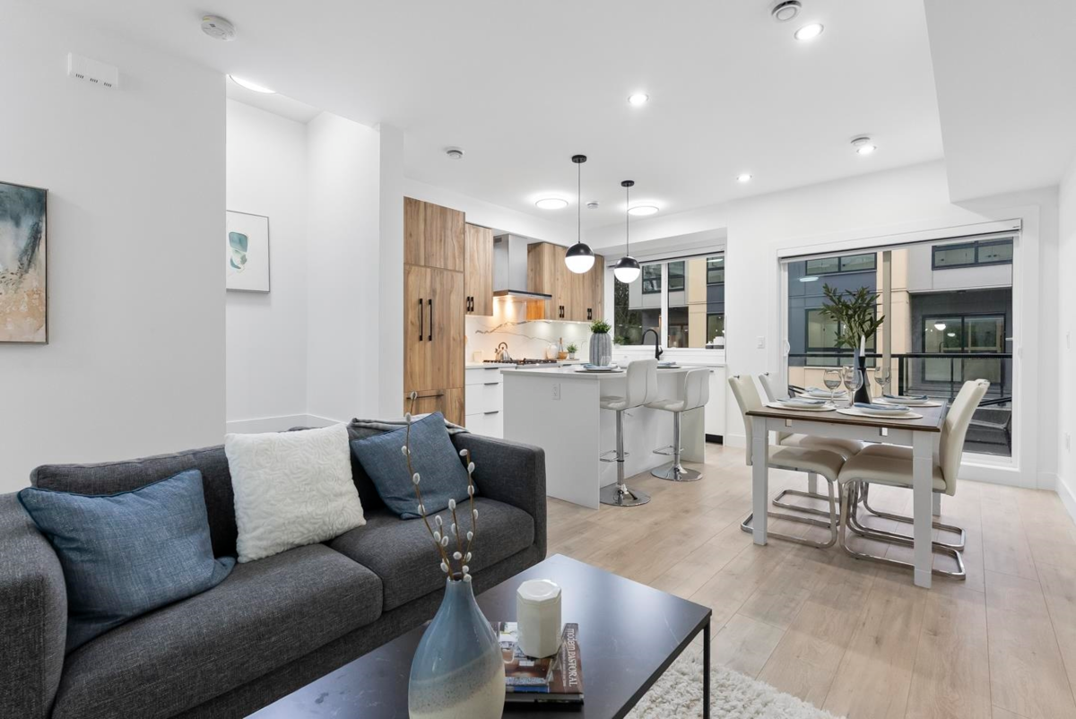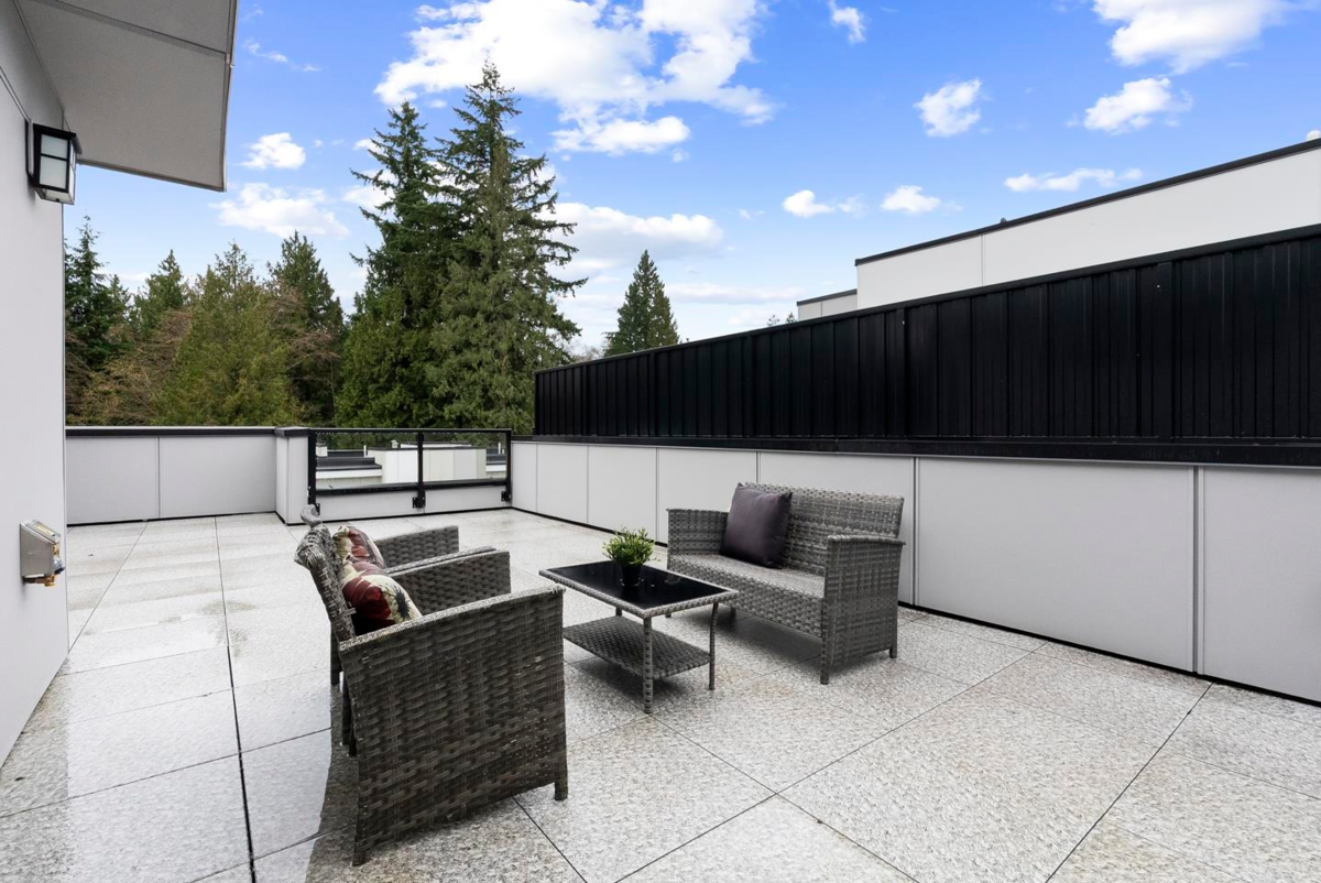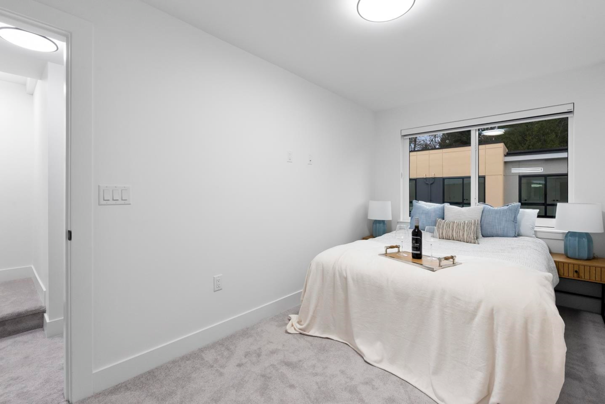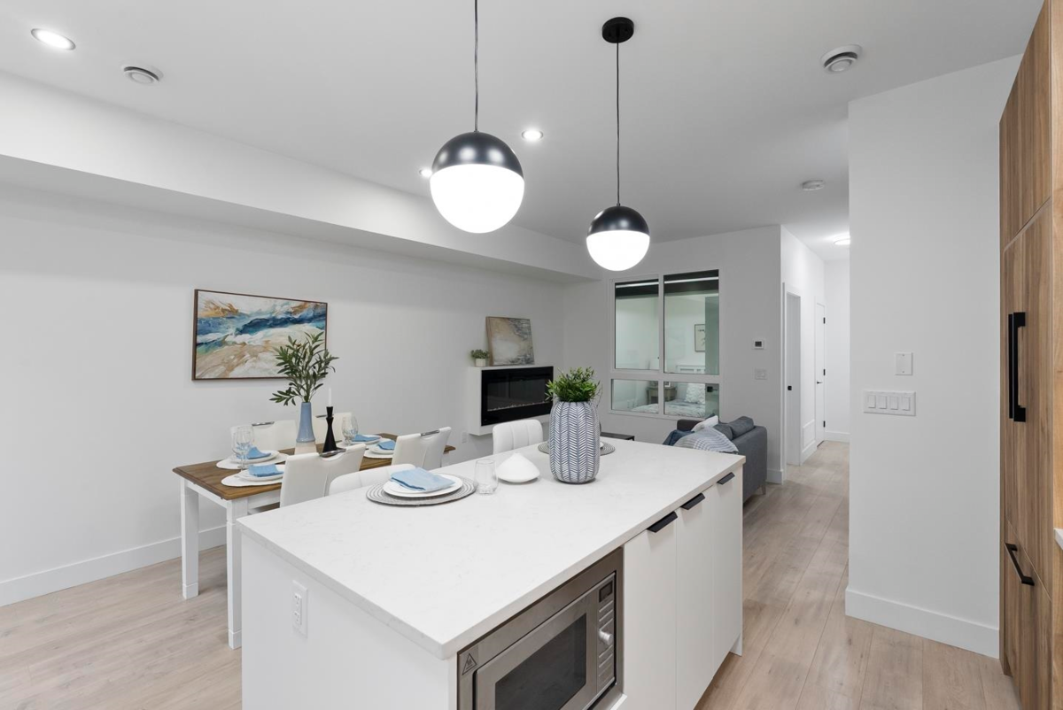Brand-new, ultra-modern 3BR+Flex, 2-bath townhome surrounded by a protected greenspace with a private playground & amenity building perfect for your private events. The bright, airy main level features 9' ceilings, Fisher & Paykel appliances, motorized blinds, and a kitchen made for cooking enthusiasts with a gas cooktop, quartz countertops, and ample storage in custom cabinetry. Enjoy a ROOFTOP PATIO perfect for summer entertaining, complete with a gas BBQ hookup. Just a short drive to Hyland Elementary and Sullivan Heights Secondary & minutes to Newton Town Centre, shops, parks, transit, and major amenities.