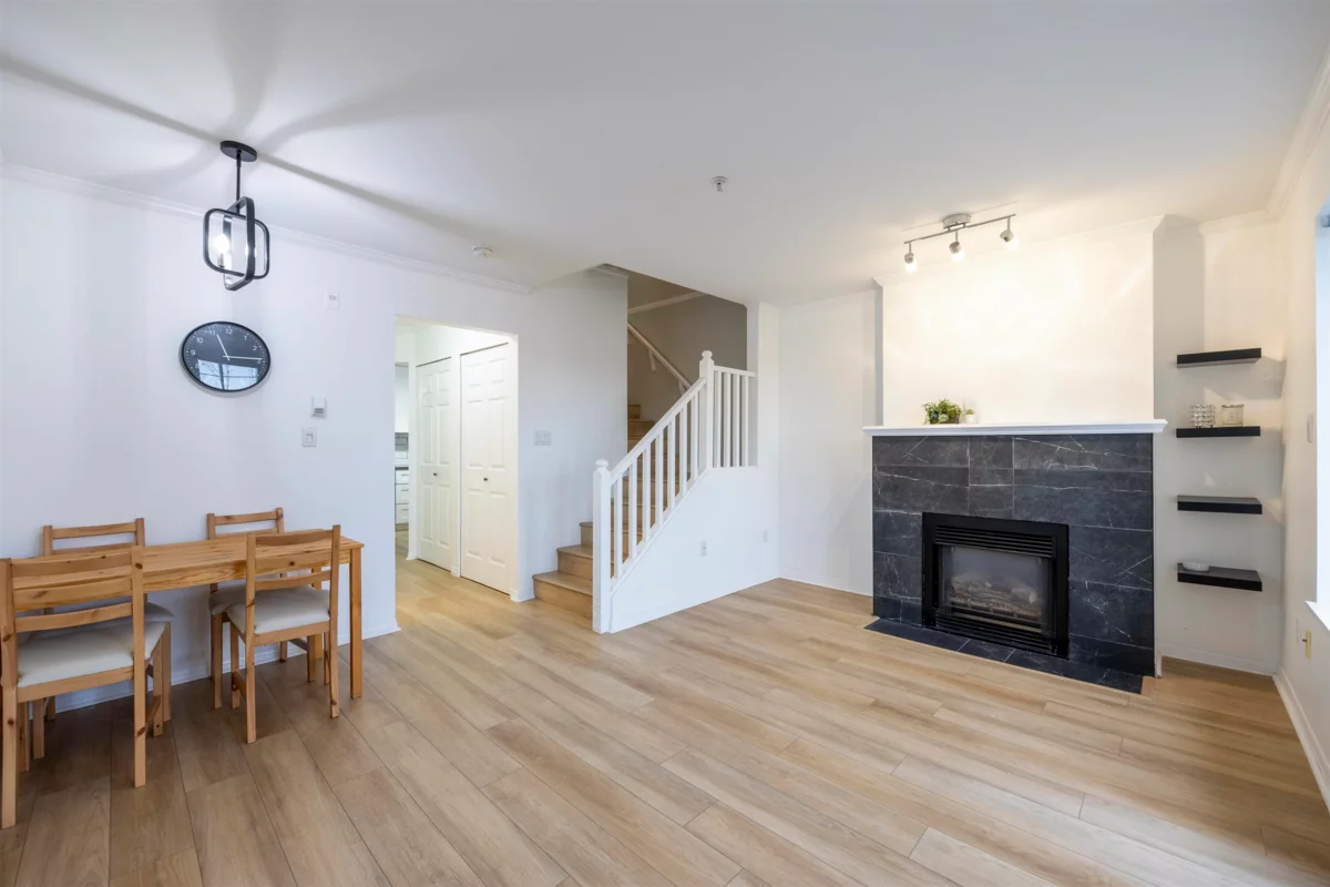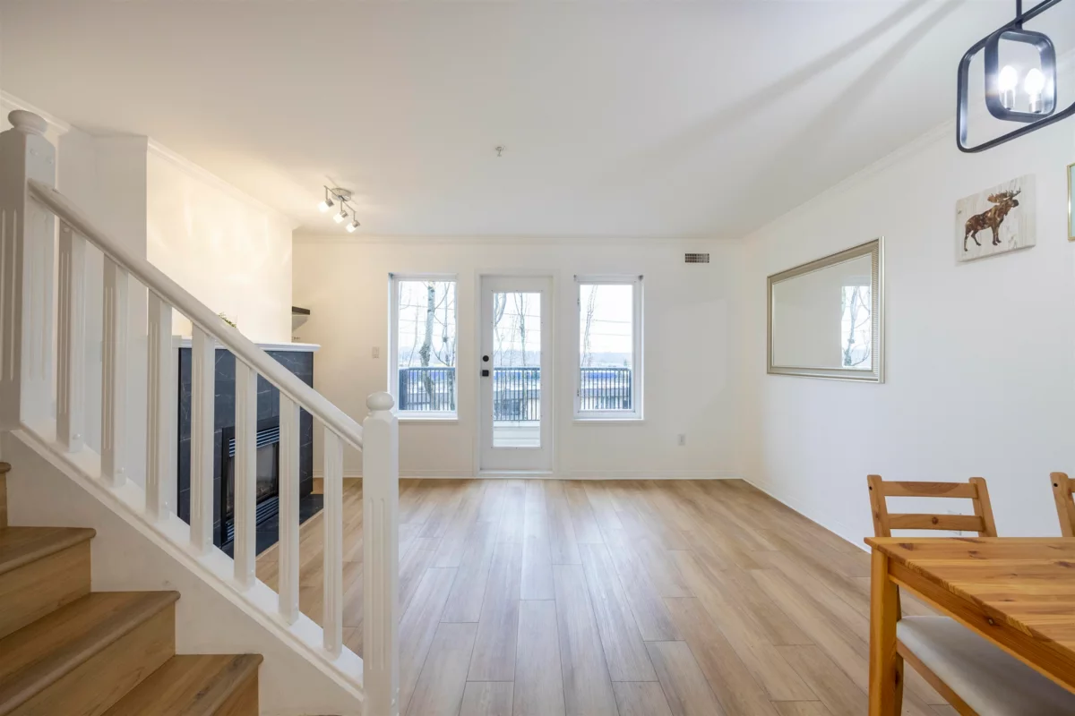 ATTENTION! Your search of home ends here. Renovated in 2022. This beautiful and Bright 2 Level Condo in Maillardville! Top Floor. 2 bedrooms, 1.5 bath. 1,022 sqft. New kitchen with new quartz countertops, new S/S appliances.new cabinets. New Luxury vinyl floor. balcony with breathtaking view over look the river and city. Main level is Radiant floor. features a bright living room, a cozy gas fireplace, dining area leading out to the balcony. kitchen, insuite storage, laundry & powder room. Upstairs features 2 spacious, separated bedrooms both with big closets and a large full bathroom. pets allowed with restrictions and rentals allowed. EV enable parking stall. Roof in 2020. Conveniently located, T&T,IKEA transit and shops. So many more… A rare opportunity to own.