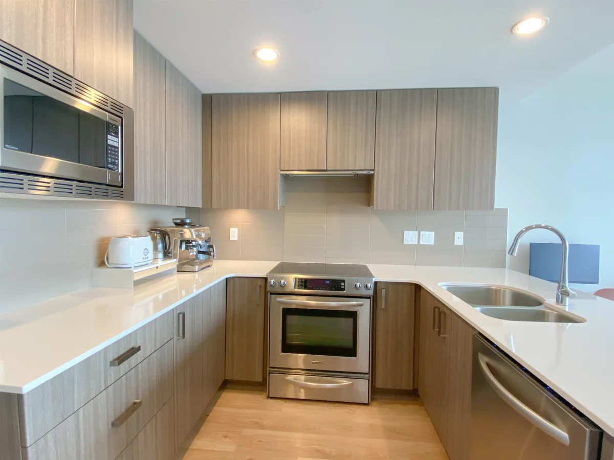 Northbank - located in the heart of Downtown New Westminster. Panorama views with Fraser river, Pattullo Bridge and Northshore Mountains. 5 minutes walk to Columbia Skytrain station. Close to Queen's Park, Pier Park, shops and restaurants. Great location connecting Burnaby, Richmond and Surrey. This unit has functional layout, with good size living room & open kitchen, includes stainless steel appliances and quartz countertops.