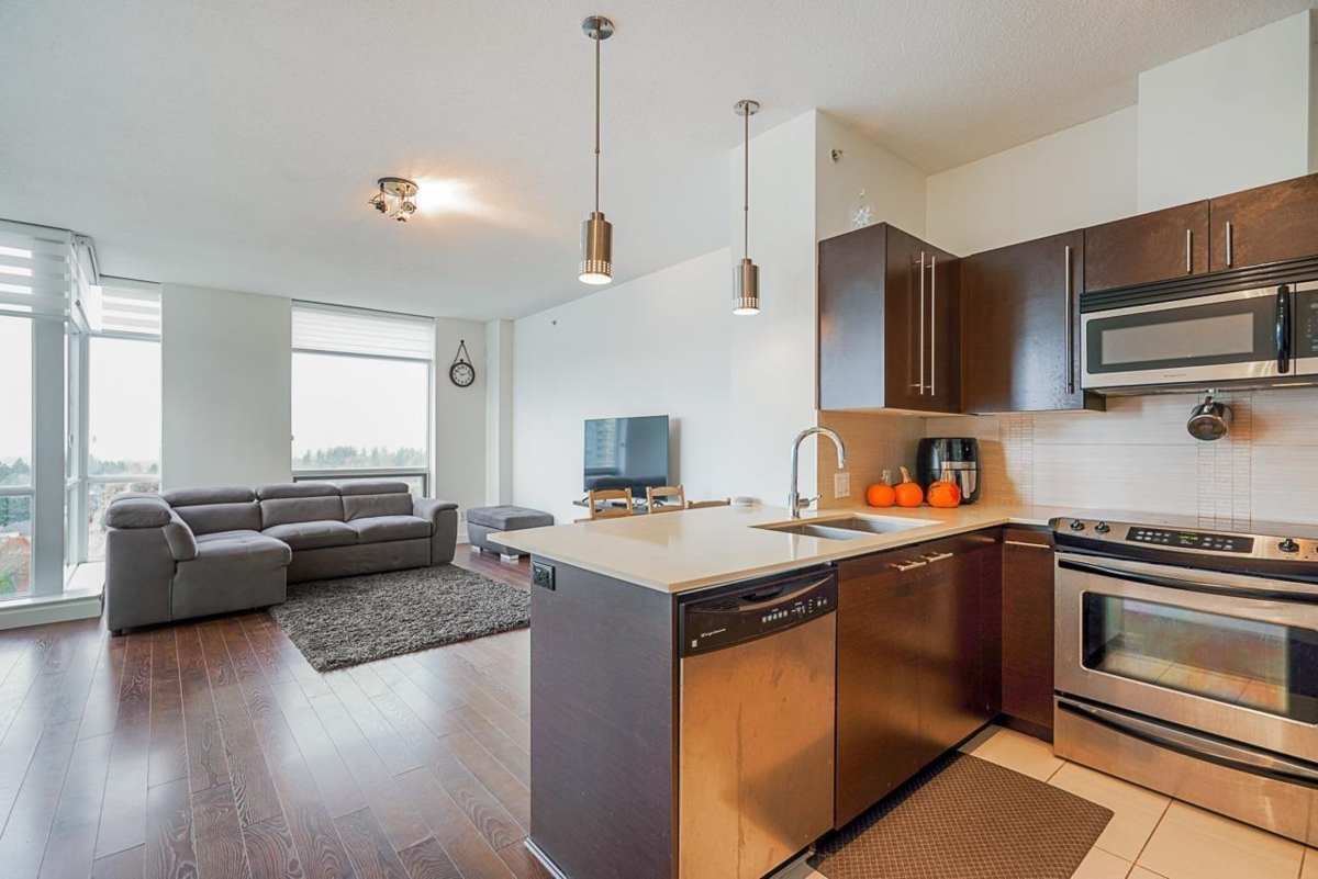 Corner unit on the 19th floor with breathtaking spectacular views of the city and mountains. This 2 bedroom, 2 full bathroom condo is sure to impress as it has been lovingly cared for by its original owners and shows brand new. It features an open floor plan layout, granite counter tops, and stainless steel appliances. This unit is ideal for first time home buyers or investors as it is in walking proximity to SFU, skytrain stations, bus stops, grocery stores, both levels of school, and many other essentials. This one will not last.