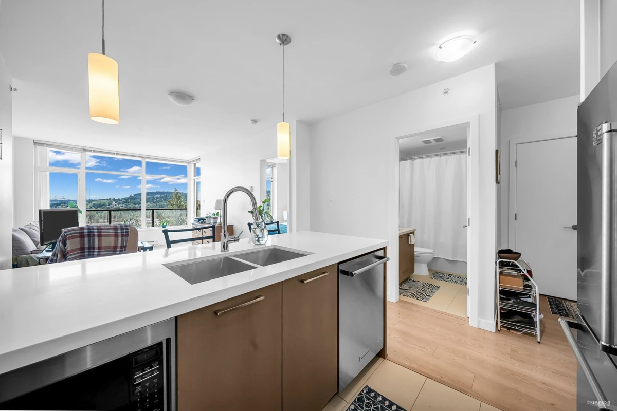 Welcome to Westwood by ONNI, perfectly located just steps to SkyTrain, Coquitlam Centre, restaurants, and more—yet quietly tucked away from Lougheed noise. This bright, south-facing 1-bed home offers panoramic city views, soaring ceilings, and a modern open layout. The kitchen is a chef’s dream with quartz countertops and a 4-burner gas cooktop. Includes parking, storage locker, and access to resort-style amenities: pool, gym, sauna, guest suite, and more. Pet- and rental-friendly, It was generating $2,100/month. Whether you're investing or moving in—this is a must-see gem!