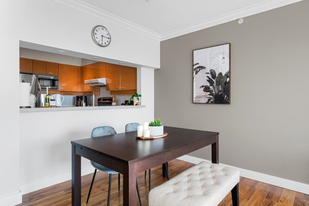 Say hello to 19th storey city & water views! With over 1,100 sqft of floor area, this oversized 2 bed 2 bath home offers an abundance of West exposure natural light w/ floor to ceiling windows in a fantastic OPEN layout. Spacious kitchen overlooking a large lvgrm/dinrm area; leading into the balcony w/ views of Fraser River & Mount Baker! Insuite washer/dryer, quality laminate floors and gas fireplace. Excellent building w/ fully equipped gym, resident caretaker & car wash area. Steps away from the Quay Boardwalk, Quayside Market, Parks, Skytrain, Transit, Shopping & Schools. Building has been re-piped, Rainscreened, new fire panel, EV Chargers! Great peace of mind! 1 Secure U/G Parking, visitor parking with bike storage & 1 locker. 100% Rentals & 2 pets OK!