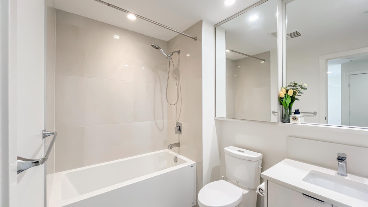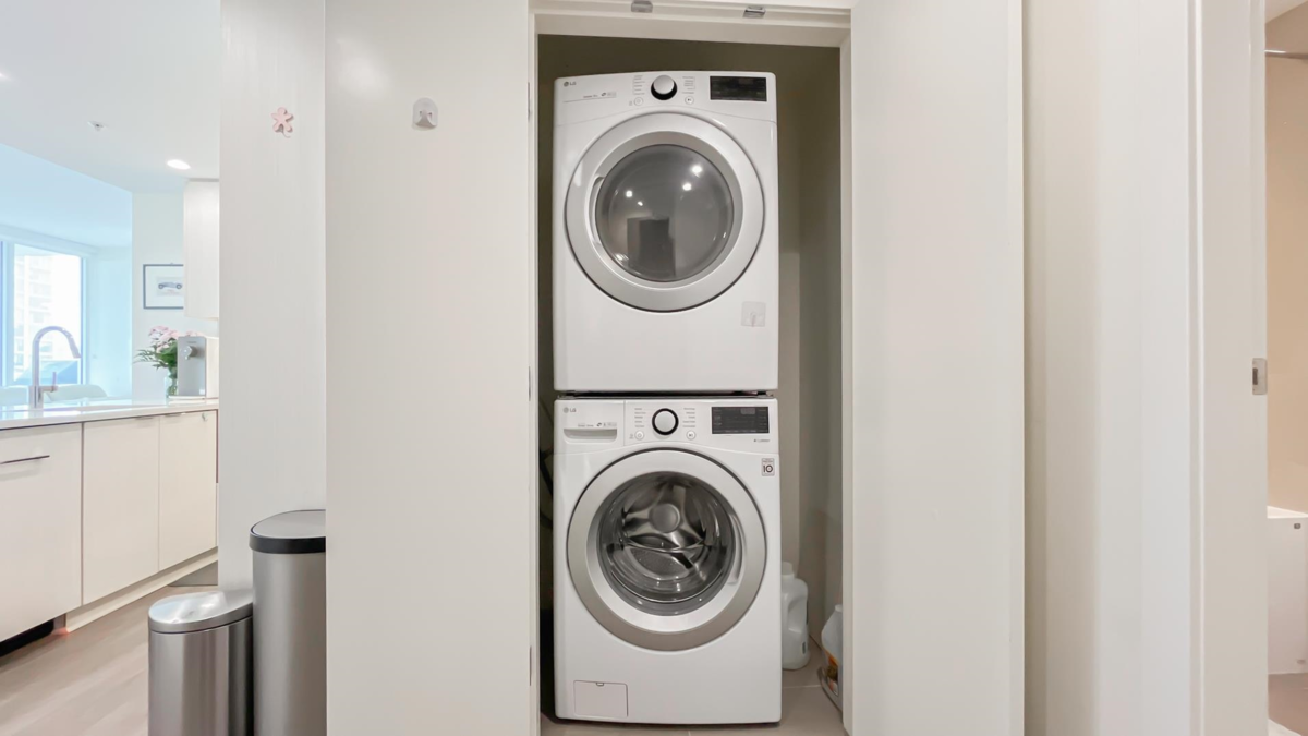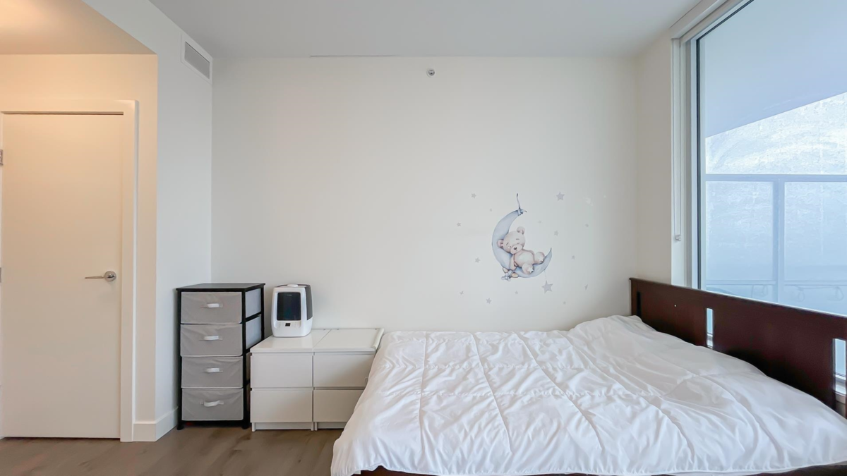 Amazing CORNER unit at Imperial by AMACON located in the vibrant Metrotown area. Functional layout with 2 x separated bedrooms + 2 full bath. Open concept kitchen with quartz countertop and full size integrated appliances including gas cooktop. Bright living and dinning area with 9' ceilings. This home also features air-conditioning, wide-plank laminate flooring throughout, and wraparound balcony with beautiful city view. Resort-style amenities include fitness centre, social lounge, music/yoga room, concierge, and guest suite. Mins walk to Metrotown shopping centre, skytrain station, bus stops, restaurants, Bonsor Recreation Complex, and more.