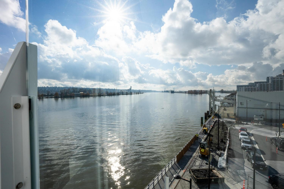 Welcome to PIER WEST by Bosa, the most PRESTIGIOUS address on the New West WATERFRONT! Enjoy breathtaking 180 degree UNOBSTRUCTED RIVER/CITY VIEWS from this luxurious corner unit home. Features include floor to ceiling windows in each room to fully take advantage of the view, AC, Bosch high-end appliance package with panel fridge, wall over, gas cook top, island, waterfall stone counter tops, heated floors in both baths, den for home office/study & so much more! Luxury World-class amenities include Owner's Club House, Dining lounge with outdoor space with BBQ's gym facility, Sauna/Steam rooms & a 24-hour concierge just to name a few. Mere steps to eclectic shops, eateries, parks & transit round out this incredible opportunity. No disappointment! Call today for your private viewing.