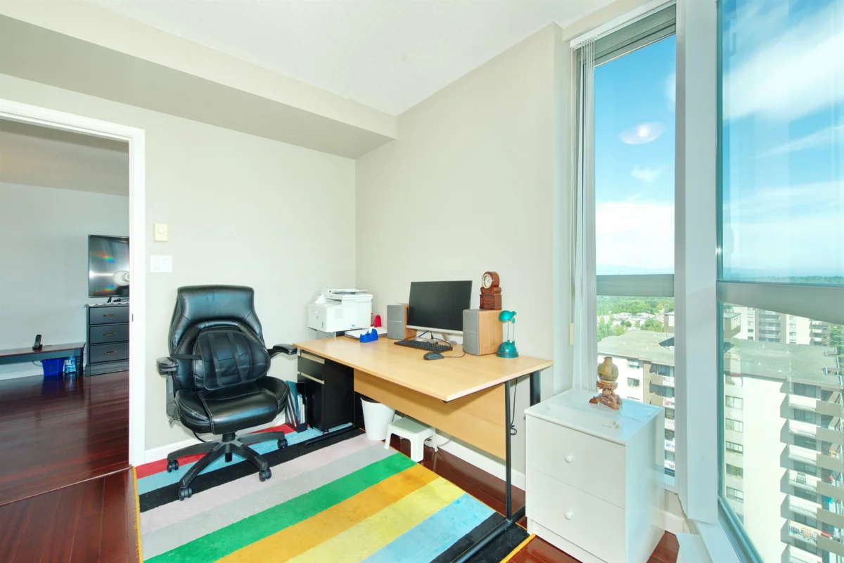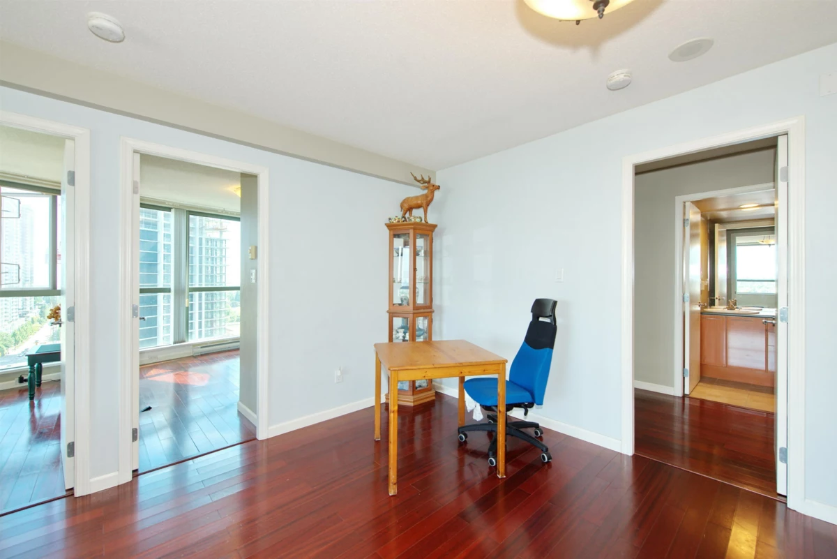 BREATHTAKING unobstructed view of Deer Lake & Mount Baker. Spacious & airy SOUTHEAST facing corner unit with lots of natural lights. Concrete highrise located right across the VIBRANT Metrotown shopping mall surround by coffee shops & restaurants. Few minutes walk to metrotown skytrain, T&T, Crystal Mall & Central Park. The entire unit was JUST FRESHLY PAINTED by professional. Spacious 2 bedrooms & BIG den (den has floor to ceiling windows and and is big enough for a 3rd bedroom). Walk-in closet in Primary Bedroom. Well Kept by the owner & updated kitchen with dark wood color scheme Cabinets & white quartz countertop, stainless steel appliances and updated laundry machine. Lamanite floor throughout the entire unit with gas fireplace in living room. 2 Side by side parking stalls &1 locker.