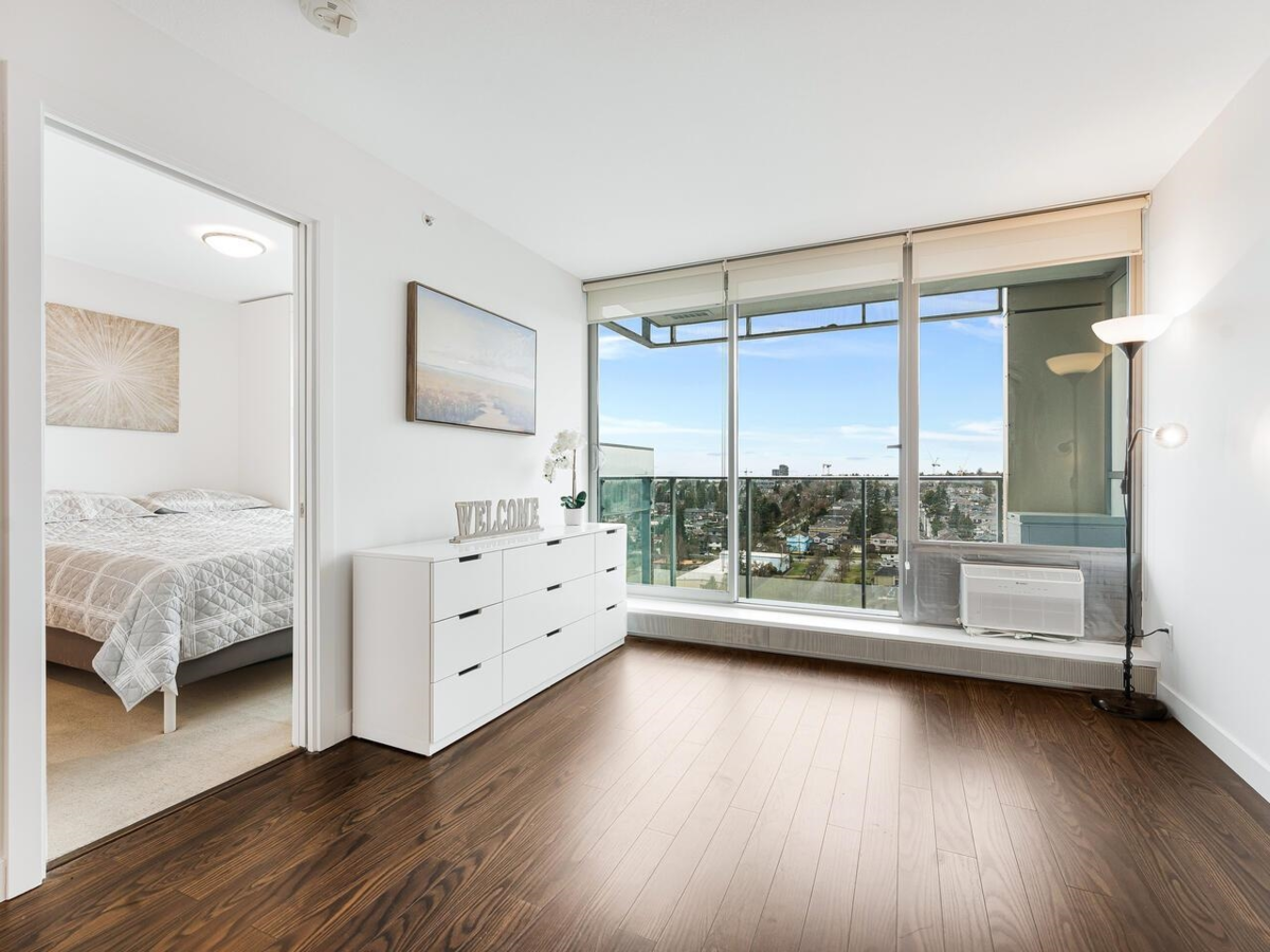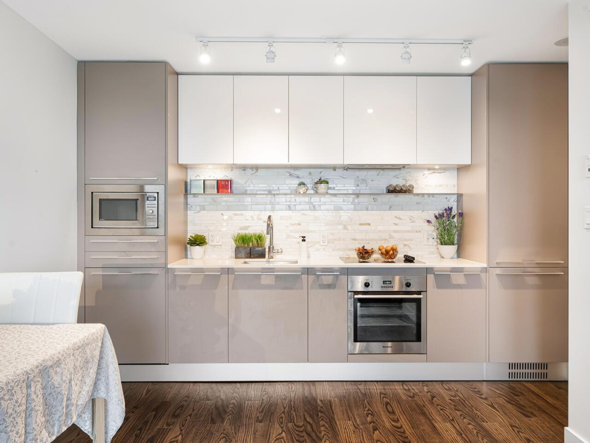 Very clean and well kept, very functional floor plan, open layout, one bedroom unit in MC2 built by Canadian-owned Intracorp Homes. It offers bright living room and bedroom where you can have unobstructed city view. On the balcony, you can see the beautiful ocean and mountain views. This modern unit is equipped with Italian cabinets, Blomberg appliances, Caesarstone counter tops, Grohe faucets, roller blinds, engineered laminate flooring. A few minutes walk to T&T Supermarket, Canada Line skytrain station, bus stops, restaurants, coffee shops, banks, Cineplex theater. Langara golf course is nearby. The catchment school: JW Sexsmith Elementary and Sir Winston Churchill Secondary. One parking, one storage locker, and two bicycle storage lockers add more values to this 19th floor unit.