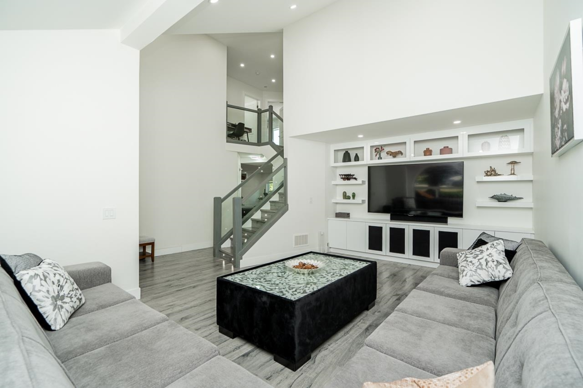 PERFECT HOME FOR 2 FAMILIES W/UNAUTH SIDE SUITE on Ground Floor with NO Stairs! You'll love all this home has to offer! Modern Updates incl; All doors & windows, beautiful kitchen incl. WOK KITCHEN, all bathrooms (incl. plumbing), electrical updates incl. switches, New Flooring throughout, gorgeous custom stairs & railings, all appliances, New Furnace, hot water tank + HEAT PUMP (which is complete with AC for those warm days ahead + New Patio Shed for all your outdoor items! Vaulted ceilings on your main, create a brighter living space + 3 generous Bdrms above incl. Lrge walk-in! BONUS: SIDE SUITE W/ 2 BDRM,1bath w/ Sep. Entry! Lrg 7,369sqft Lot w/S. FACING YARD too! Walking distance to Latimer Elem. & Clayton Heights Sec. RV PARKING too!