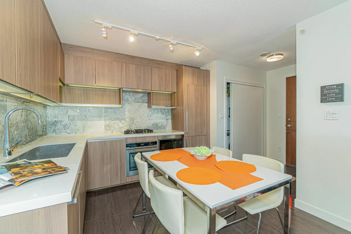 Built by famous developer Concord Pacific! This open-layout 1 bed features modern kitchen, gas stove, quartz countertop; one of the best amenities: swimming pool, Jacuzzi, Steam & Sauna, gym, playground, tennis court, theatre, party room. 2 mins walk to King George Skytrain, 5 mins walk to Central City Mall, T&T and park. 1 parking & 1 locker included. Perfect for self-living & investment! Must Go!
