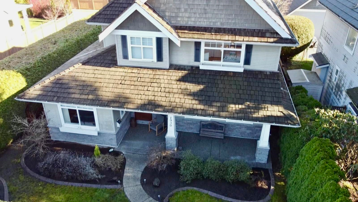 Rarely available craftsman home built by renowned Paul & Mitch Evanish. This 4 bed, 3 bath is ideally situated on a corner lot with back lane access and showcases quality details throughout. Surrounded by manicured hedges with updates including a cedar roof, maple flooring, and forced-air heating with air conditioning and more. The home features a detached garage with a loft/studio above and zoning allows for a coach house. Private yet commuter-friendly, and just steps to Sunnyside Forest trails and close to White Rock Pier. A fantastic opportunity to own a very well built home. Call today to book your private viewing!