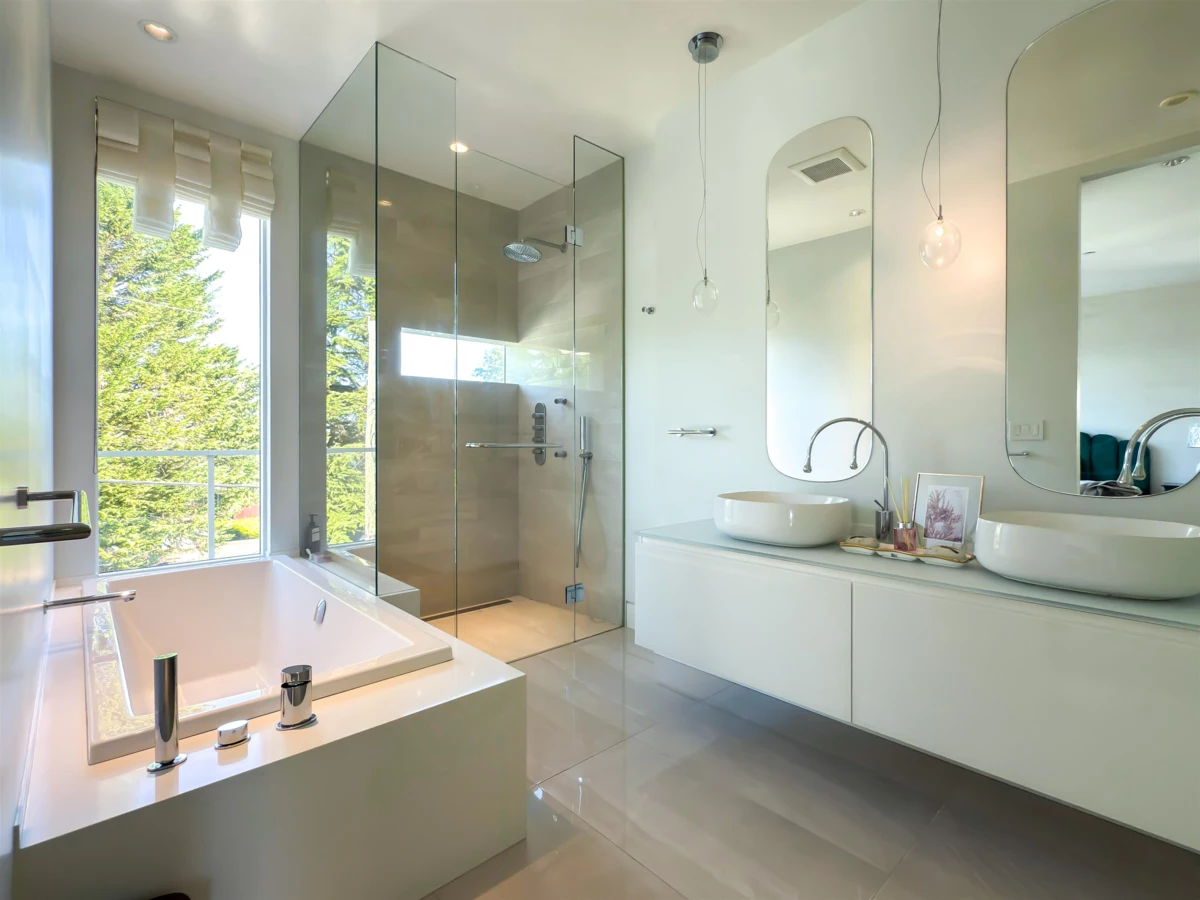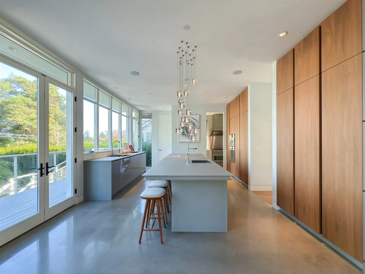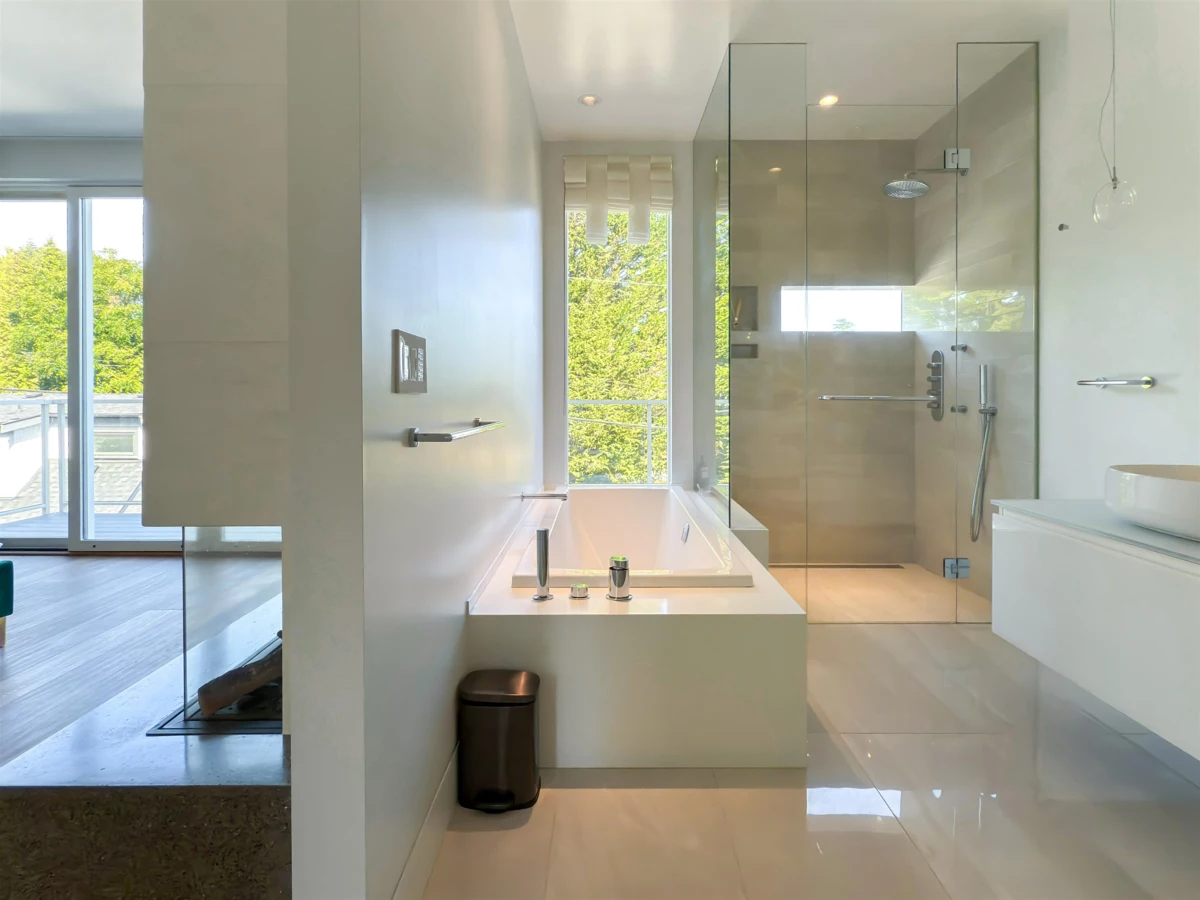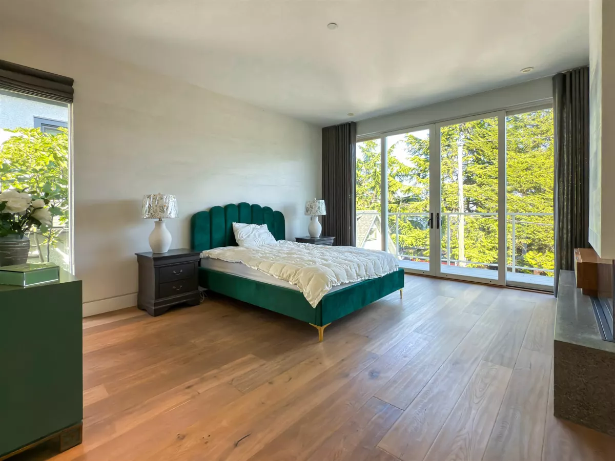 A refined modern home in prestigious Quilchena, set on a 6,000 sq ft lot with 3,800 sq ft of beautifully designed living space. Floor-to-ceiling windows fill the main living areas with natural light and showcase stunning views, complemented by a sleek gas fireplace and designer Bocci lighting. The chef's kitchen is ideal for entertaining, featuring Italian walnut and glass cabinetry, premium Gaggenau appliances, a prep kitchen, and Bertazzoni 6-burner range. Upstairs offers four bedrooms including a luxurious primary suite with fireplace, spa-like ensuite, and private deck. The lower level features a spacious rec room, guest bedroom with ensuite, and an impressive wine room. Complete with A/C, radiant in-floor heating, and a 3-car garage, this home delivers elevated Westside living.