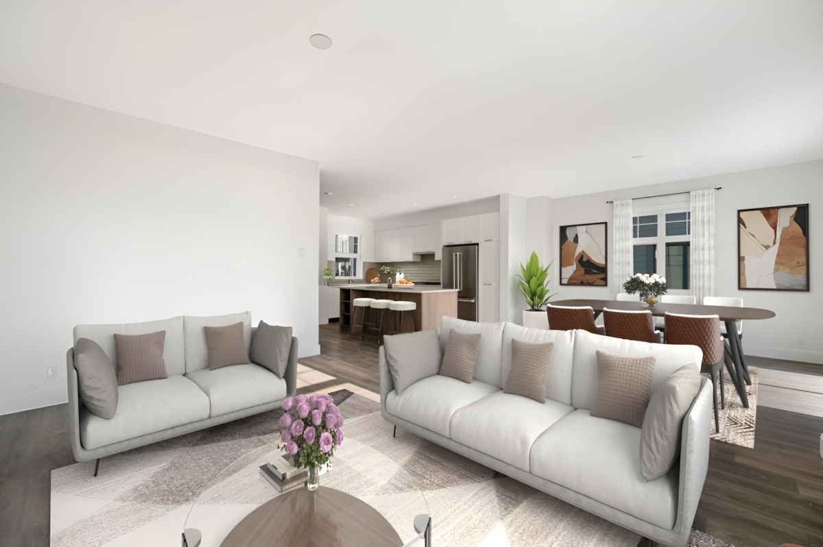 BRAND NEW SPACIOUS CORNER UNIT TOWNHOUSE at Forester II by Townline. This spacious 3 bedroom 2.5 bath unit, with over 1,610sf, comes with double side-by-side garage. Features include L-shape kitchen with big island, laminate flooring on main floor, very good size living and dining areas, which leads to the balcony, separate foyer area, and has south/north/east exposures which gives lots of natural light. Upstairs has 3 bedrooms. Primary bedroom fits a king size bed with walk-in-closet and ensuite with double sink, standard size shower and bathtub. The other 2 bedrooms can easily fit queen size beds. OPEN HOUSE AUG 17, 2-4PM.