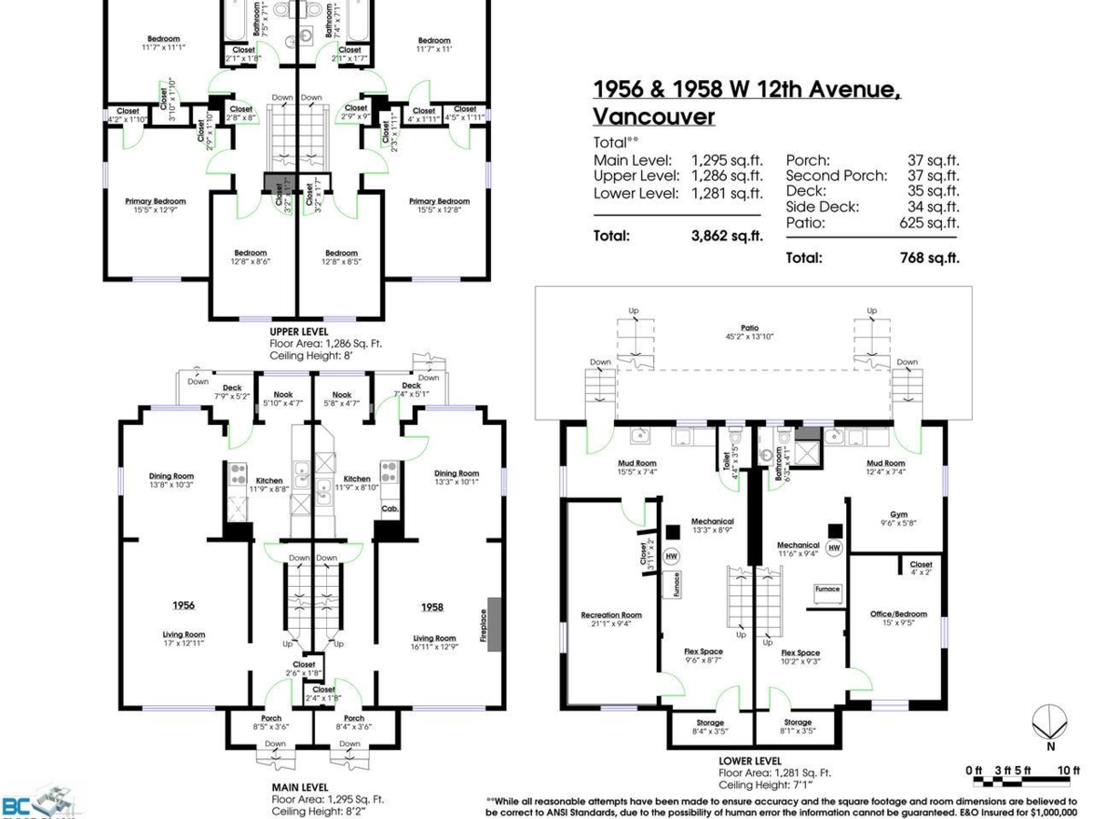 This legal side-by-side duplex sits on a large 50' x 125', RT-8 multi-family zoned lot with each side offering a private outdoor deck, patio, garden, and ample parking (double detached garage plus 3 open parking stalls in rear yard) in Kitsilano. This spacious 3,862 sf (1956 side: 3 bdrm + 1.5 baths, 1,937 sf and 1958 side: 3 bdrms + 2 baths, 1,927sf) is perfect for multi-generational living or rental income. Exceptional investment opportunity with potential for future high-rise redevelopment under the Broadway Plan. Prime location to top schools (Shaughnessy Elementary, Kitsilano Secondary, and enroute to UBC), transit (near new Arbutus skytrain station), parks, shops, services, & dining along the West Broadway corridor. Please do not disturb tenants.