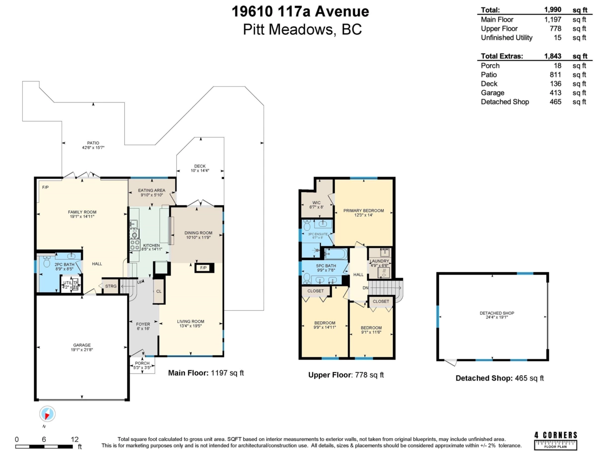 Welcome to this beautifully renovated family home tucked away on a quiet Pitt Meadows cul-de-sac! The bright open layout features quality finishes, a modern kitchen, spacious dining area, and cozy living room with a stunning see-through gas fireplace and vaulted ceiling. Step down to the inviting family room with a wood-burning fireplace—perfect for relaxed evenings. Upstairs offers three bedrooms including a serene primary suite with walk-in closet, ensuite, and electric fireplace. Enjoy a private, fully fenced backyard with lush landscaping, a 20’x25’ detached garage/workshop, plus an 8’x22’ shed. Double garage parking and flexible space—ideal for a home office, hobby shop, or future garden suite potential!