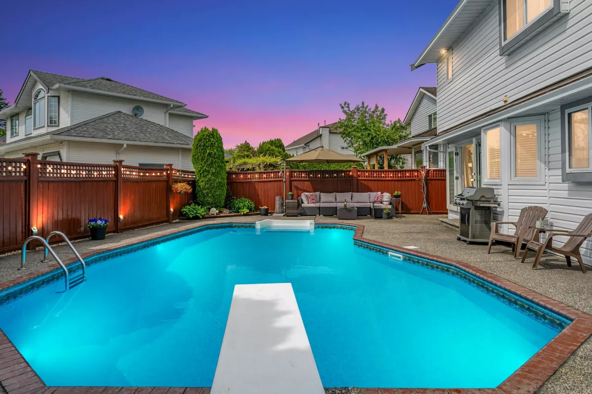 Make every summer unforgettable in this Pitt Meadows gem, now priced below BC Assessment! Located in a quiet, family-friendly neighbourhood on the north side of the tracks, this home features a showstopping backyard with a heated in-ground pool and sunset views, perfect for birthday parties, after-practice hangouts, and endless fun from April to October. The 3-bed plus Den layout feels spacious, with vaulted ceilings and French doors creating a bright, open feel and seamless indoor-outdoor living. Thoughtful updates include new flooring, bathrooms, appliances, and a new pool liner. Just a short walk to schools, shops, and commuter routes, this home offers a rare combination of lifestyle, location, and exceptional value!