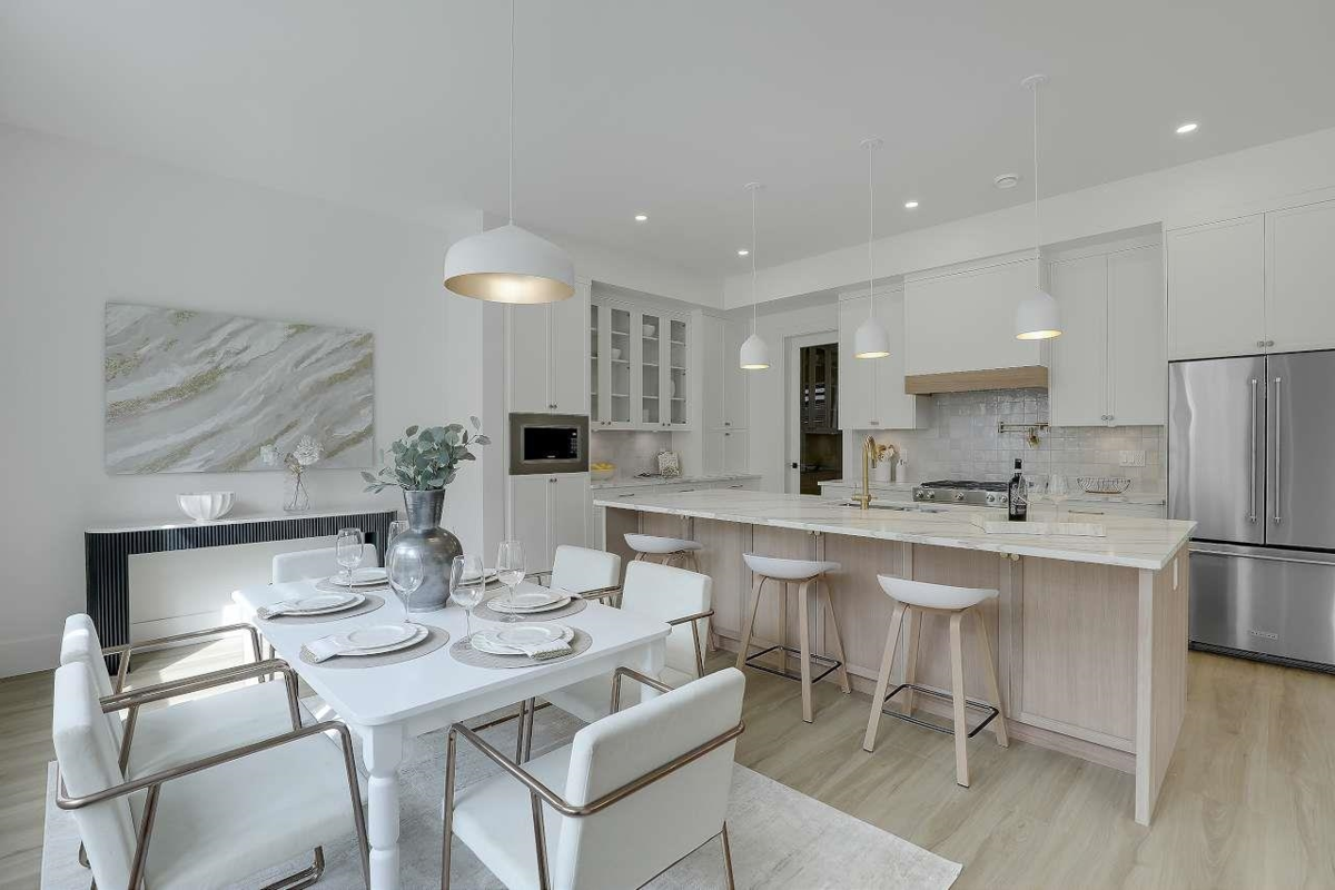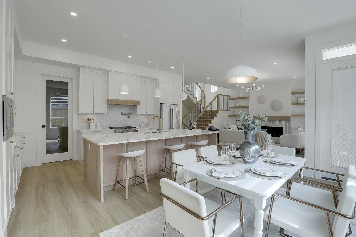 Welcome to Latimer West by Garcha Properties – a boutique collection of 5 beautifully crafted homes in the heart of Willoughby, Langley. These thoughtfully designed residences feature bright, spacious layouts with 2-bedroom legal suites. Choose between a 4-bedroom layout or a unique 3-bedroom plan with an open-to-below concept in the family room, along with 3 full bathrooms and a luxurious primary suite offering His & Hers walk-in closets. The main floor includes a sunken living room, expansive great room with a gas fireplace, a formal dining area, a chef-inspired kitchen with a massive island and spice kitchen, a practical mudroom with built-in benches and hooks leading to a double garage. Downstairs, enjoy an additional bedroom with its own walk-in closet. These homes truly have it all.
