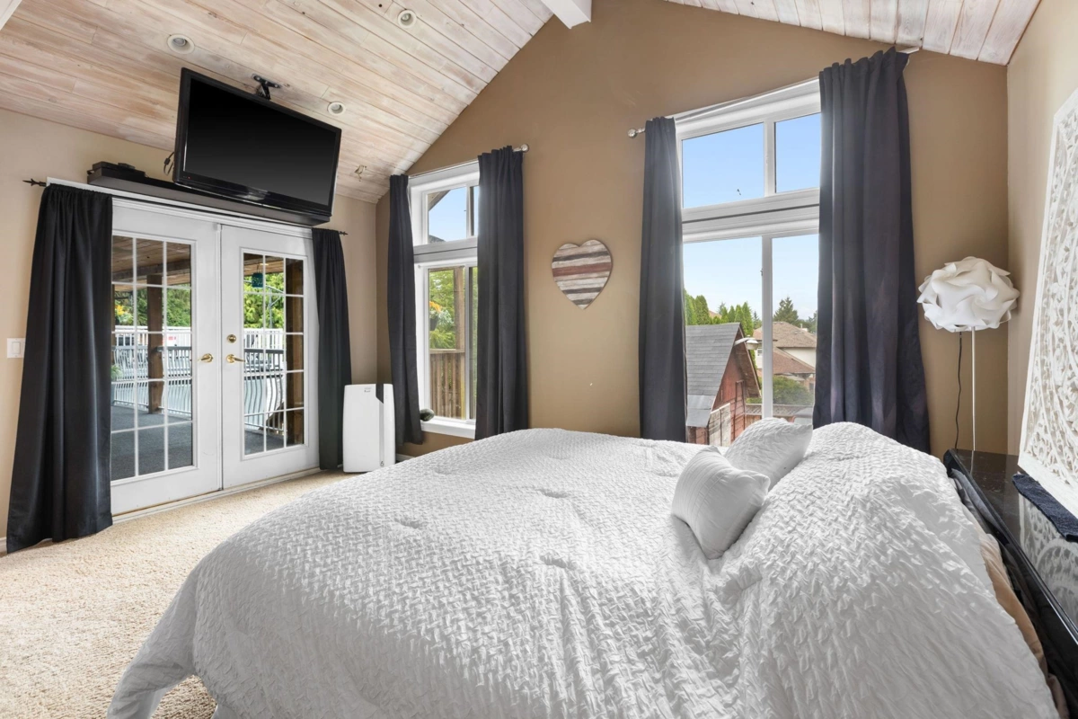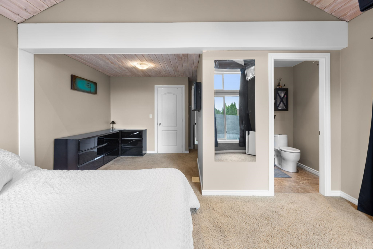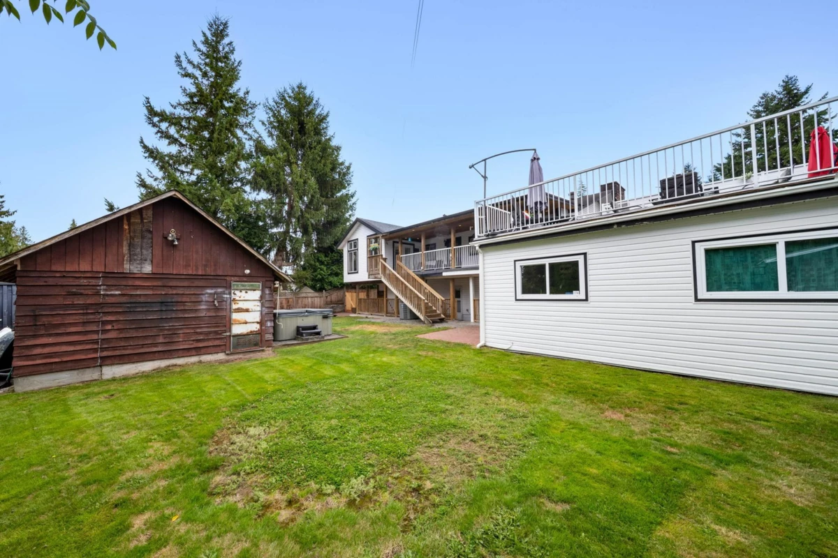 Set on a private 15,000+ sq ft fully fenced lot, this versatile 5-bedroom, 3-bath Langley home offers exceptional space and flexibility. Ideal for car enthusiasts or hobbyists, the property features a double garage, multiple workshops, ample storage, and parking for 10+ vehicles. Inside, enjoy light-filled living areas, a natural gas fireplace, and a refreshed kitchen. The primary retreat boasts vaulted ceilings, an ensuite, generous closet space, and French doors leading to expansive sundecks. Outdoors, the serene yard us framed by mature cedar hedges and includes a large pond and storage sheds. A 2-bedroom suite provides excellent options for extended family or rental income. Peaceful and private, yet minutes to everyday amenities.
