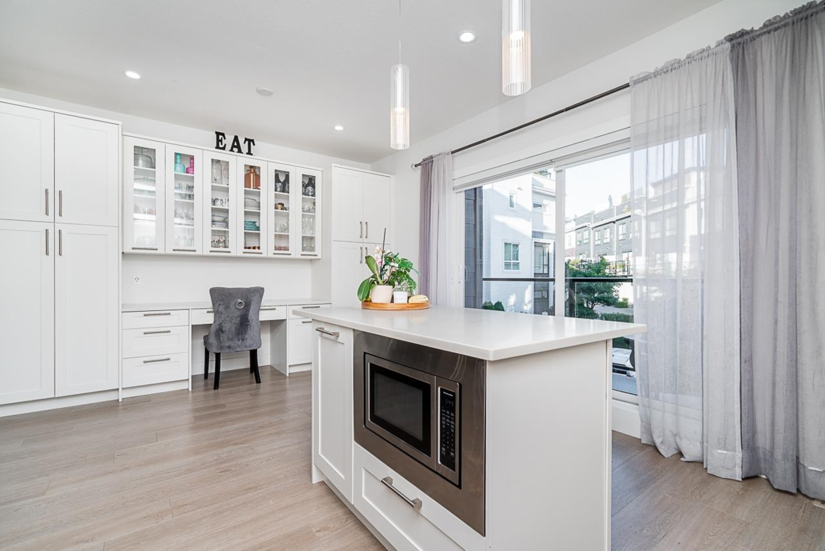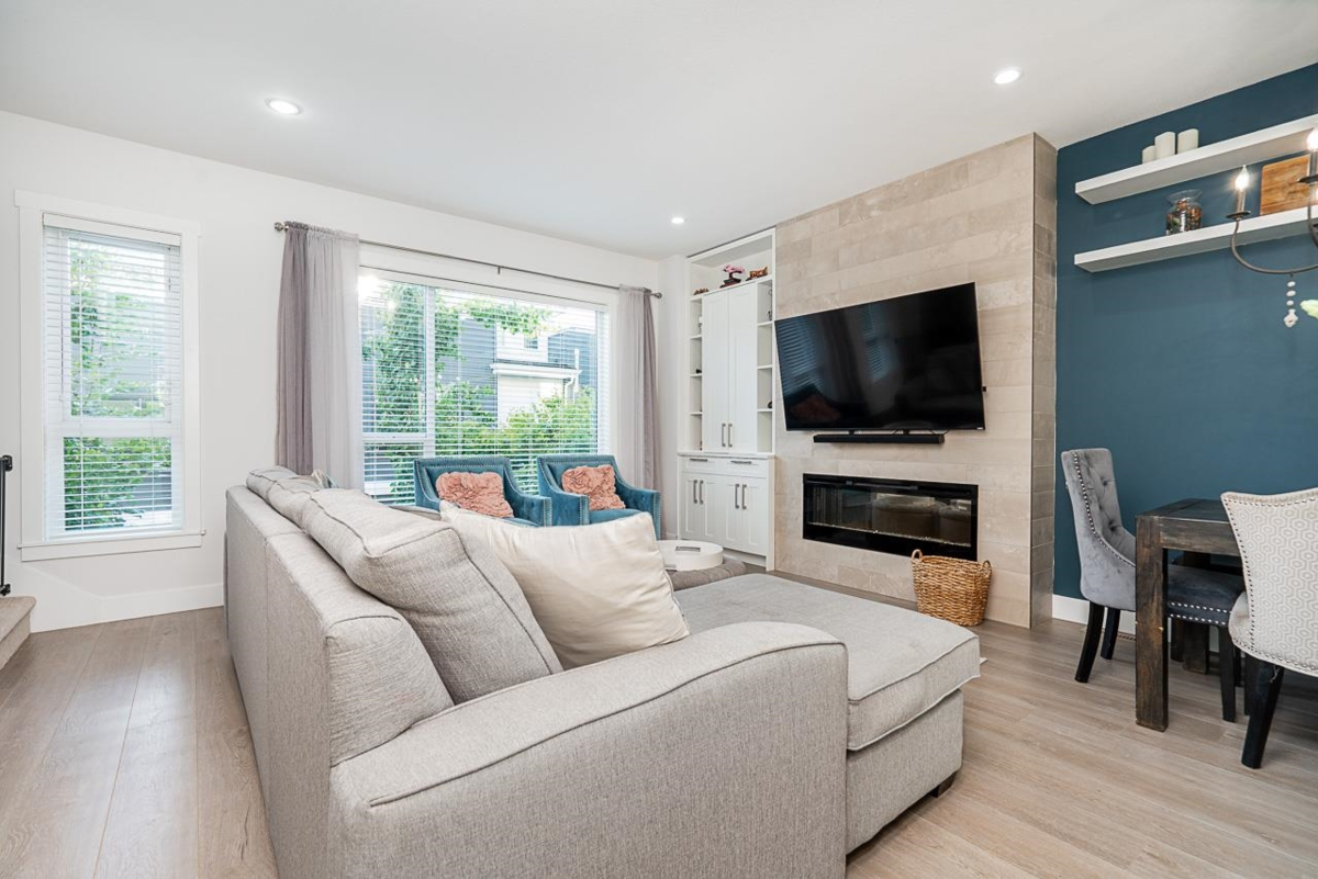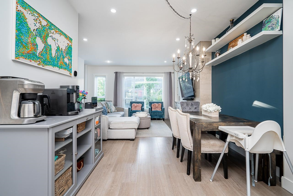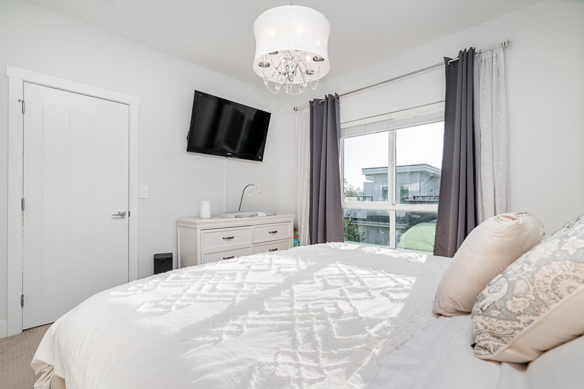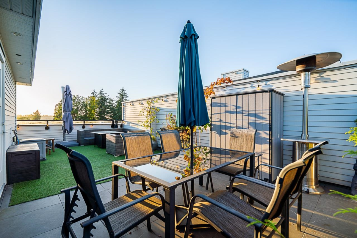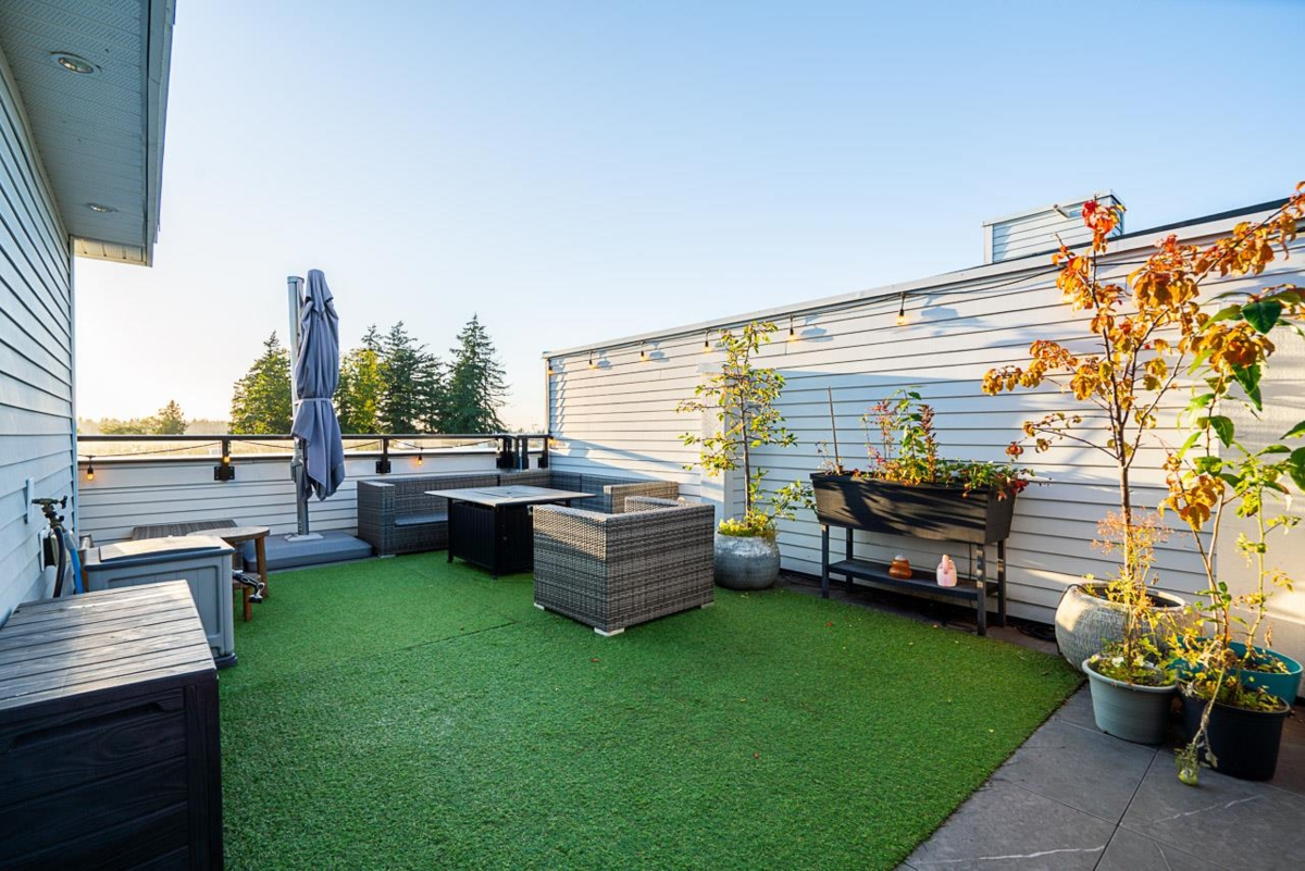 Welcome home to this beautiful townhome at desirable SOHO 2 complex! Enjoy the light filled and spacious floorplan with wide living/dining room space, 9' ceilings, air-conditioning (AC), well laid out kitchen and additional eating area with quartz countertops, stainless steel appliances and beautiful built-in cabinets providing you with plenty of storage. Two large and bright bedrooms are on top floor and third spacious bedroom is downstairs. Fabulous ocean and island views from oversized rooftop patio (33’1x13’10). Amazing quiet location in Grandview Heights neighborhood close to schools, Oak Meadows Park, walking distance to shopping plaza and The Shops and restaurants at Morgan Crossing. Just a 5 minute drive to White Rock Beach. This home is ready for your family to move in!