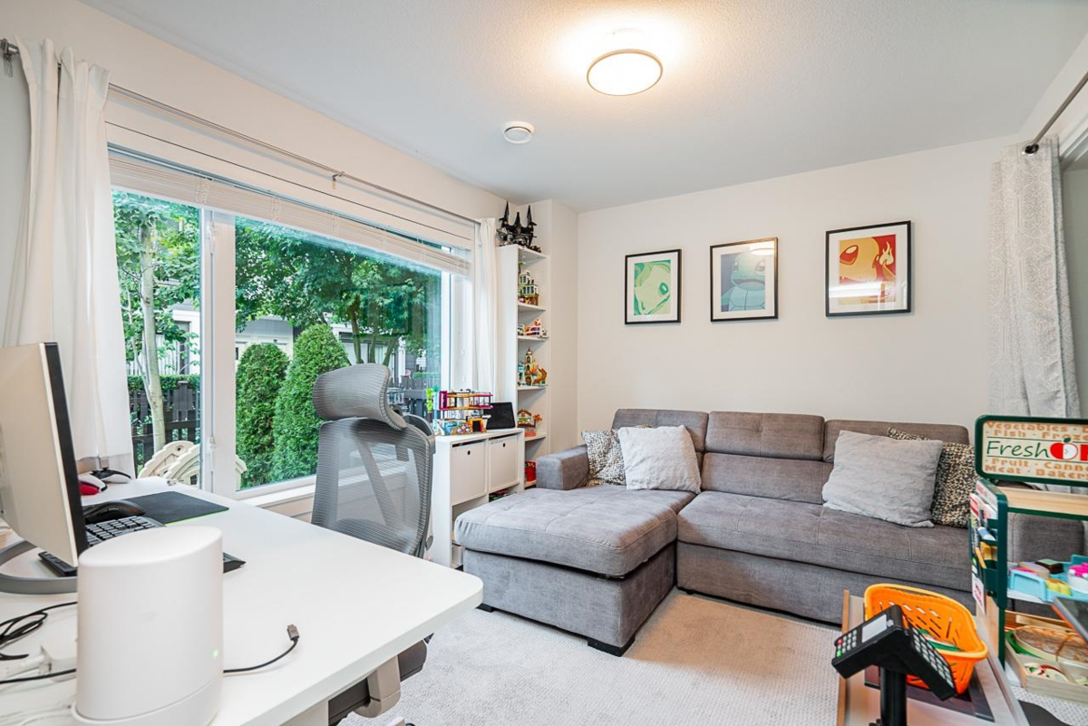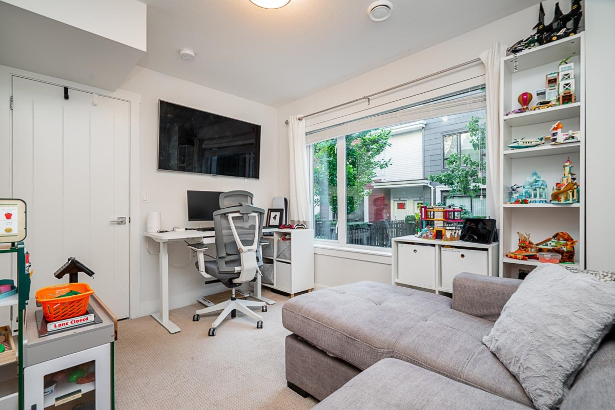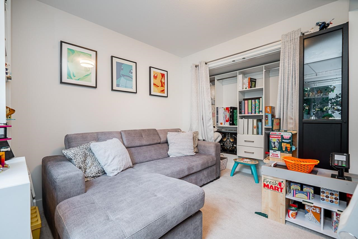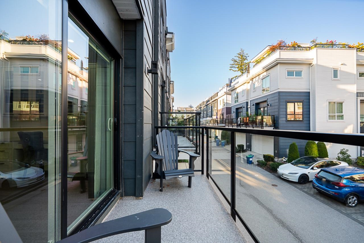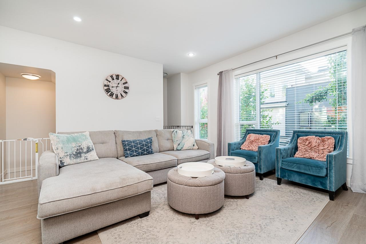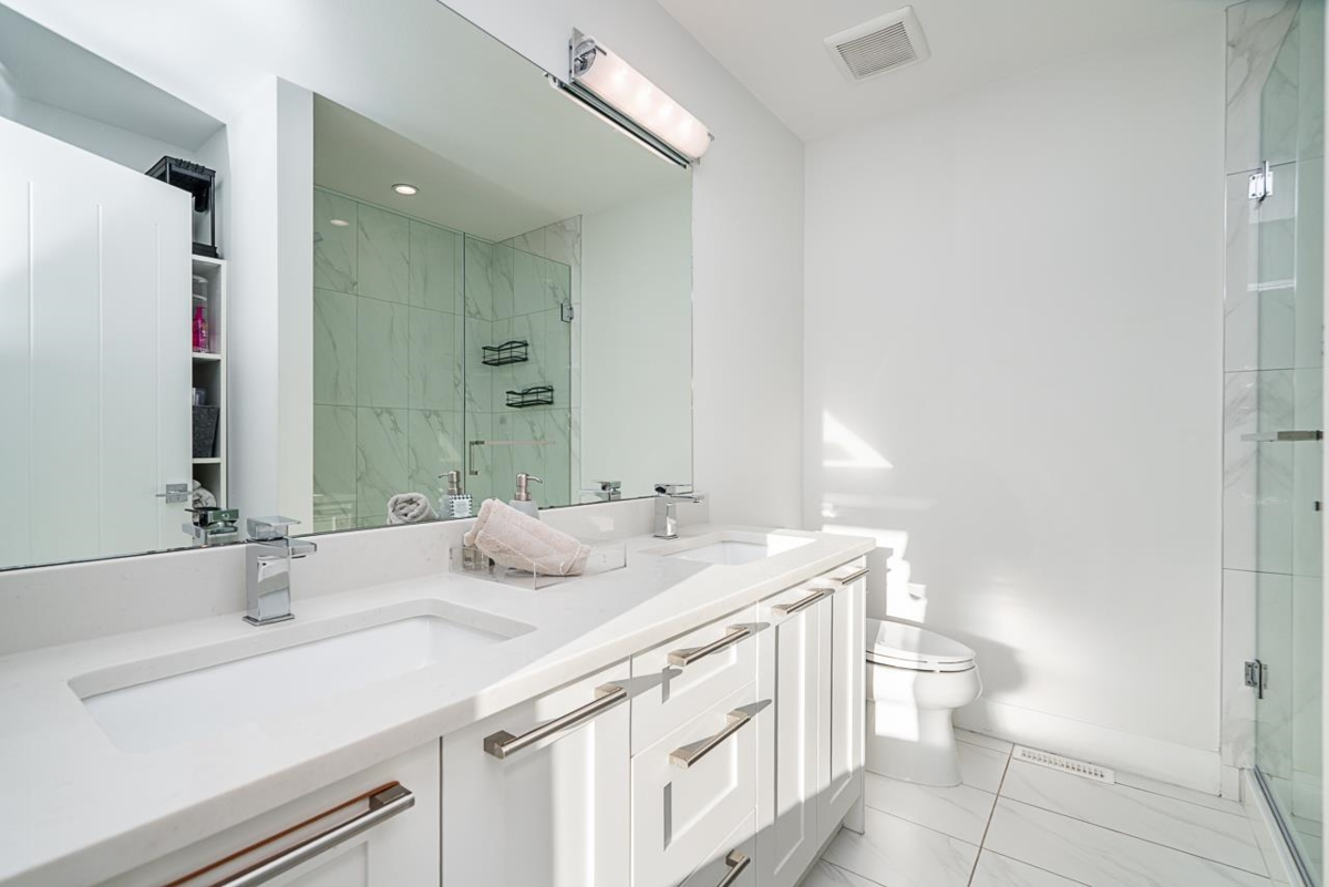 Welcome home to this beautiful townhome at desirable SOHO 2 complex! Enjoy the light filled and spacious floorplan with wide living/dining room space, 9' ceilings, air-conditioning (AC), well laid out kitchen and additional eating area with quartz countertops, stainless steel appliances and beautiful built-in cabinets providing you with plenty of storage. Two large and bright bedrooms are on top floor and third spacious bedroom is downstairs. Fabulous ocean and island views from oversized rooftop patio (33’1x13’10). Amazing quiet location in Grandview Heights neighborhood close to schools, Oak Meadows Park, walking distance to shopping plaza and The Shops and restaurants at Morgan Crossing. Just a 5 minute drive to White Rock Beach. This home is ready for your family to move in!