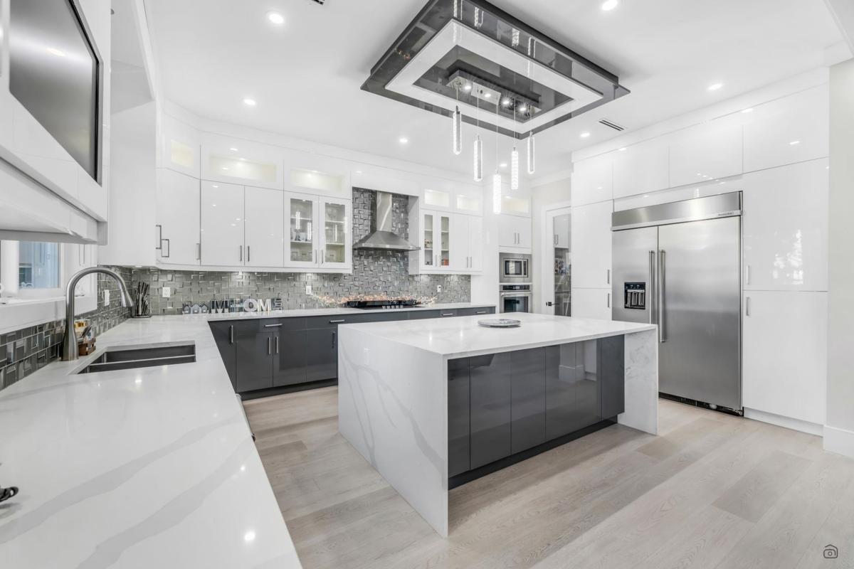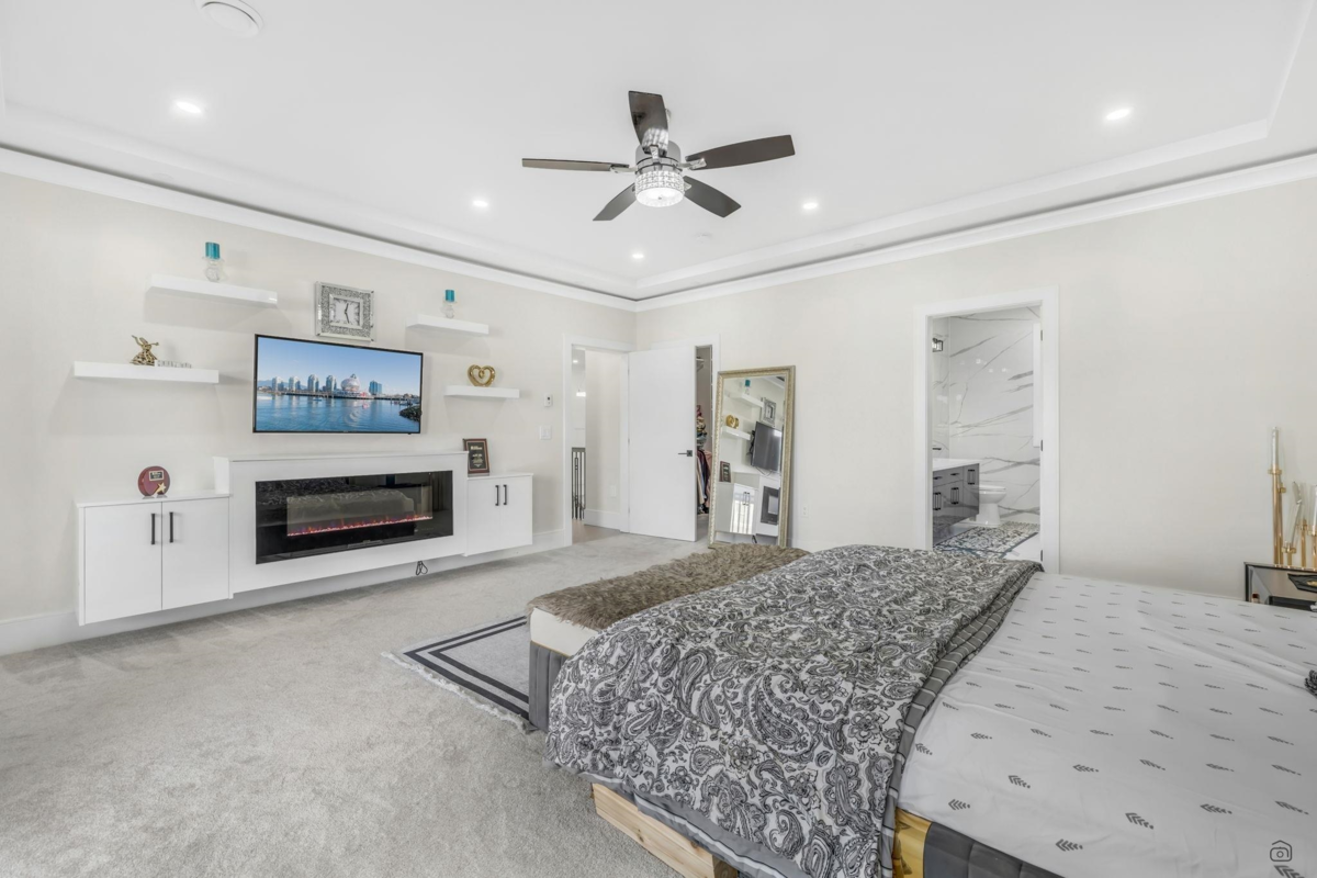 Welcome to prestigious Havenwood! This stunning West Coast-inspired 11 bed, 9 bath home sits on a spacious 7,439 sq/ft corner lot, offering modern luxury at every turn. The open-concept main floor features soaring double-height ceilings, a bright living and dining area, a MASTER SUITE on the main, an additional bedroom, and a family room with a built-in entertainment wall. The gourmet kitchen includes a large island, quartz countertops, high-end KitchenAid appliances, and a SPICE kitchen. Upstairs has 4 spacious bedrooms, each with its own ensuite, including a luxurious primary suite with a fireplace, walk-in closet, and entertainment wall. Two mortgage-helper suites (2 Bed + 3 Bed) generate excellent cash flow. Don’t miss this elegant opportunity