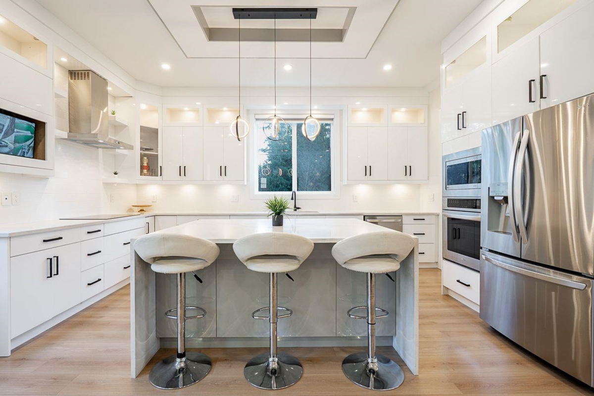 STUNNING CUSTOM HOME IN DESIRABLE BROOKSWOOD LOCATION! West Coast–inspired home offering an impressive 5,500 sq.ft. of luxury living on a 7,850 sq.ft. lot. The main floor features bright living and dining areas, a versatile primary/guest bedroom, and a cozy family room with a panoramic entertainment wall. The chef’s kitchen boasts a large island, quartz countertops, designer backsplash, and a bonus spice kitchen. Upstairs features a spacious loft and four primary bedrooms, each with an ensuite and walk-in closet. Two mortgage helpers provide excellent cash-flow potential. Loaded with premium features including built-in speakers, retractable central vacuum, smart thermostats, radiant in-floor heating, A/C, steam showers, and more.