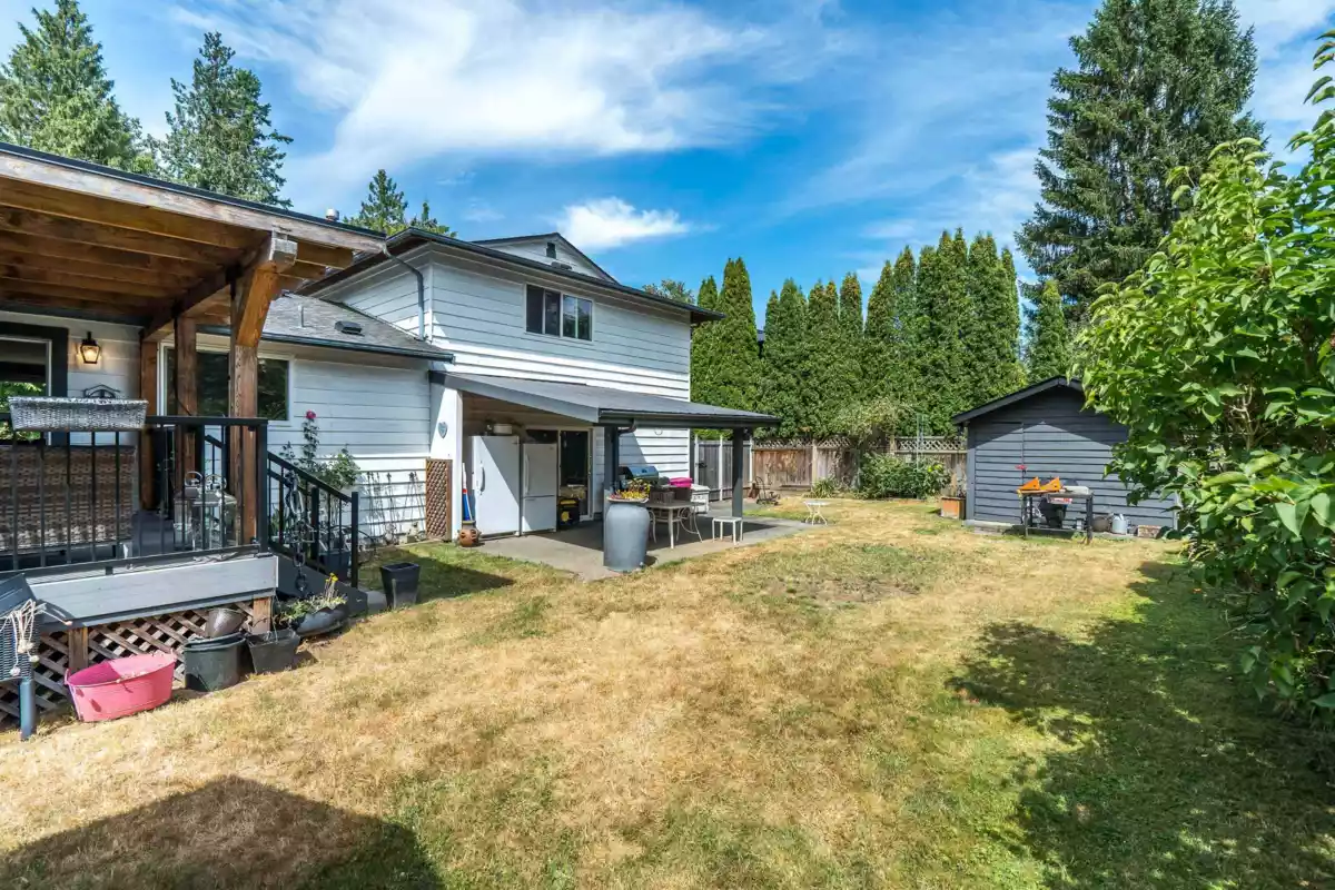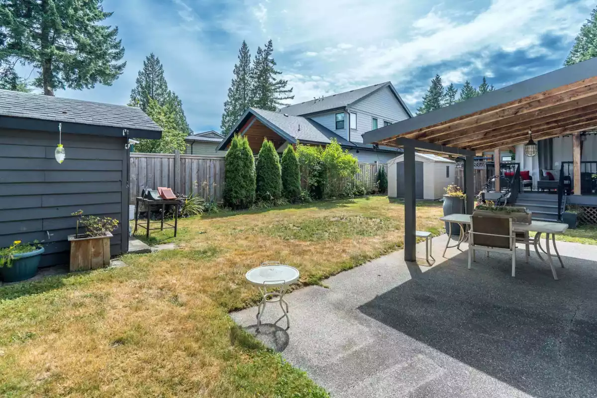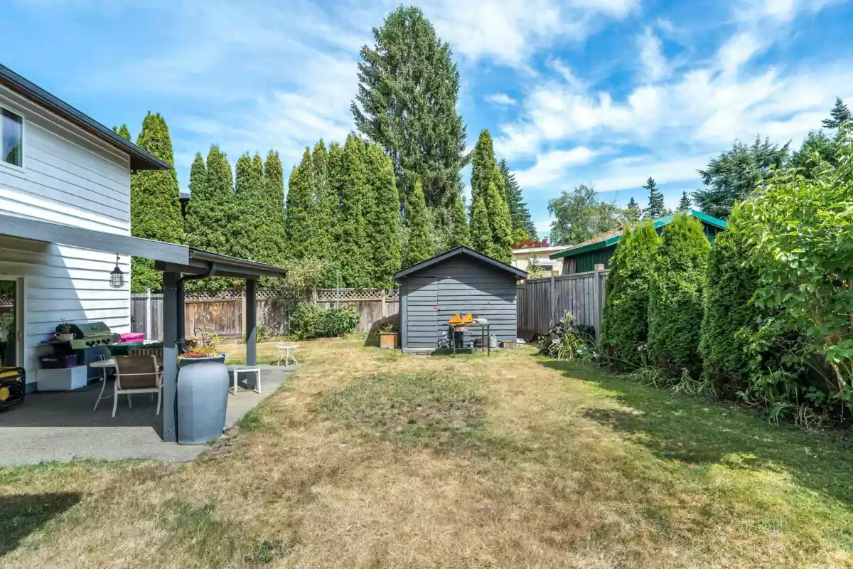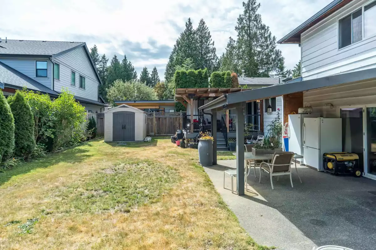 Welcome to your new home on one of the best streets in Langley City with Hunter Park out your front door. This lovely 3 level split home boasts of a beautiful open concept kitchen which is a perfect gathering space with a huge quartz island and a great room with a cozy gas fireplace. Entertain in style while preparing meals with quartz counter tops, a stunning modern backsplash, and all stainless steel appliances include a fabulous 5 burner gas stove. Nicely maintained with 3 good size bedrooms up. Enjoy movie nights in the big family room with a gas fireplace and convenient 2 piece bathroom. The backyard is fully fenced with 2 patios to enjoy your morning coffee or an evening beverage. Bonus 2 storage sheds.