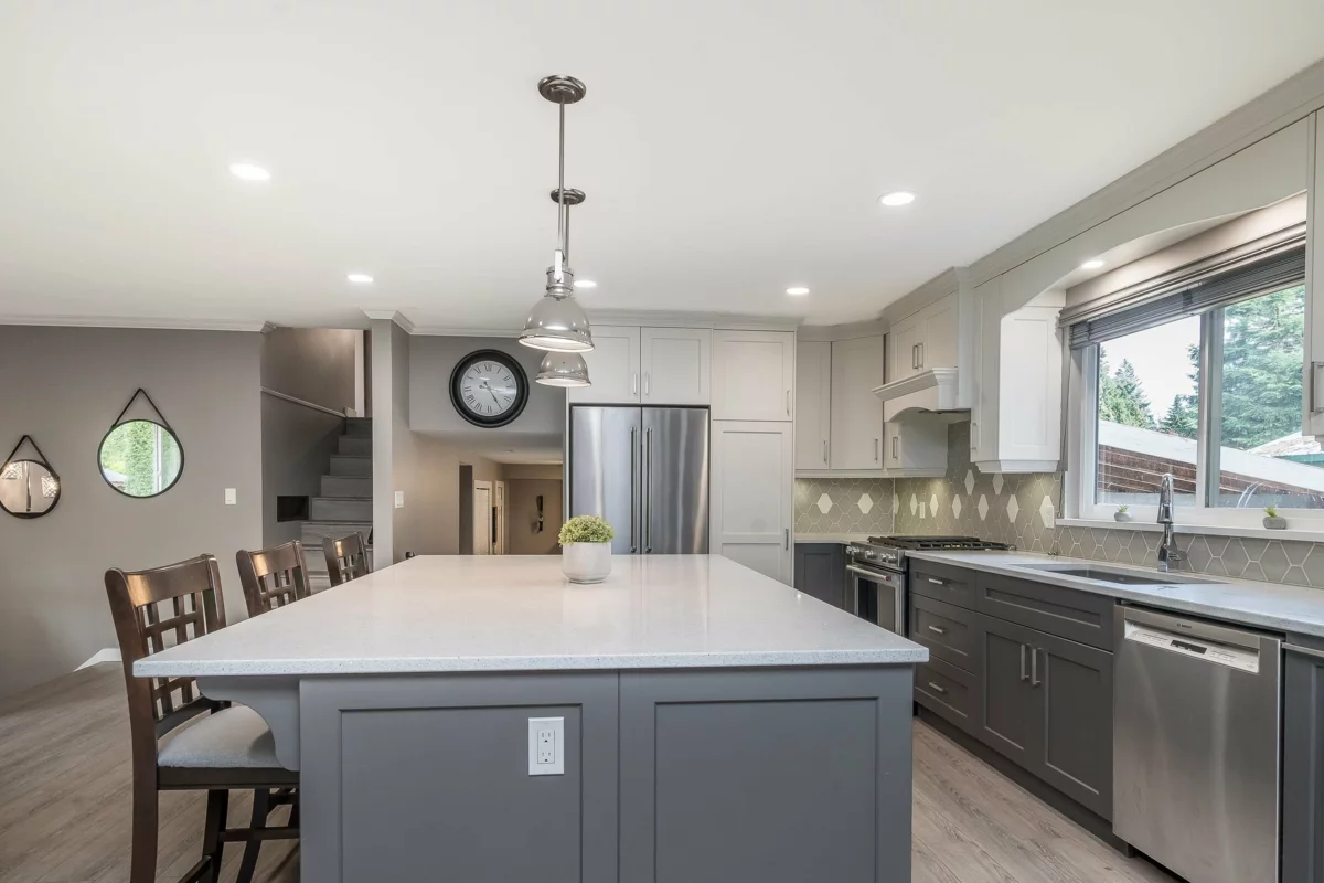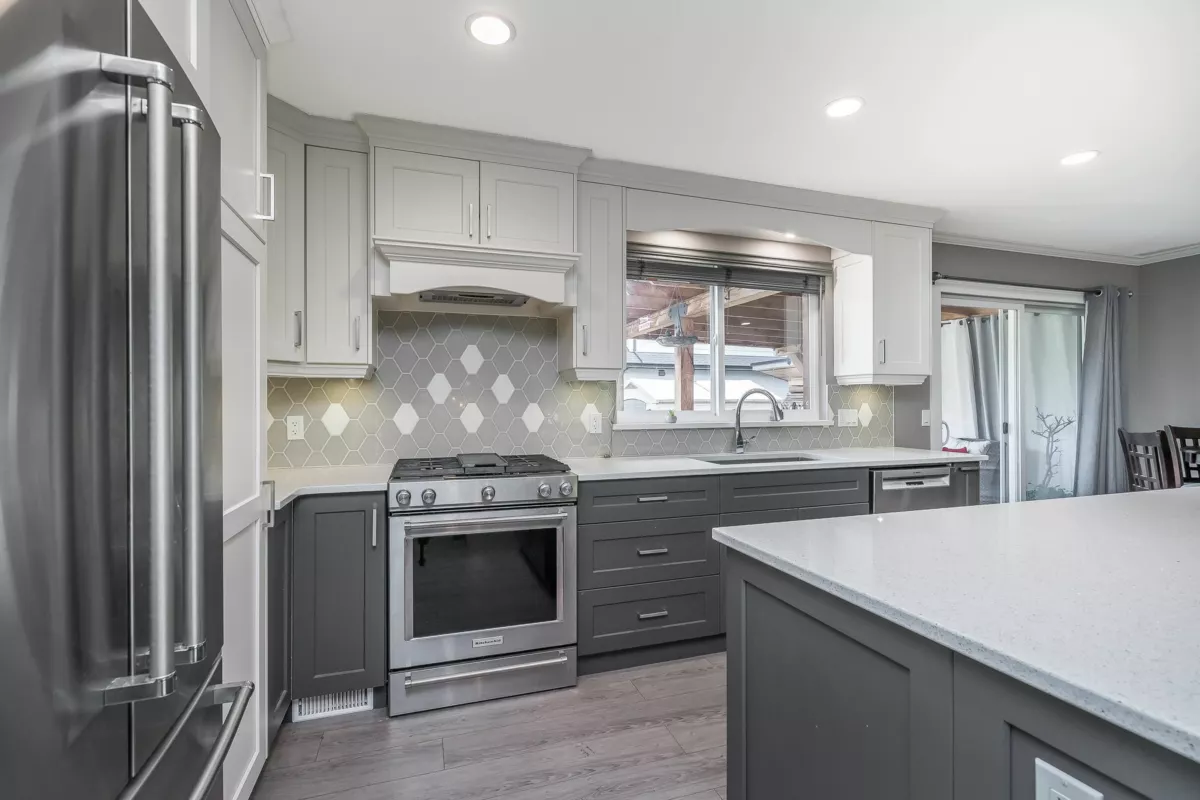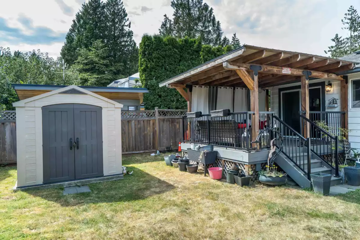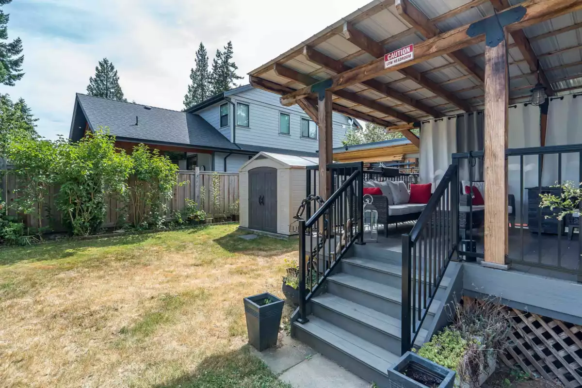 Welcome to your new home on one of the best streets in Langley City with Hunter Park out your front door. This lovely 3 level split home boasts of a beautiful open concept kitchen which is a perfect gathering space with a huge quartz island and a great room with a cozy gas fireplace. Entertain in style while preparing meals with quartz counter tops, a stunning modern backsplash, and all stainless steel appliances include a fabulous 5 burner gas stove. Nicely maintained with 3 good size bedrooms up. Enjoy movie nights in the big family room with a gas fireplace and convenient 2 piece bathroom. The backyard is fully fenced with 2 patios to enjoy your morning coffee or an evening beverage. Bonus 2 storage sheds.