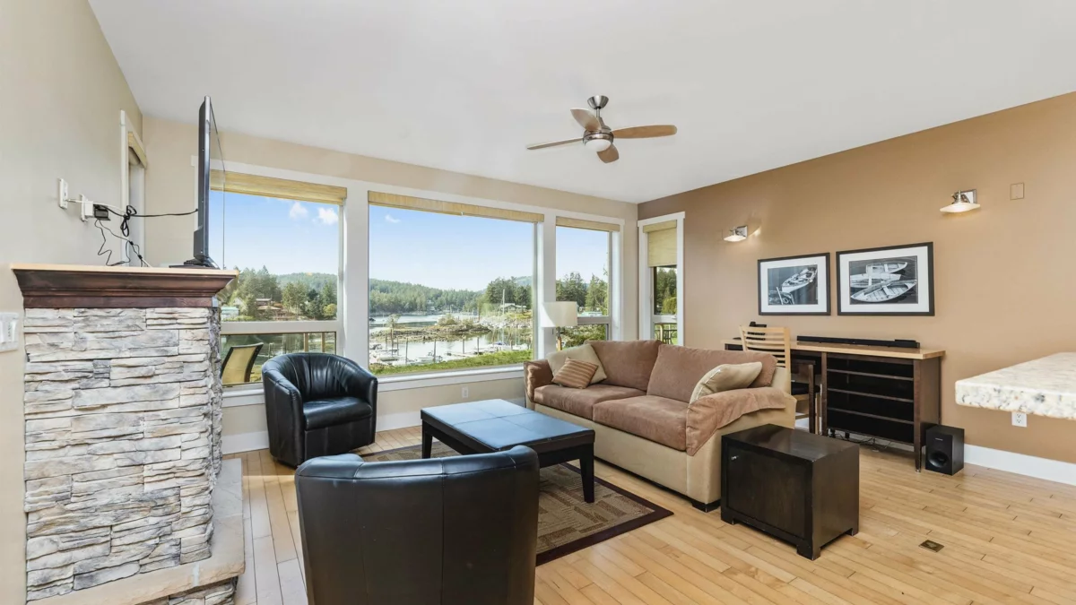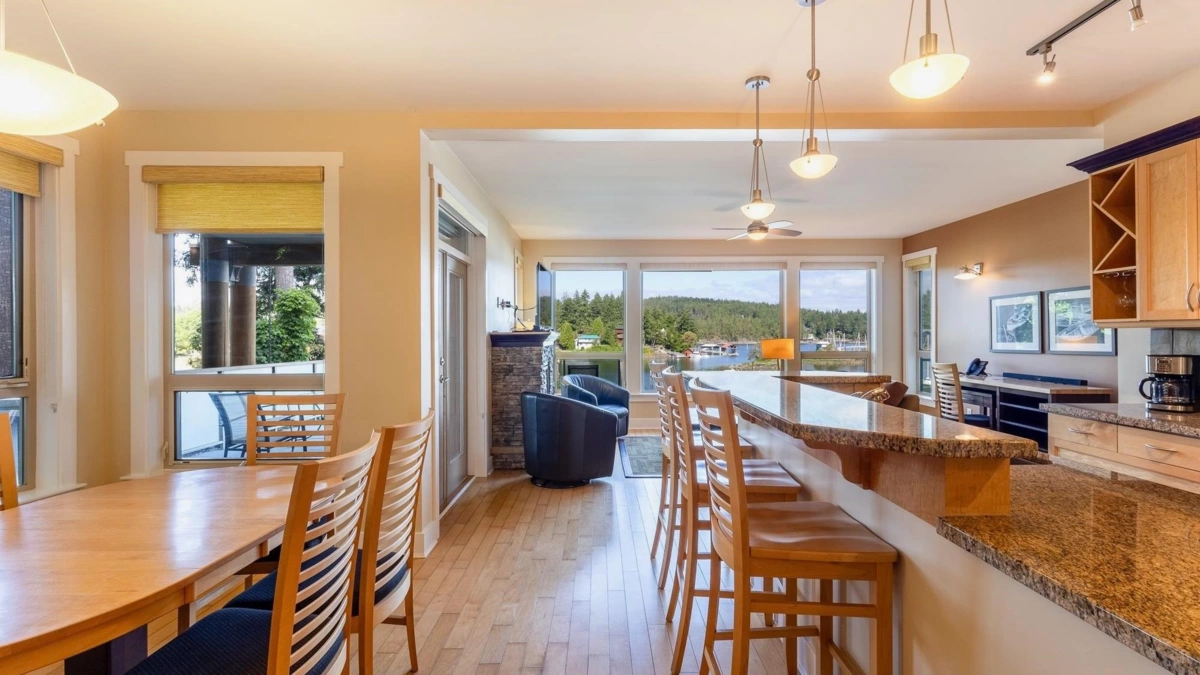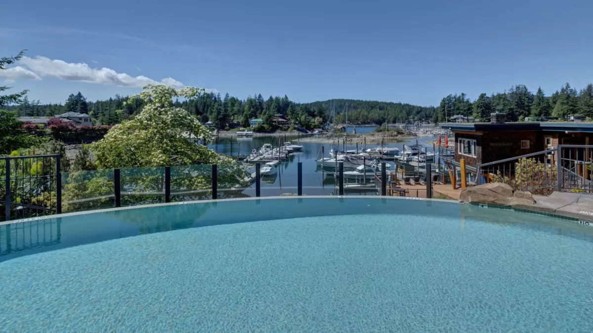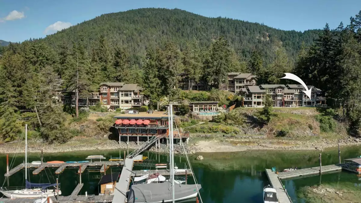Enjoy waterfront resort living at the Painted Boat Resort and Spa. Treat yourself to one full eek of luxury and pampering every month. Offering stunning views and a serene setting, this ground-level corner unit offers extra space, abundant natural light, and an oversized patio—perfect for indoor-outdoor living. Featuring 2 bedrooms and 2 baths with luxury finishes and new flooring throughout. Enjoy year-round resort amenities including a heated outdoor pool, hot tub, fitness centre, onsite restaurant, and full-service spa. Pet friendly and maintenance-free. MONTHLY STRATA FEES COVER EVERYTHING - all interior and exterior maintenance, property taxes, utilities, internet, phone, cable, furnishings, linens, BBQ, gym, onsite pool, hot tub, rental pool and linens.