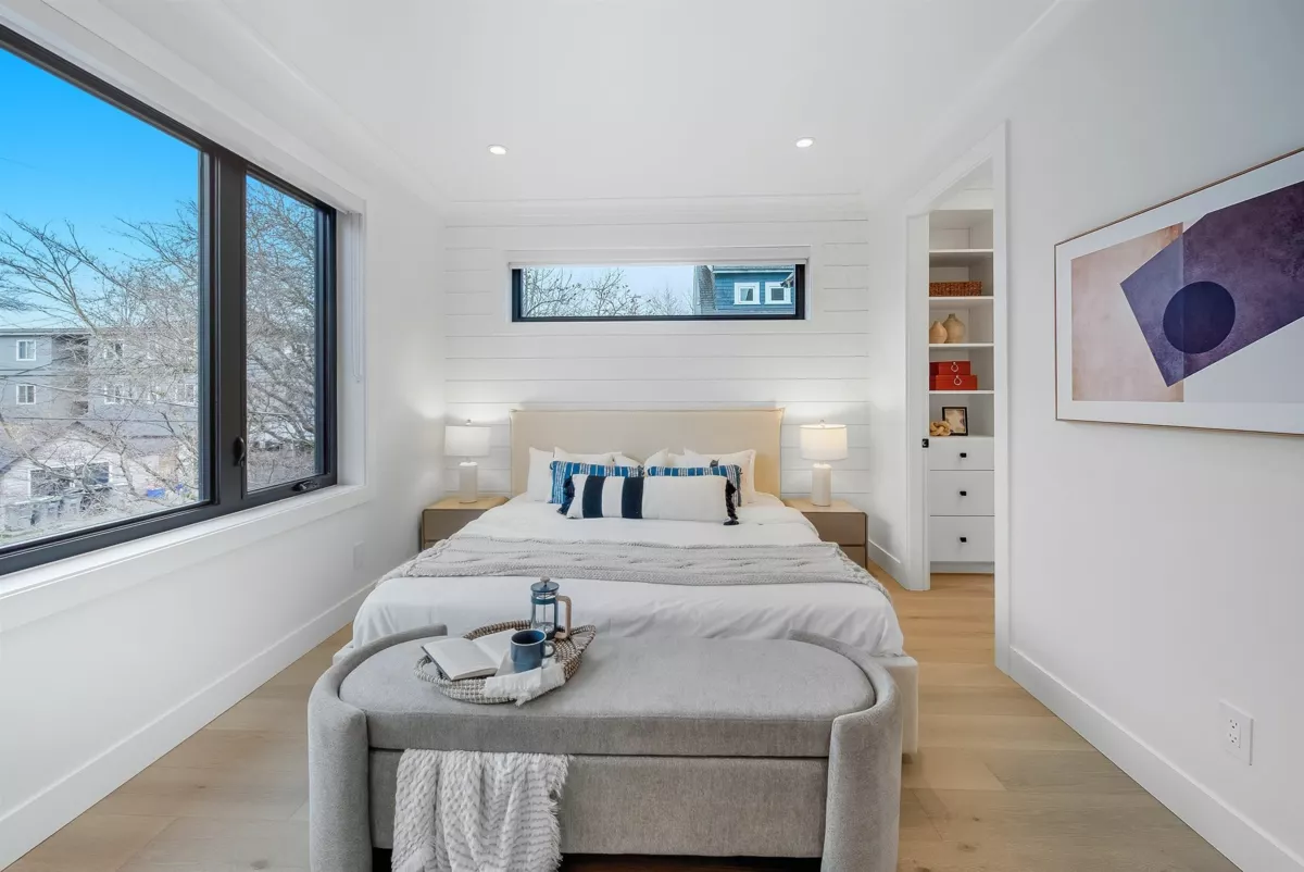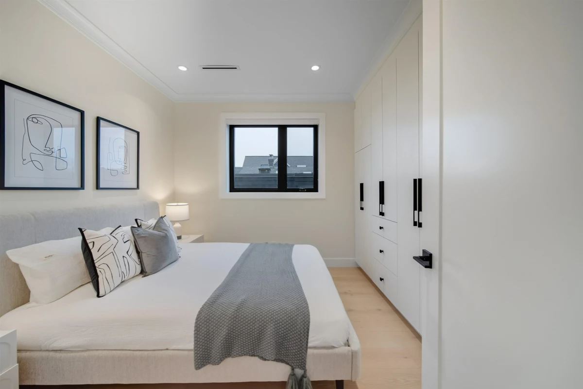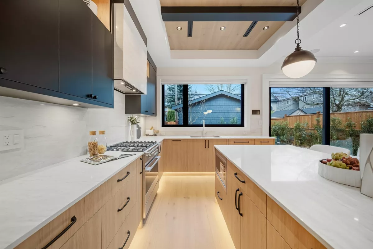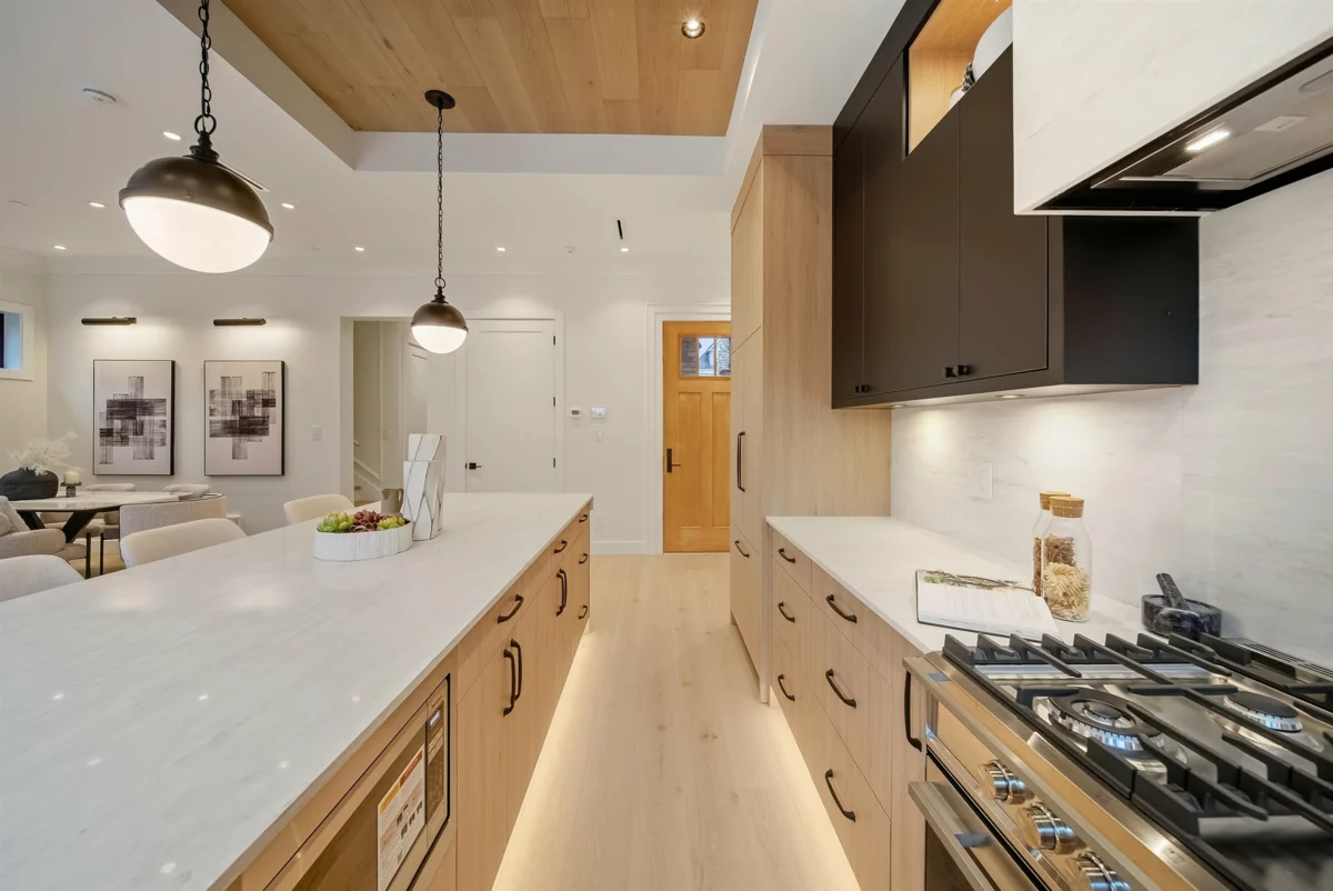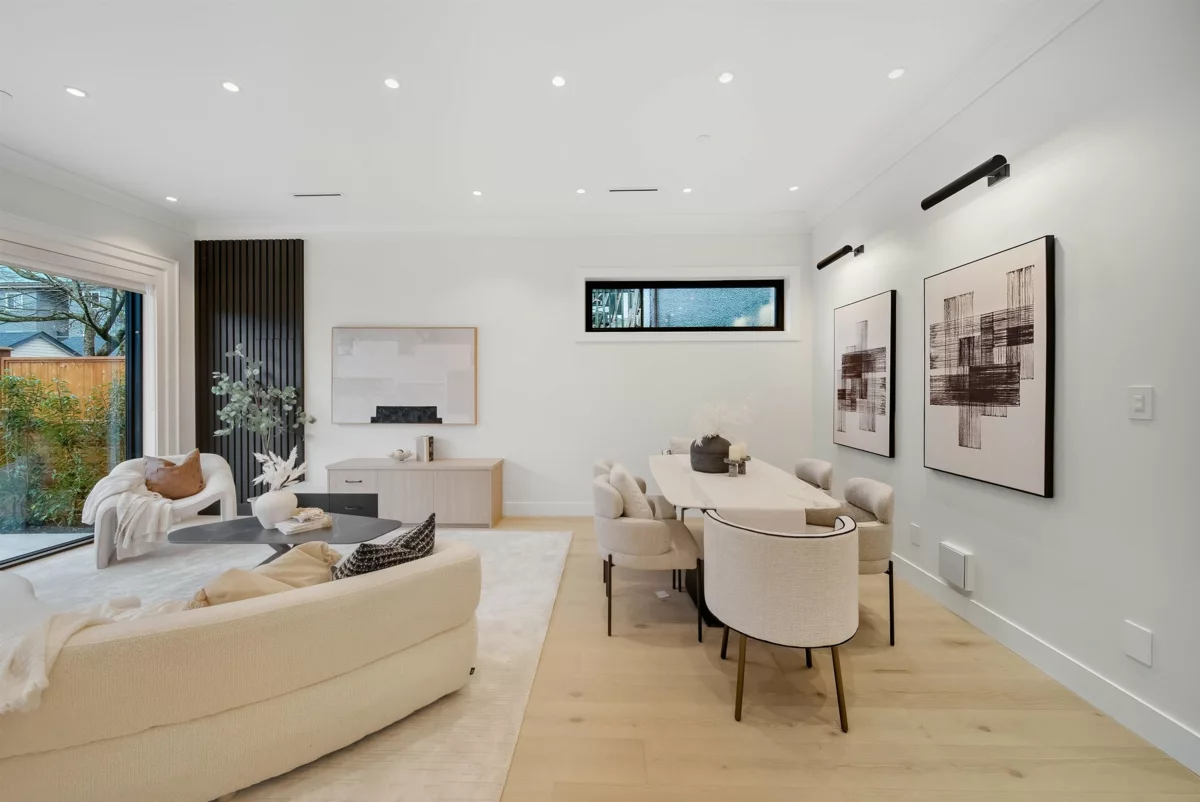 GRANDVIEW/WOODLANDS. Striking 1/2 duplex by AWARD-WINNING BRICKHOUSE BUILDING & CHRISTOPHE VAISSADE DESIGN, showcasing exceptional construction and craftsmanship. A show-stopping 512 SQ FT ROOFTOP DECK with HOT TUB, FIRE PIT, BUILT-IN BBQ, and PANORAMIC CITY & MOUNTAIN VIEWS-a rare offering. The main floor features a BRIGHT, OPEN-CONCEPT LAYOUT, expansive windows, and a CUSTOM KITCHEN WITH PREMIUM MILLWORK anchored by a LARGE ISLAND-RARE IN DUPLEX HOMES. Seamless INDOOR-OUTDOOR FLOW to a PRIVATE BACKYARD. The SPACIOUS PRIMARY BEDROOM includes CUSTOM ACCENT MILLWORK and a DOUBLE-VANITY ENSUITE, plus two additional generously sized bedrooms. Striking curb appeal with BOLD EXTERIOR COLOURS, STONEWORK & MODERN CLADDING. Walkable to schools, transit, and LIVELY COMMERCIAL DRIVE.