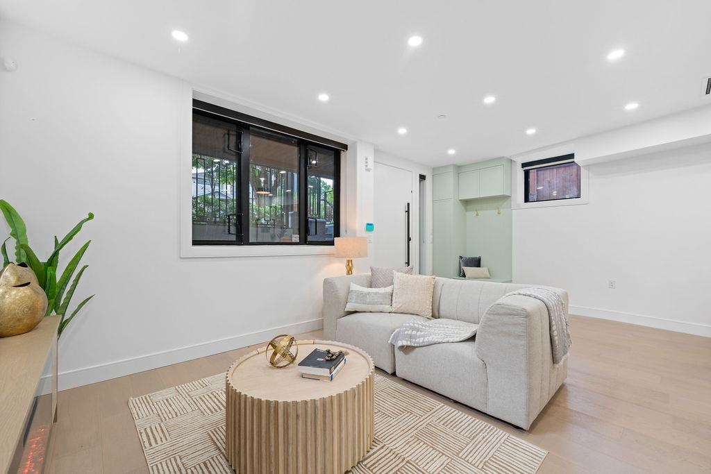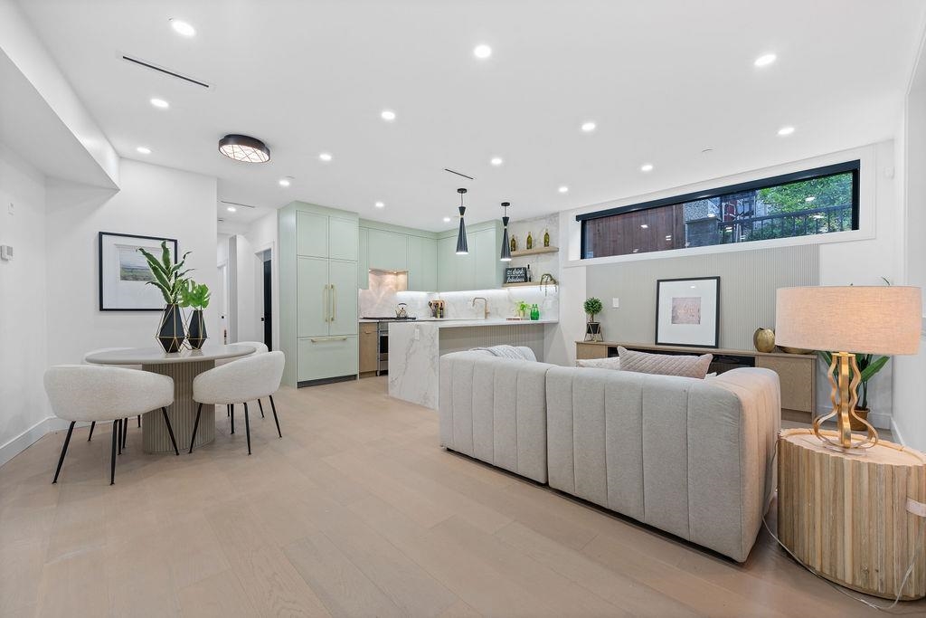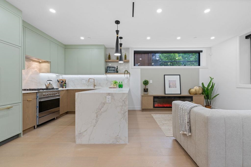 Stunning home in Grandview-Woodland, designed by award-winning ARCHITRIX with interiors by KD Interior Design. This 2 beds, 2 baths + den home features a spacious one-level layout, oak engineered floors, custom fluted millwork, built-in closets, and a cozy fireplace. Gourmet kitchen with Fisher & Paykel appliances, quartz counters, waterfall island, Riobel & Delta fixtures. Includes walk-in pantry/den, EV-ready storage shed, A/C heat pump, tiled patio, and pro landscaping. Steps to Commercial Dr, SkyTrain, Trout Lake & shops. Includes 1 parking, bike room, storage. Open House Sunday Sept 7, 2-4pm