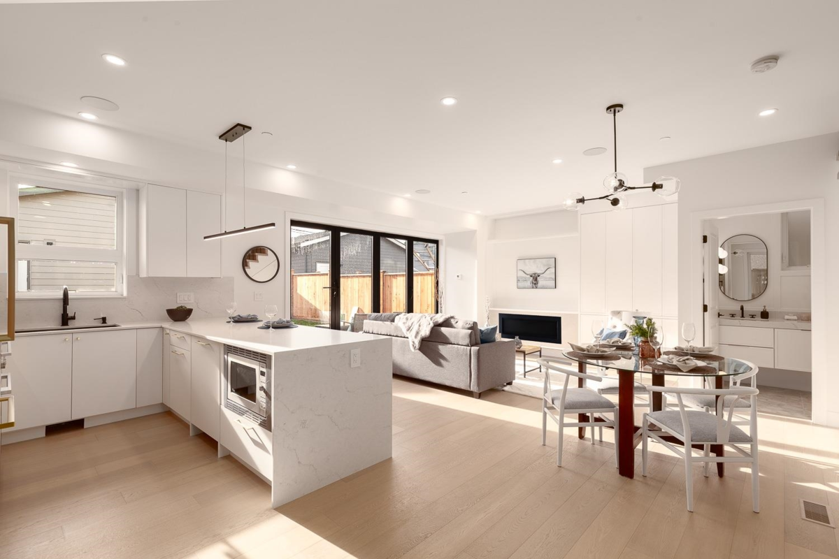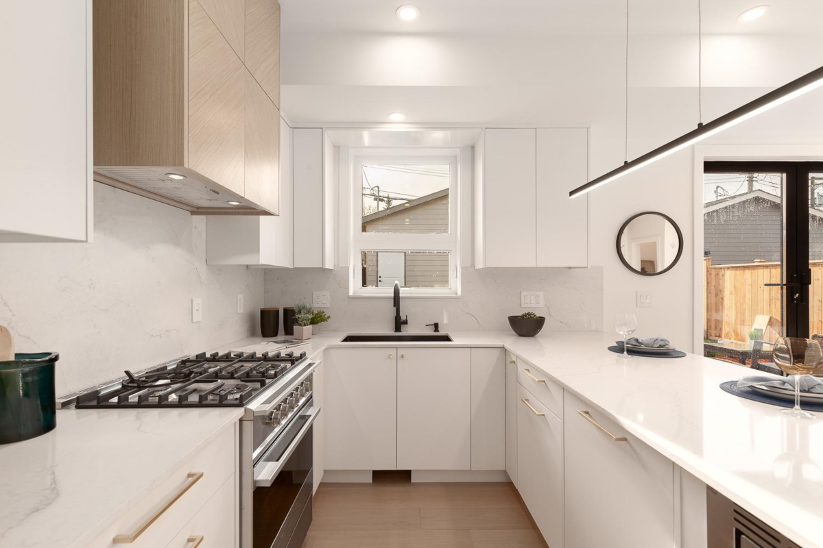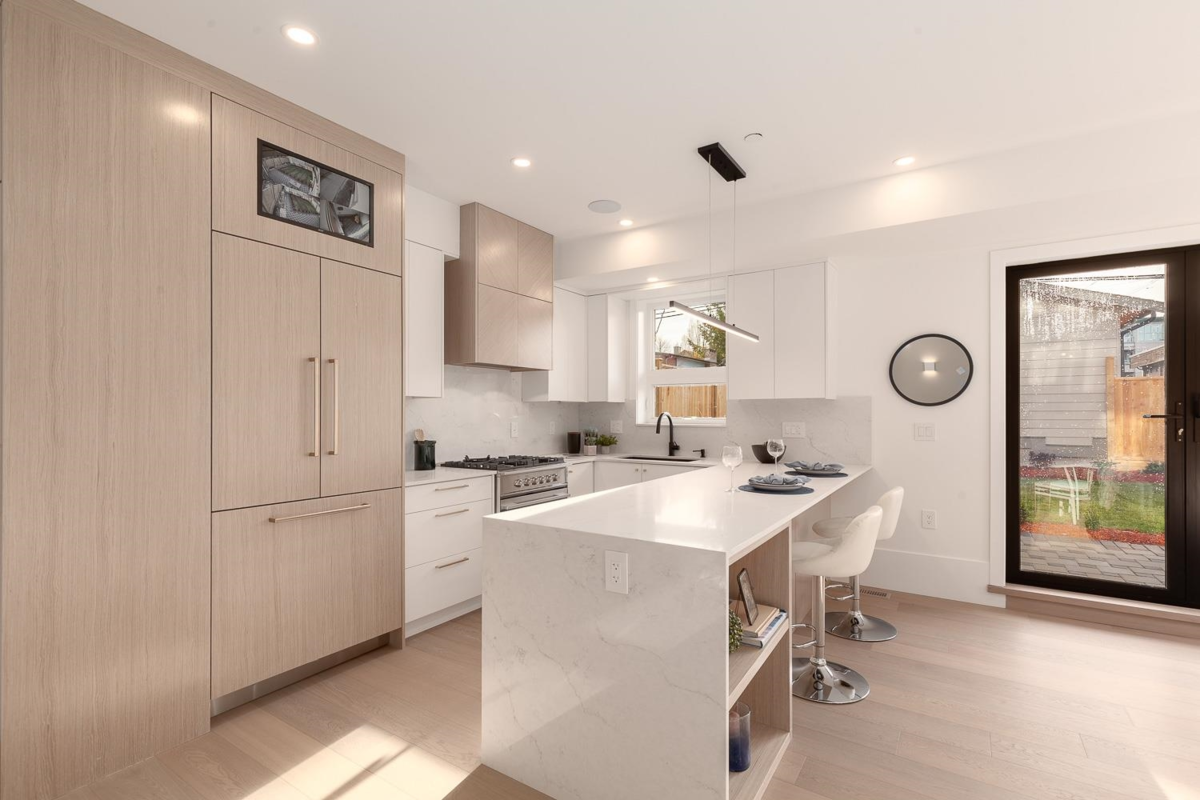 Welcome to this exquisite back 1/2 duplex just off Main St! This home boasts a prime location with 1500sf of luxurious living space spread across 3 levels. With 3 bdrms & 4 baths, each bdrm comes complete with an ensuite. Step inside & be greeted by a bright, open layout & high ceilings creating an inviting & spacious atmosphere. The main floor showcases a chef's kitchen with high-end appliances, seamlessly flowing into the living & dining rooms. Large accordion doors effortlessly connect the indoor & outdoor living spaces, leading to your private gated backyard. This home comes complete with a detached single-car garage, A/C & security cameras. The convenient location puts you steps away from the vibrant Main St shopping, providing easy access to all amenities.