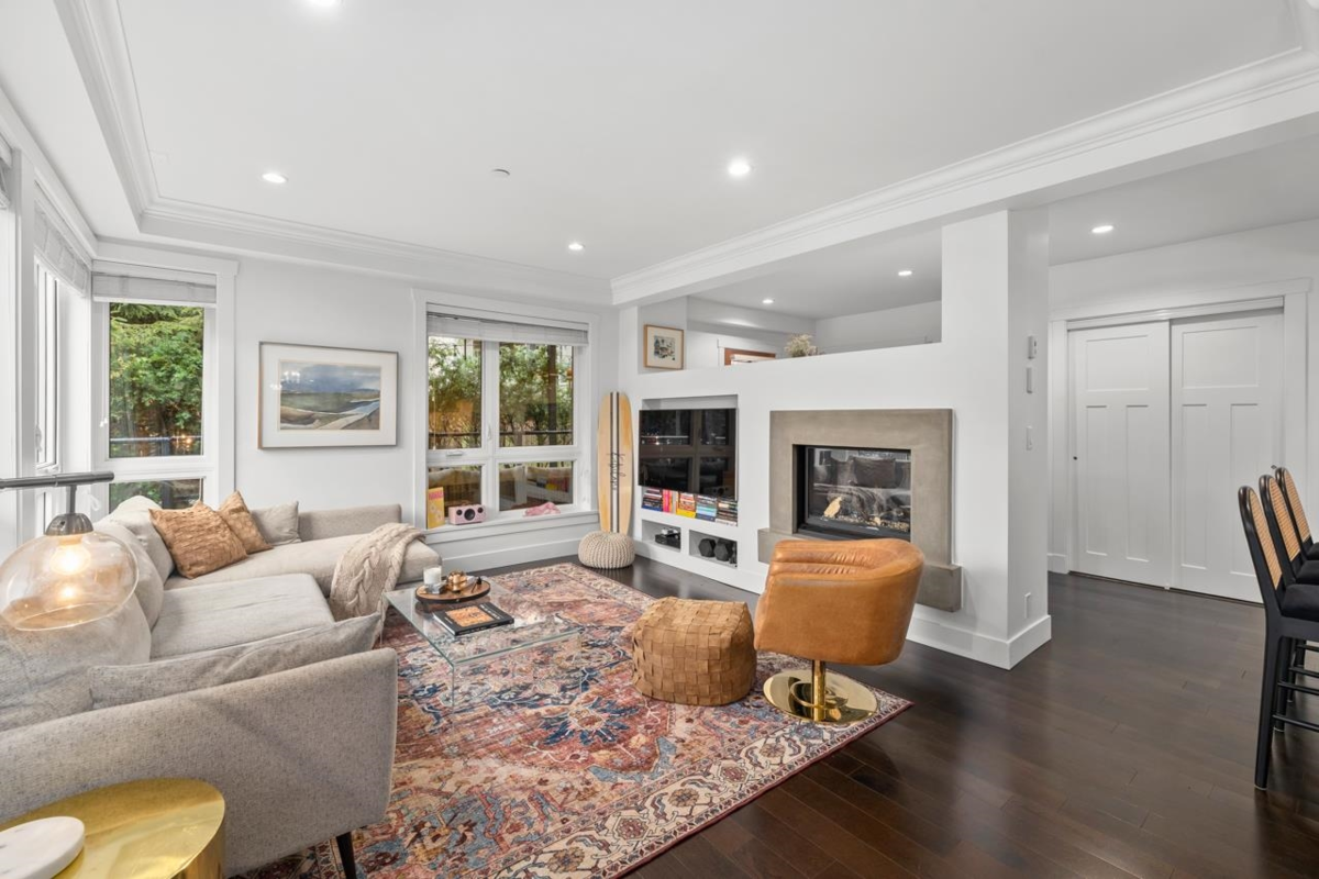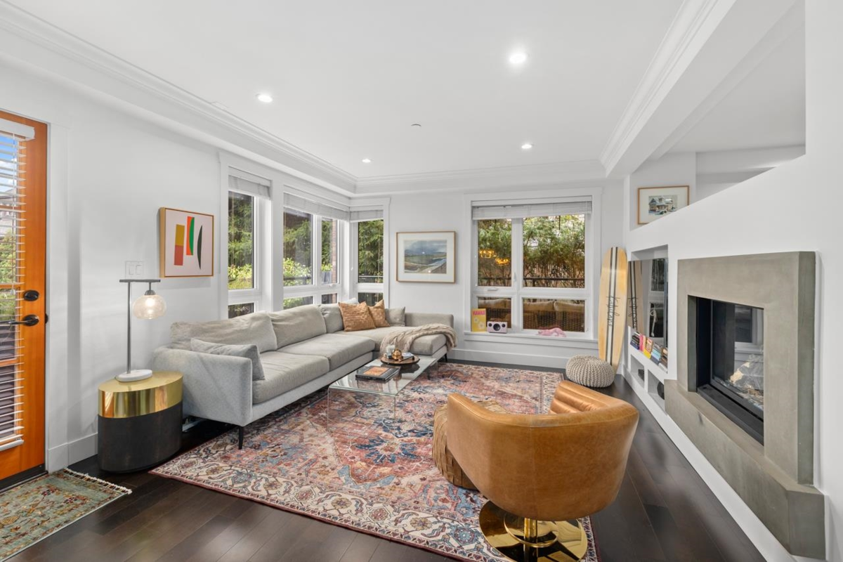 Experience the best of Kitsilano just two blocks from the beach, shops, and restaurants. This 1 bed, 2 bath townhome-style residence is part of an exclusive 5-home boutique building. Chef’s kitchen with stainless steel appliances, gas range, and oversized island opens seamlessly to a spacious dining area and living room with a cozy gas fireplace. A built-in office nook provides the ideal space to work from home, while multiple doors extend the living space onto a private 300+ sq ft patio with gas hookup—perfect for entertaining. The bedroom includes a modern ensuite, complemented by a stylish powder room. NuHeat flooring throughout, 1 EV parking stall, and two oversized heated storage rooms complete this rare Kitsilano gem.