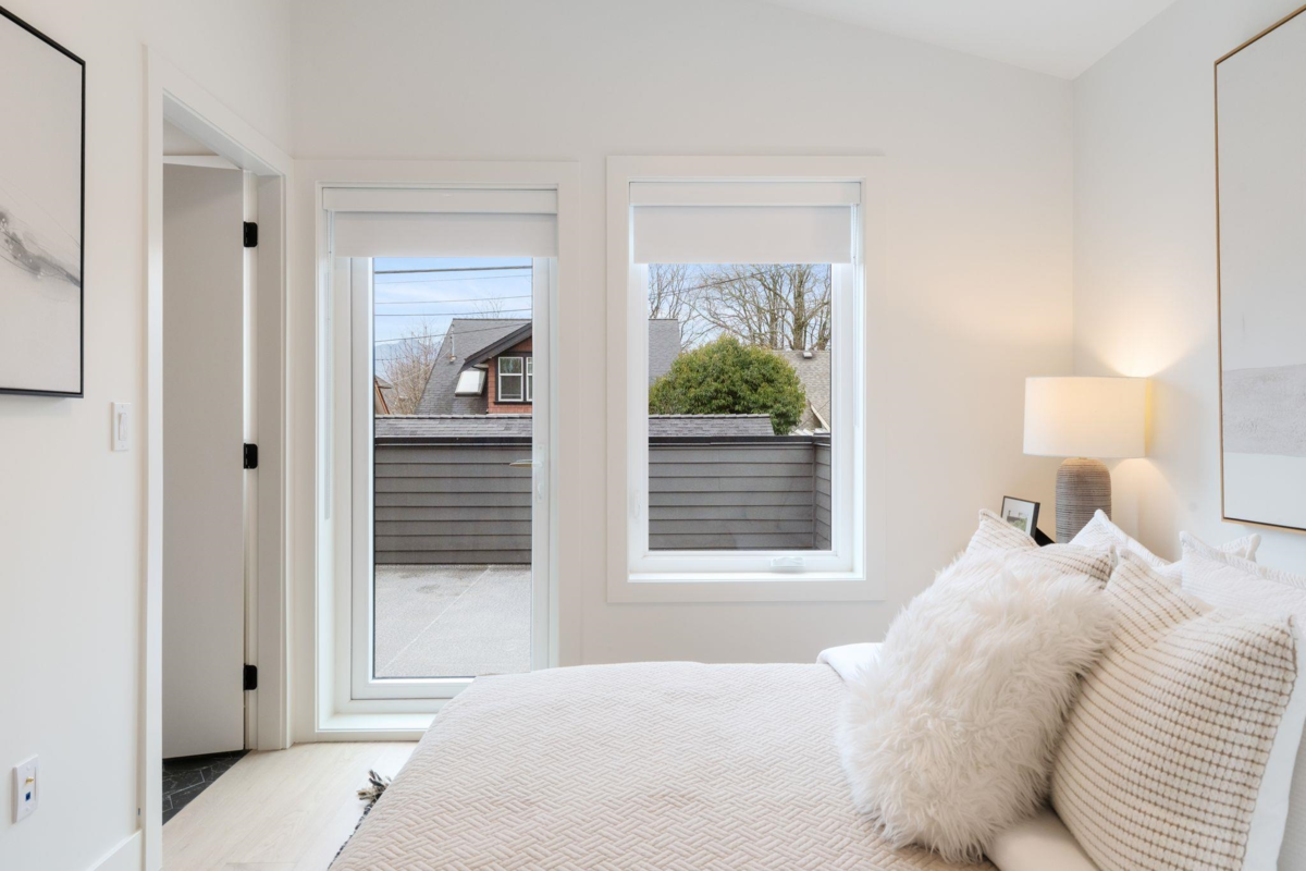 Welcome to The Grant Collection, an exclusive new development tucked away on a quiet, tree-lined street in one of East Vancouver’s most beloved family-friendly communities. Developed by a renowned local builder Fina Homes, long celebrated for quality craftsmanship and sophisticated interiors. This home offers 1286 SQFT spread over two thoughtfully planned levels, ideal for downsizers seeking fewer stairs or young families ready to put down roots. The main is a spacious open plan with a generous living space, dining area and a modern chefs kitchen with integrated Fisher & Paykel appliances, gas range & a kitchen island with bar seating. Upstairs has 3 bedrooms and 2 bathrooms including the primary retreat with a stylish ensuite and direct access to a private 243 sqft sun deck.