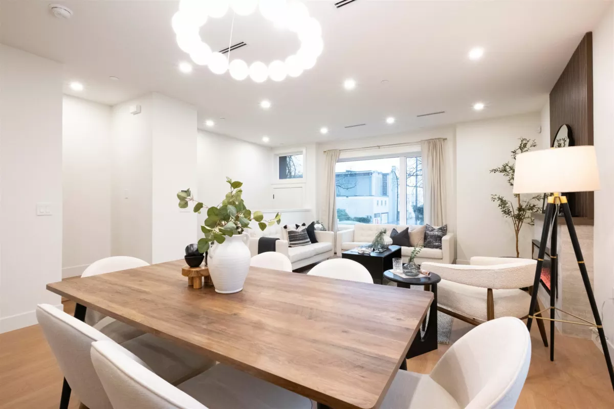 Brand new 4-bedroom family home at Pender Mews, offering space and design rarely found in today’s East Vancouver townhomes and duplexes. This residence features high-end flooring, 9-foot ceilings, custom millwork, LED lighting, and an electric fireplace. The kitchen includes gas cooking, quartz countertops, a large pantry, and premium Fisher & Paykel appliances. Upstairs showcases exceptionally large bedrooms, including a vaulted primary retreat with feature wainscoting, walk-in closet, and a spa-inspired ensuite with tiled shower and bench. Additional highlights include a heat pump with A/C, HRV, EV-ready parking, and private outdoor space. Steps to Hastings amenities, parks, schools, transit, and bike routes.