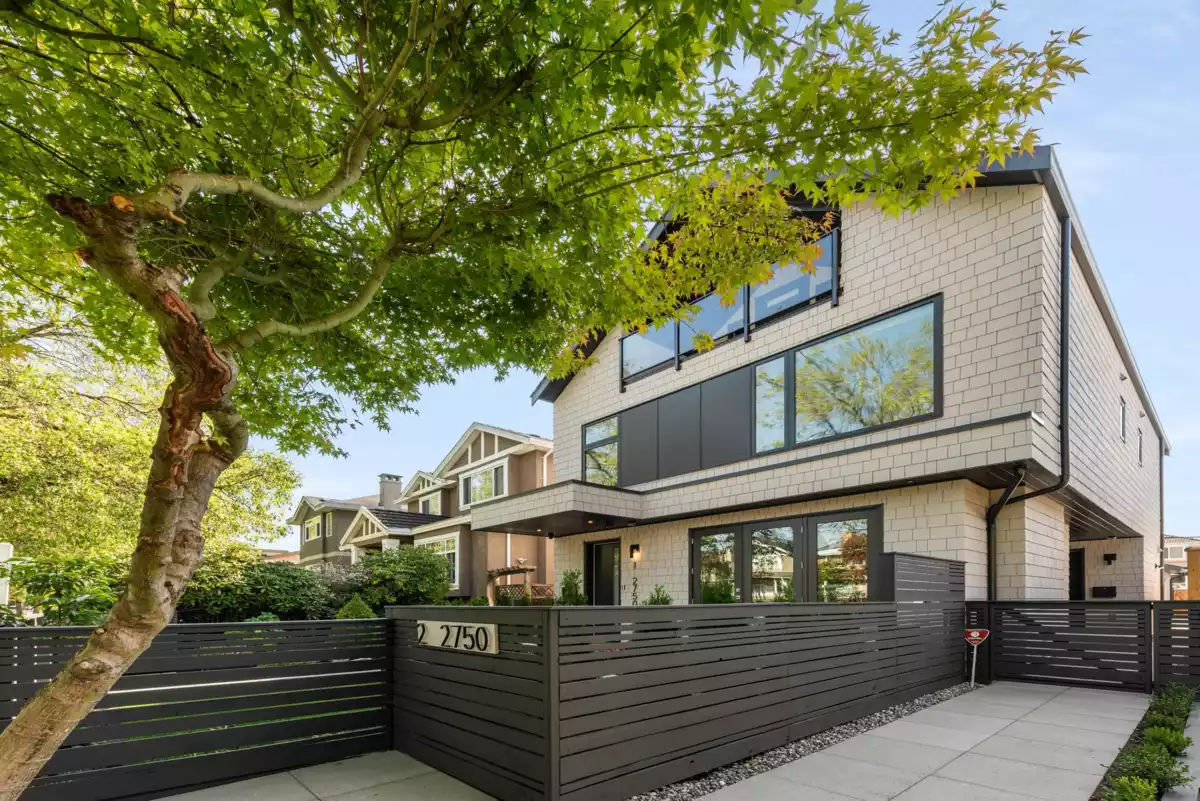 Nestled on a tranquil, tree-lined street in Arbutus-one of Vancouver's most prestigious neighborhoods. This newly built 1695sf duplex offers the perfect blend of luxury&convenience. Just moments from top public&private schools, UBC, cafés, restaurants, parks, shops&beaches. Open concept layout w/9-foot ceilings, wide-plank light oak flooring&oversized windows that flood the space w/natural light. The gourmet kitchen is a chef's dream, featuring a waterfall island, quartz countertops, extensive cabinetry&premium stainless-steel appliances. Upstairs, three spacious bedrooms, each w/its own ensuite, plus a den. Features include in-floor radiant heating with programable “Nest” thermostats, AC/heat pump, security system and a large private back yard and crawlspace.Open house 12-2pm Sun