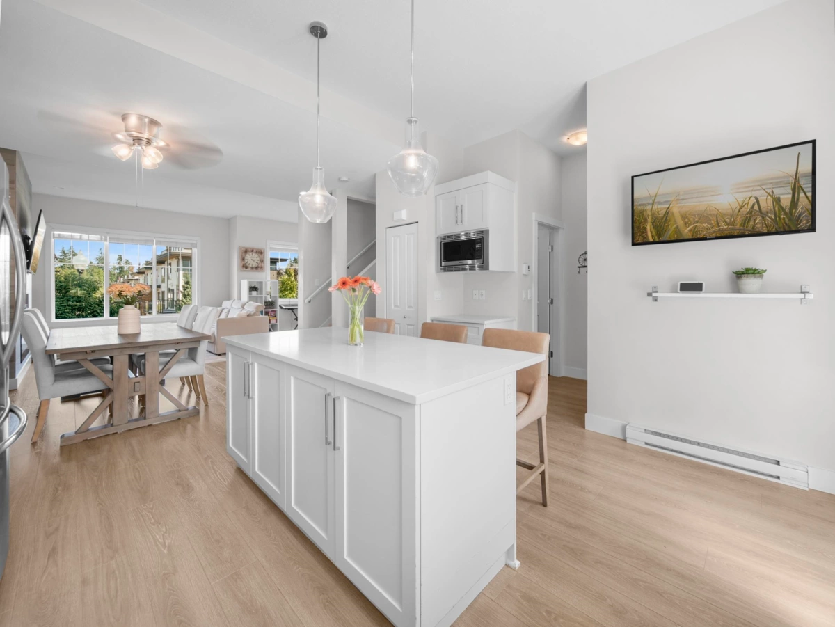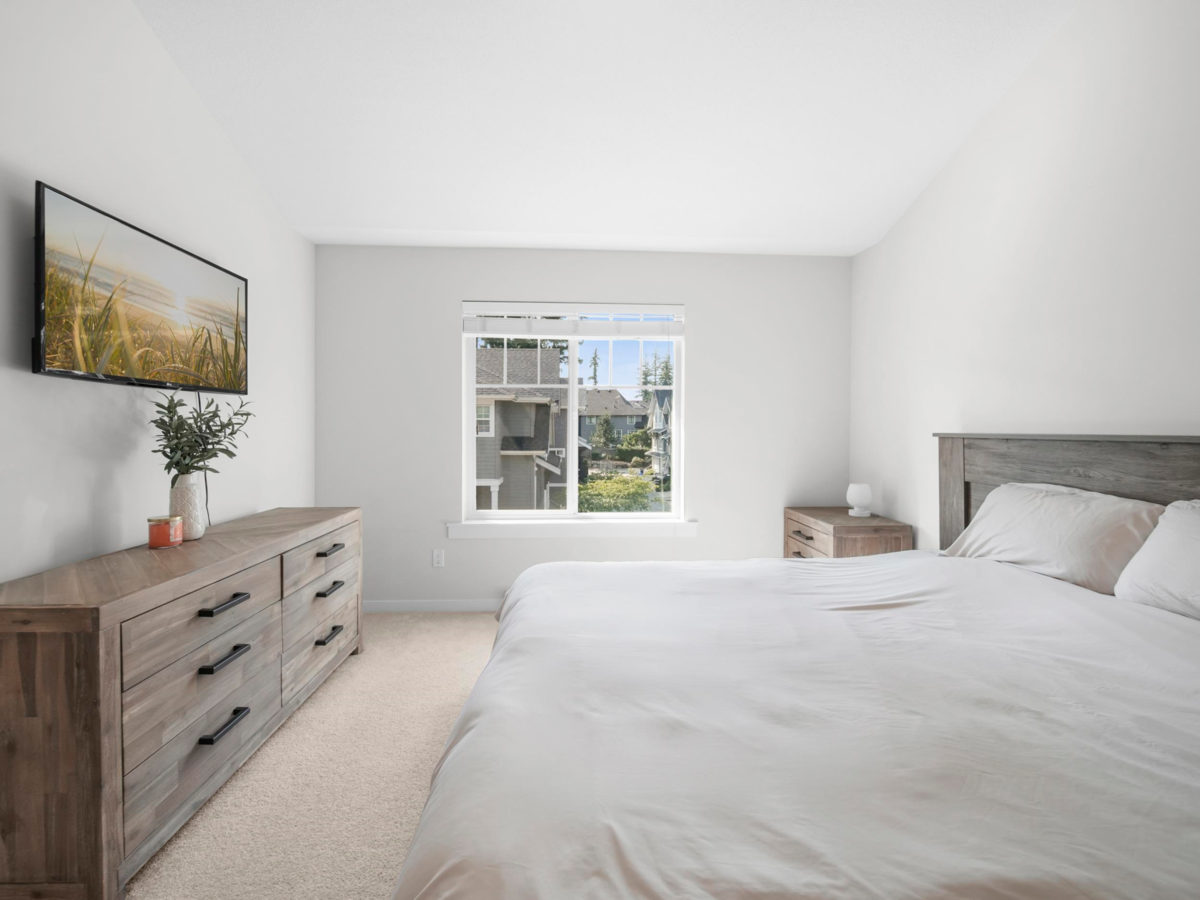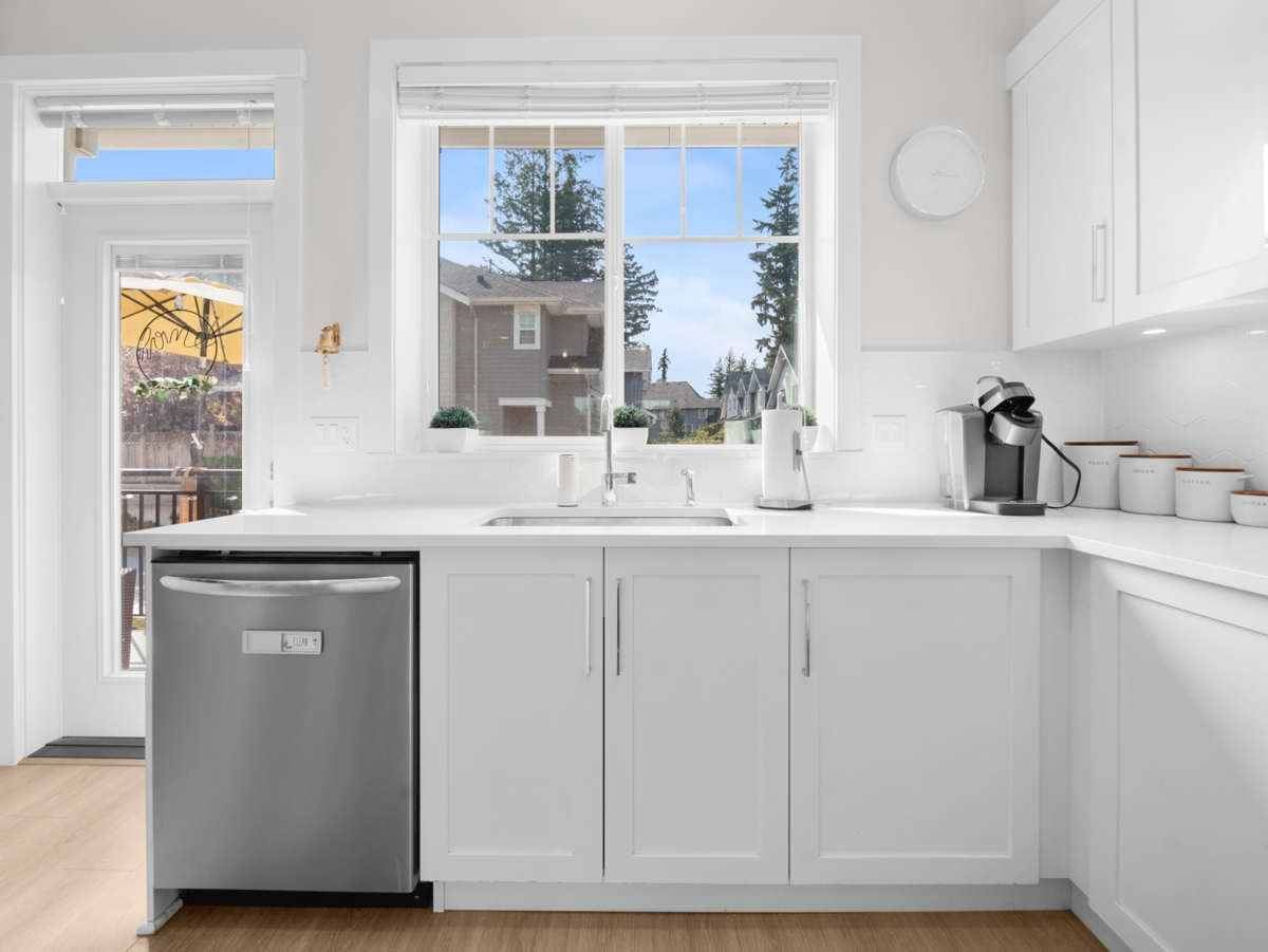 OLIVER by Woodbridge Properties — a boutique, low-density community in the heart of Grandview. This 3 bed + rec room (easily a 4th bdrm), 4 bath townhome offers nearly 1,900 sq. ft. of bright, functional living space. Main floor features 10' ceilings, oversized windows, feature wall, and a chef's kitchen with quartz island, gas range, s/s appliances, pantry, and balcony with gas BBQ hook-up right off the kitchen. Upstairs: 3 spacious bedrooms incl. primary retreat with vaulted ceilings, walk-in closet, and spa-like ensuite with double sinks and oversized walk-in shower. Lower level rec room has full bath with tub and walk-out to private fenced yard. Double side-by-side extra insulated garage fits 2 cars inside + 2 on the driveway. Watch your kids walk to Sunnyside from your living room!