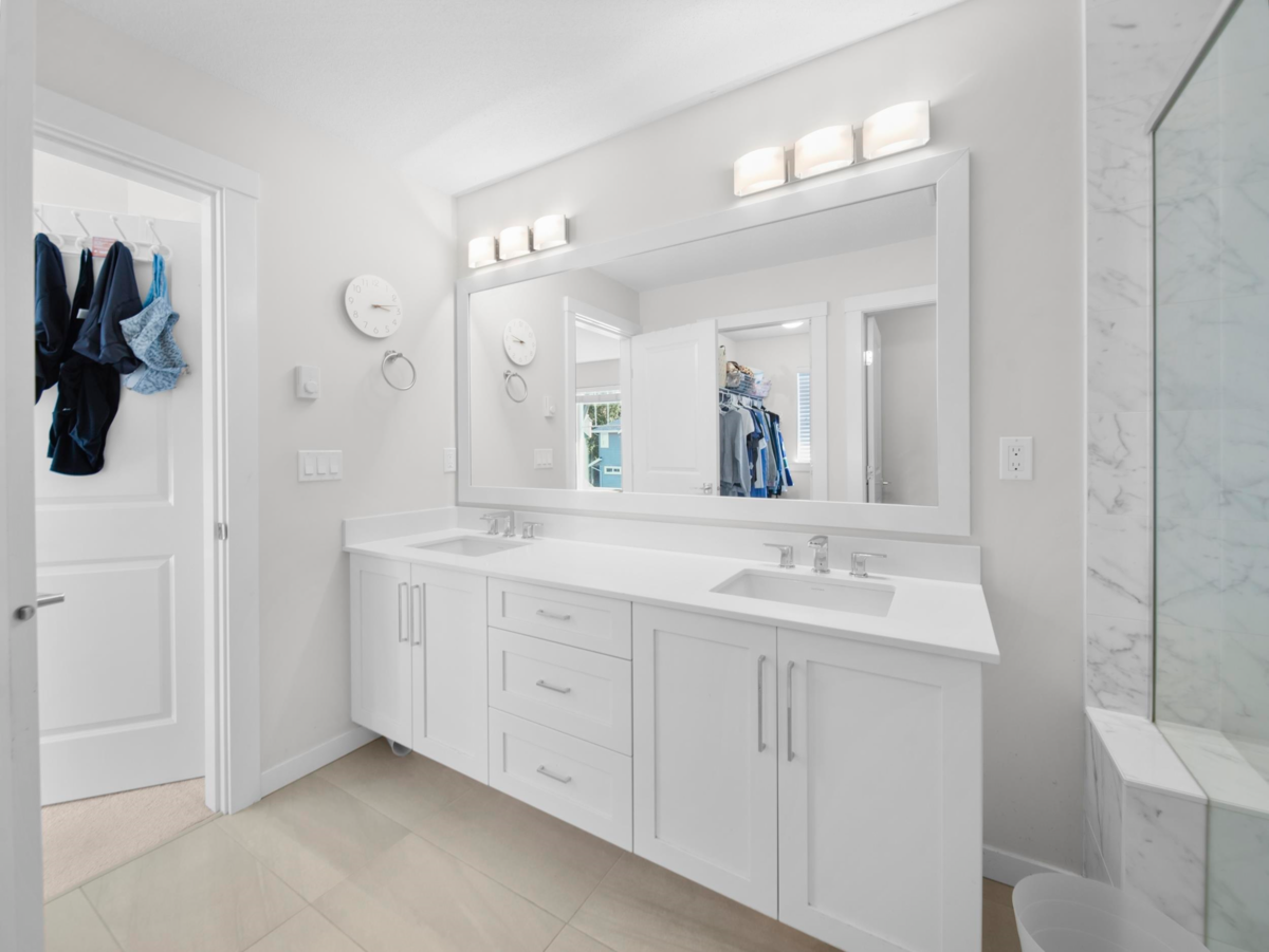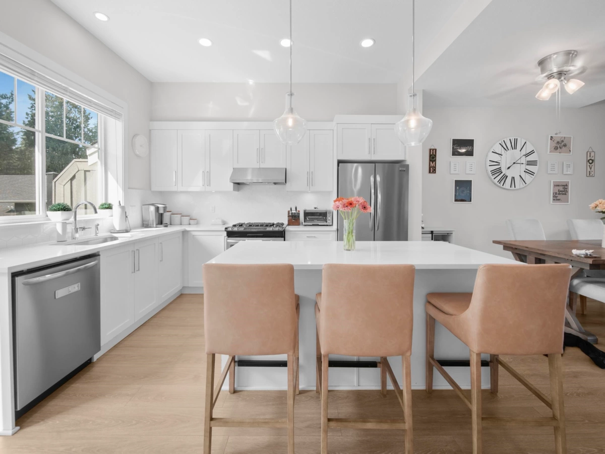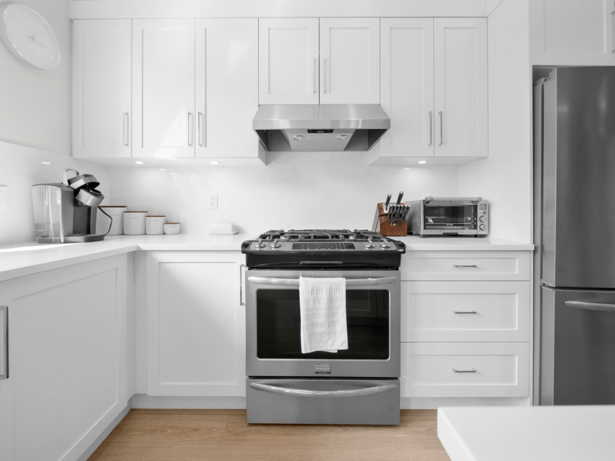 OLIVER by Woodbridge Properties — a boutique, low-density community in the heart of Grandview. This 3 bed + rec room (easily a 4th bdrm), 4 bath townhome offers nearly 1,900 sq. ft. of bright, functional living space. Main floor features 10' ceilings, oversized windows, feature wall, and a chef's kitchen with quartz island, gas range, s/s appliances, pantry, and balcony with gas BBQ hook-up right off the kitchen. Upstairs: 3 spacious bedrooms incl. primary retreat with vaulted ceilings, walk-in closet, and spa-like ensuite with double sinks and oversized walk-in shower. Lower level rec room has full bath with tub and walk-out to private fenced yard. Double side-by-side extra insulated garage fits 2 cars inside + 2 on the driveway. Watch your kids walk to Sunnyside from your living room!