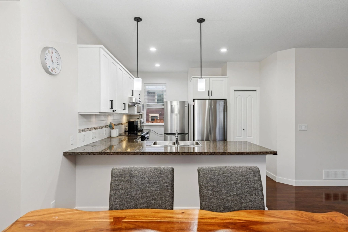 Welcome to CARTIER! House size living with more than 2,100 SqFt over 3 levels in a lower maintenance bare land strata.This is a very special home. The most charming covered front porch leads you to an open concept main floor. The living room has a cozy gas fireplace & flows seamlessly to the dining room & kitchen, equipped with SS appliances & granite countertops. Upstairs is 3 oversized bedrooms including a primary retreat with vaulted ceilings, window seat, walk in closet and 5 piece en-suite. Downstairs rec room has potential for a 4th bedroom, play room, home office or gym. Attached 1 car garage and additional parking space. Centrally located and minutes to shops and restaurants. Unique and thoughtfully designed this home checks all the boxes.