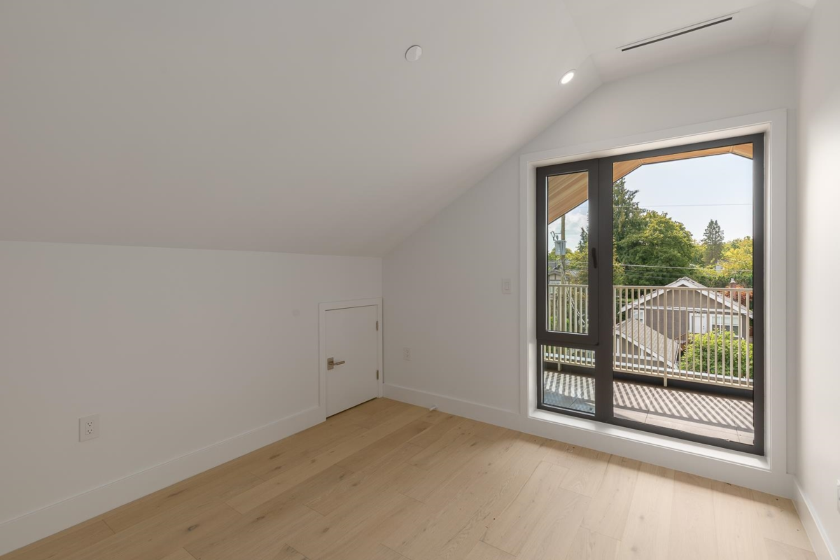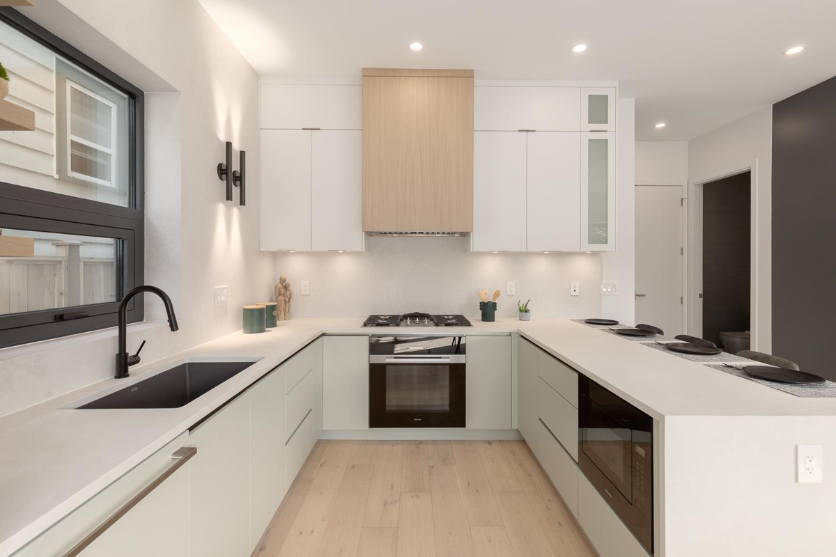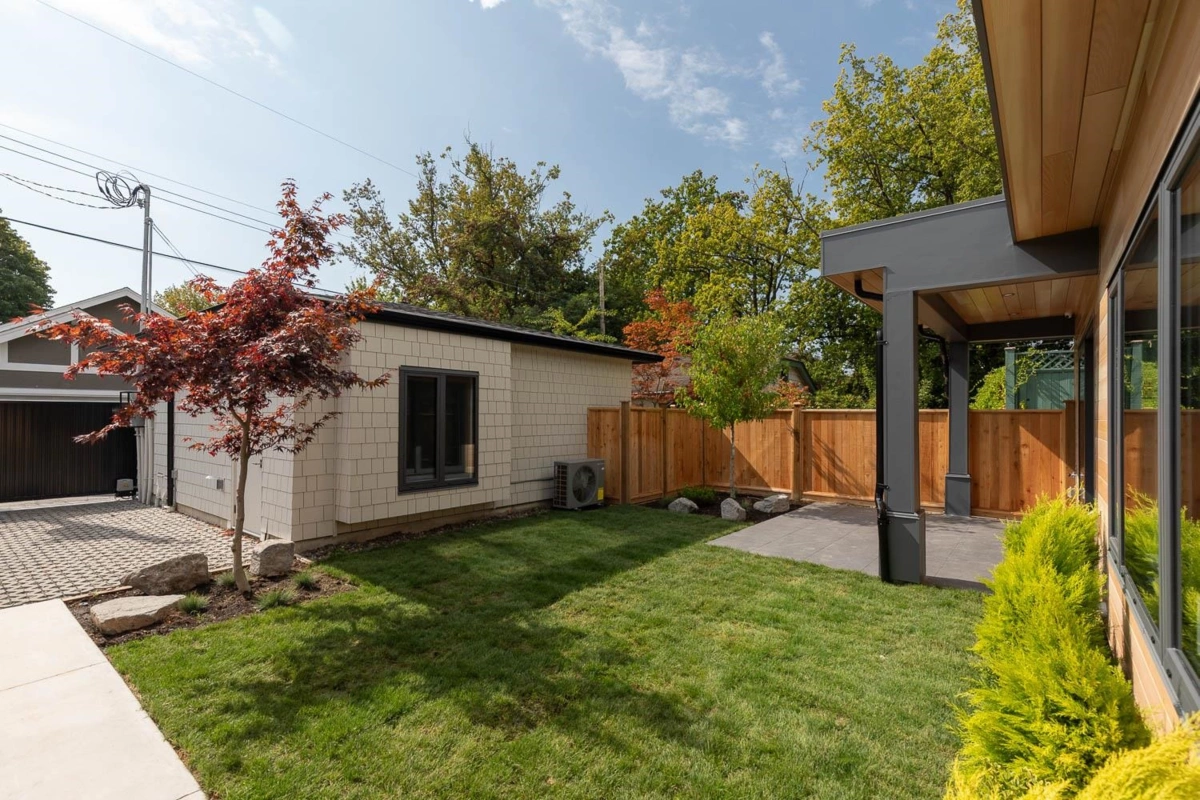 Situated on an oversized 40x120 lot in prime Kitsilano, this rear 1/2 duplex combines thoughtful design with spacious open floor plan. The main floor offers expanded living & dining areas, perfect for gatherings anchored by a sleek Miele kitchen & tons of storage. This 4 bedroom unit includes 3 beds on the second level, plus a top-floor retreat with a full bath, balcony, & generous storage. Enjoy sun-filled days in the private south-facing yard, ideal for indoor-outdoor living. Year-round comfort with heat pump heating/cooling, and rare 2 car parking with private garage + additional pad. This is an exciting opportunity to secure new construction in one of Vancouver’s most sought-after neighbourhoods. Front unit available as well.