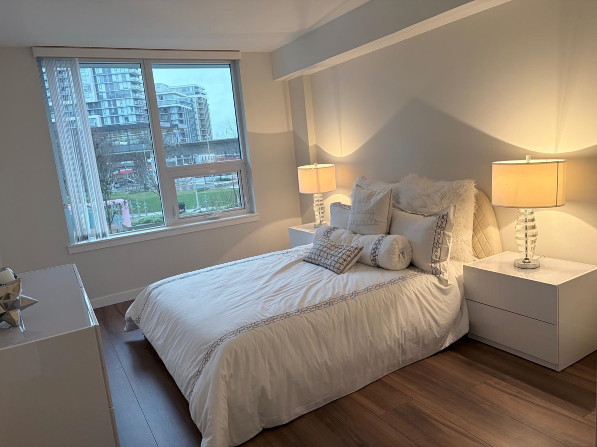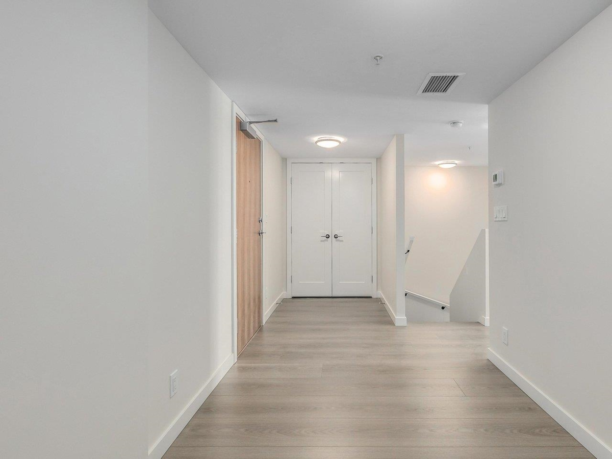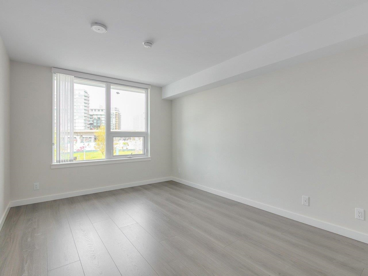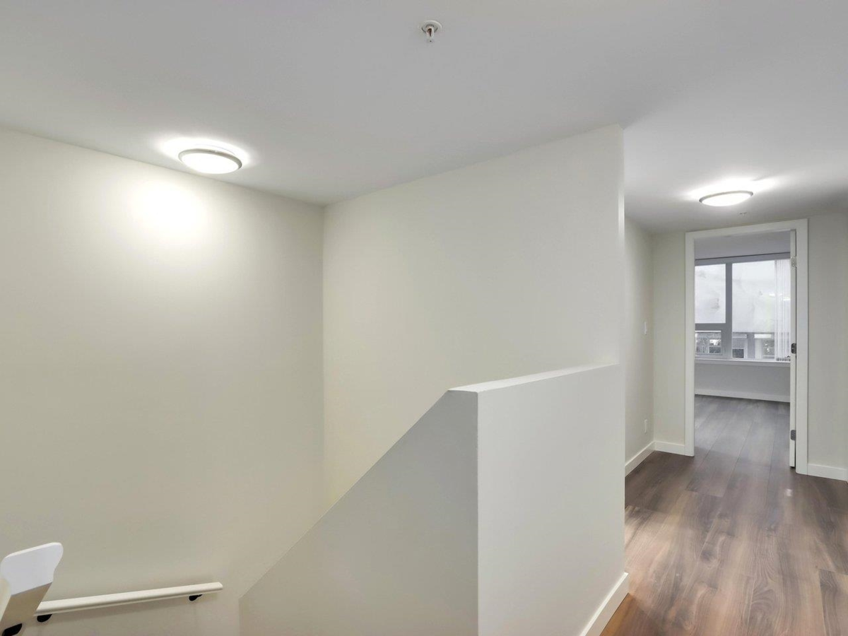 Park-view Concrete 2-Level Townhome with fantastic natural light! Brand new & move-in ready! Spread out in your super-wide living and dining areas. Large flex room (large enough as a full bedroom) and full bathroom on main floor. 2 large bedrooms + den on top floor. Ample storage throughout home with laundry room, many closets and crawl space under stairs. Conveniently located in walkable neighbourhood and within 2 mins walk to Capstan Canada Line Station.