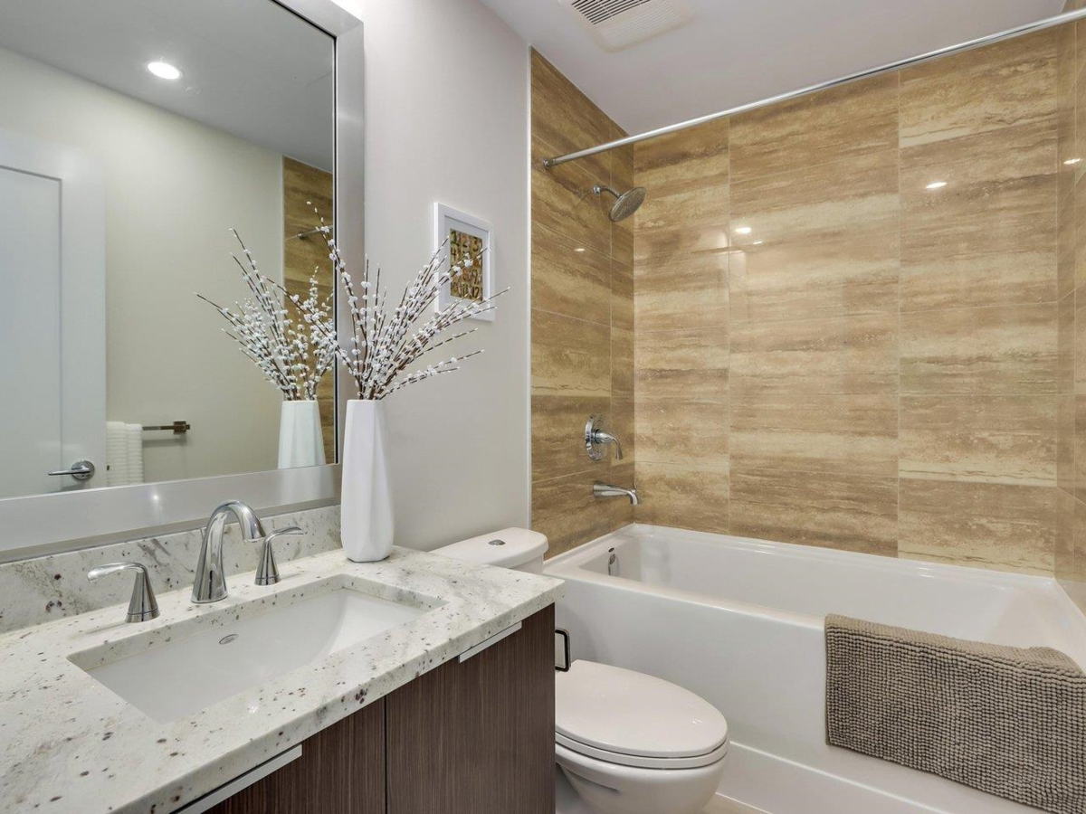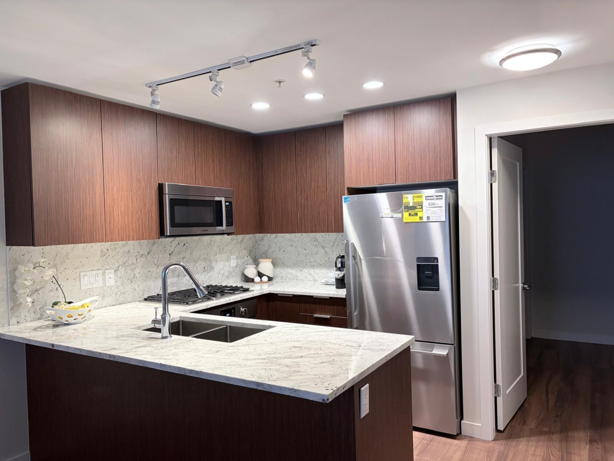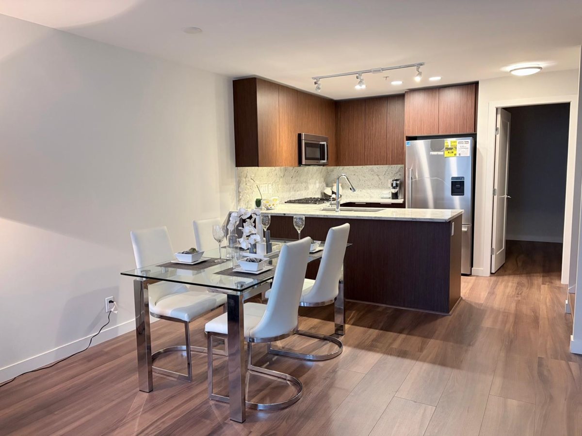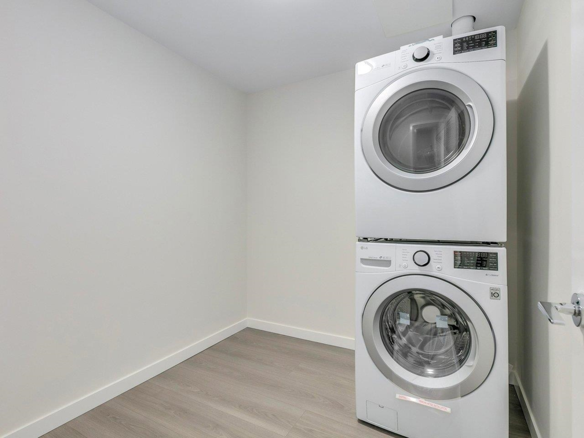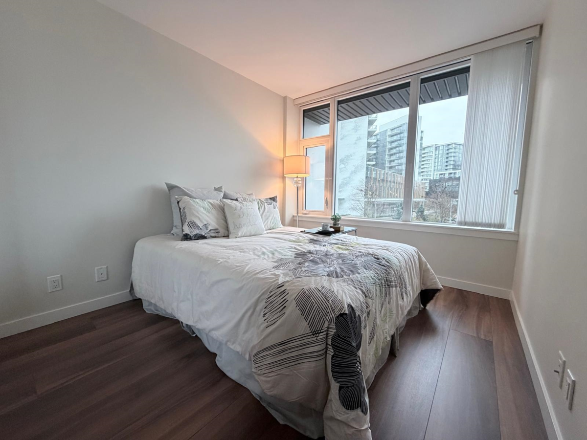 Park-view Concrete 2-Level Townhome with fantastic natural light! Brand new & move-in ready! Spread out in your super-wide living and dining areas. Large flex room (large enough as a full bedroom) and full bathroom on main floor. 2 large bedrooms + den on top floor. Ample storage throughout home with laundry room, many closets and crawl space under stairs. Conveniently located in walkable neighbourhood and within 2 mins walk to Capstan Canada Line Station.