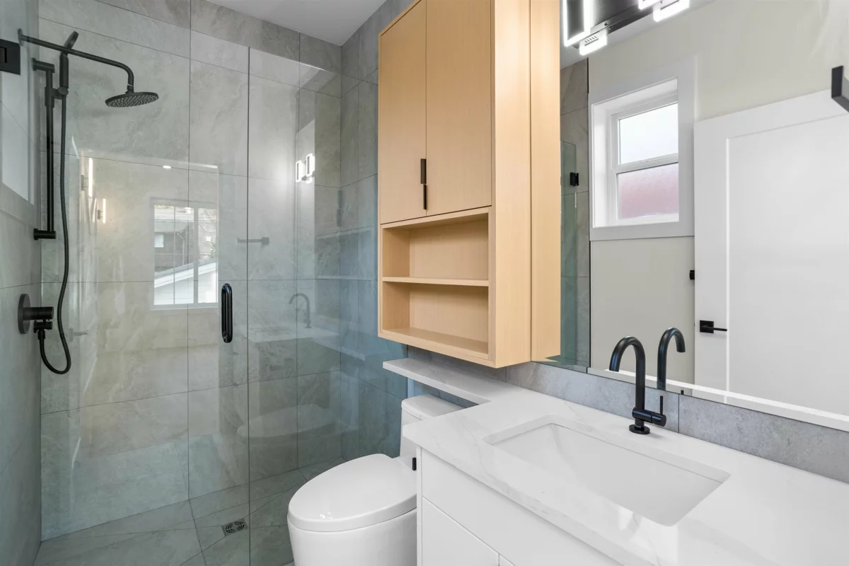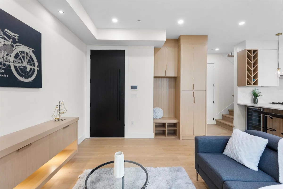 Discover the Napier Duplex Collection! Beautifully crafted back unit duplex offering 3 bed 4 bath open concept living floor plan. Premium millwork, design package + elegant finishing built with attention to detail + functionality in mind. Urban farmhouse style that offers warm and inviting spaces from the moment you step inside. Kitchen is equipped w/ Fisher-Paykel integrated appliances package, custom cabinetry, wine cooler and pantry space. Engineered hardwood flooring, A/C heat pump, security systems, radiant floor heating + single car garages w/ EV parking. Quick access to schools, amenities, HWY1 access + short drive to Hastings Street shops.