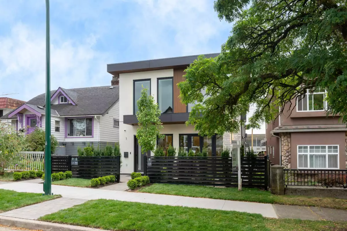 2 LEVEL Back DUPLEX in Vancouver Heights by Cheng Properties. These homes offer 4 spacious bedrooms and 3 stylish bathrooms across a thoughtfully designed layout with 1 bedroom on the MAIN FLOOR. Featuring engineered hardwood flooring, gas stove, in-suite laundry, high ceilings and a heat pump with A/C for year-round comfort. Move in and enjoy main floor sound system, smart doorbell, and a built-in security system. Each unit boasts private outdoor space, professional landscaping, and parking. Ideal for families seeking a blend of comfort, function, and smart home convenience in a beautifully crafted residence. Located in walking distance to cafes, shopping and all all the neccessities. School Catchment: Sir John Franklin Community + Templeton Secondary.