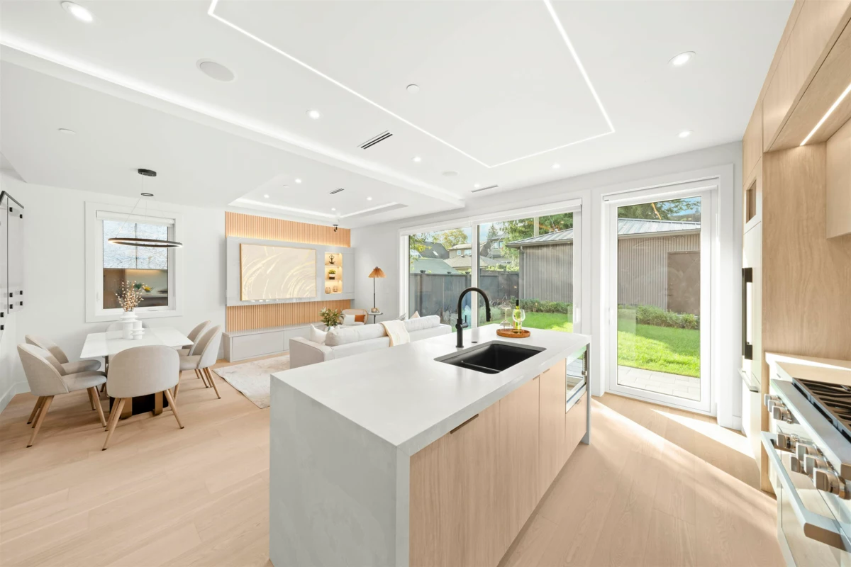 Discover modern elegance in this brand new 1/2 duplex by Astrawest Homes, ideally located on a quiet, tree-lined street in the heart of Dunbar. Offering over 1,600 sq.ft. with 3 bedrooms and 3.5 bathrooms, this home blends timeless design with high-end finishes including Longboard metal siding, Euroline windows, Miele appliances, Brizo & Kohler fixtures, engineered hardwood floors, Google Nest smart home, Bluetooth speakers, A/C & heat pump, and landscape lighting. Steps from Lord Kitchener Elementary, a short walk to Lord Byng Secondary, and minutes to St. George’s, Crofton House, and the shops and cafes of Dunbar Village.