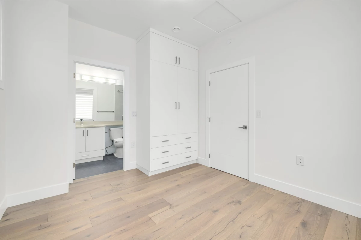 Thoughtfully designed brand new 2-bedroom plus flex room, 4-bath duplex in Renfrew Heights offers modern comfort and functionality. Each bedroom and the flex room features an en-suite bathroom, for more privacy. The flex room, with a separate entrance, can be a bedroom, office, or recreation room. The home includes air conditioning, engineered hardwood floors, custom cabinetry, ample storage, and plenty of natural light. Enjoy a fenced backyard, deck, walkways, and a single-car garage with EV outlet. Stunning North Shore mountain views. Conveniently located near Highway 1, grocery stores, restaurants, schools, and SkyTrain stations. Includes 2-5-10 New Home Warranty for peace of mind. Open House Oct 12 (Sun ) 2 to 4pm