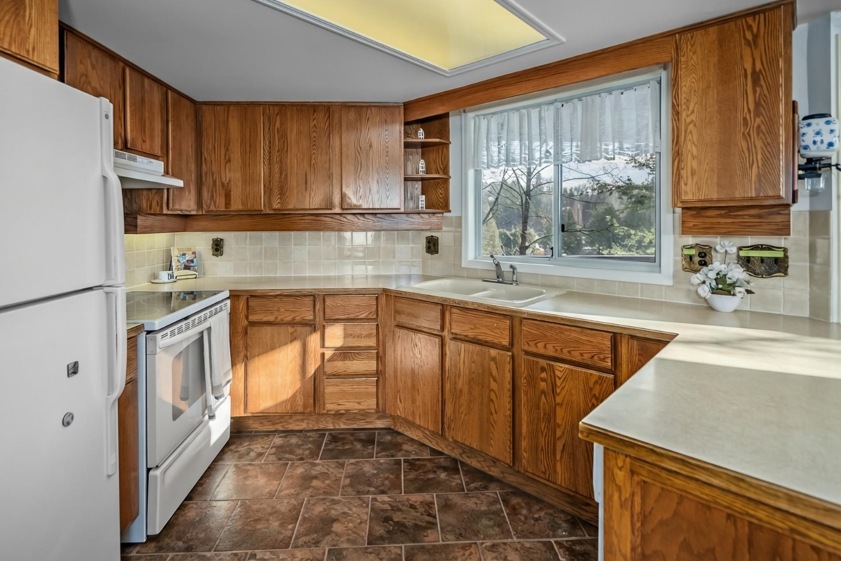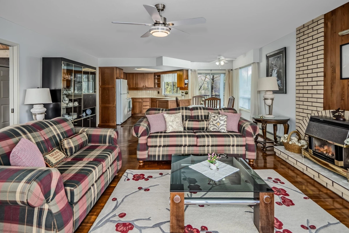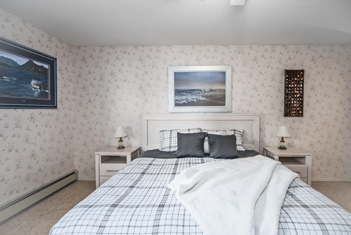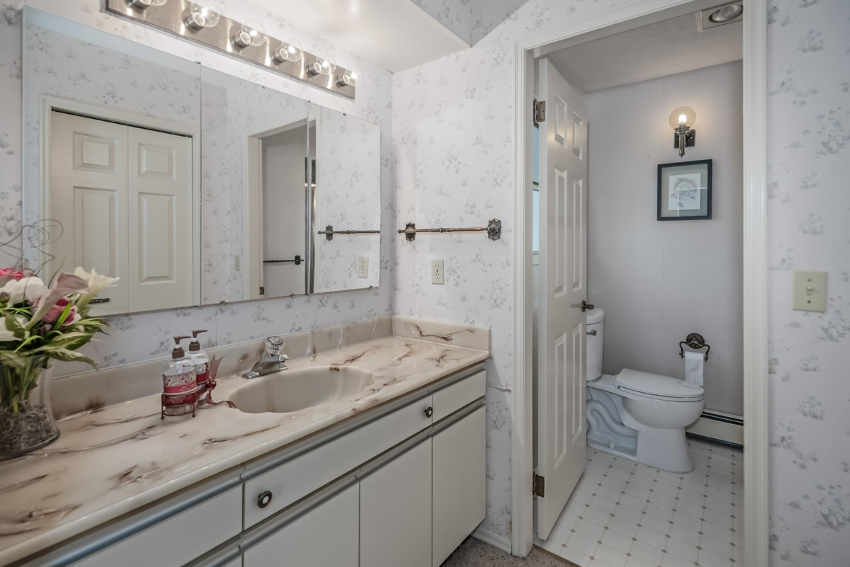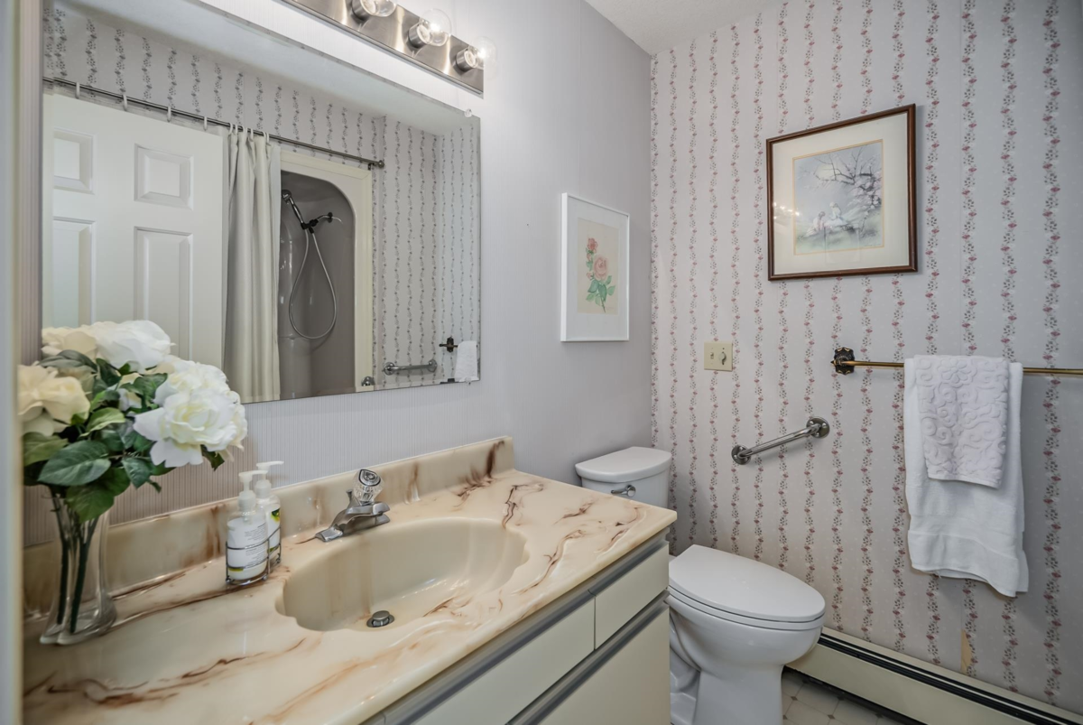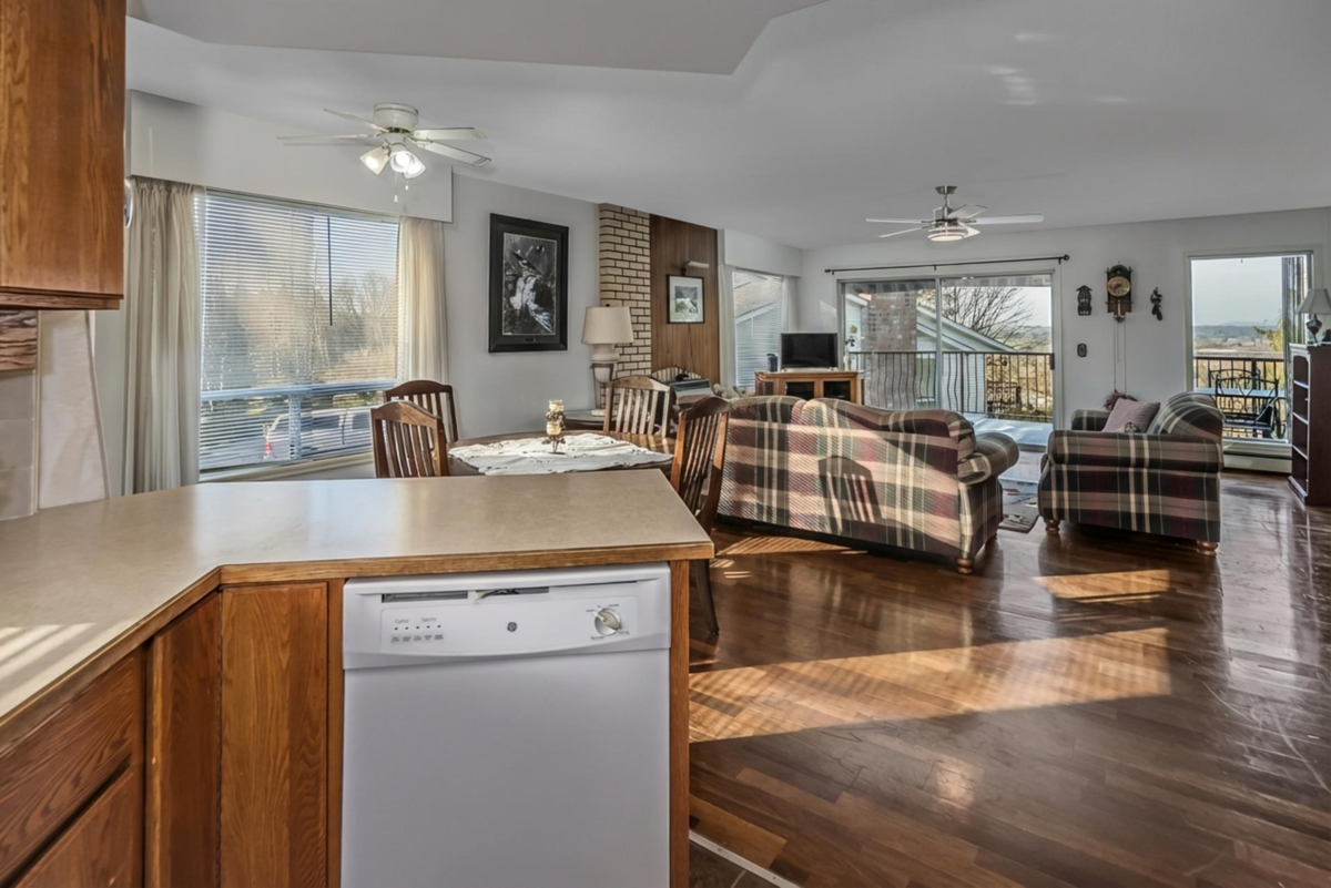 Rarely available at Laurentian Green - a niche, 10 unit 55+ complex in a prime location! A gorgeous top floor rancher style townhome w/ a stunning view of the valley + mountains! Bright and open w/ tons of natural light throughout! Kitchen has great counter space + open concept to dining and living area w/ gas fireplace! Spacious formal living room w/ large windows to soak in the view + beautiful vaulted ceiling w/ skylights allowing tons of natural light! Primary bedroom big enough for king bed + office area! Great size walk in closet + 3 pc ensuite! Large 2nd bedroom + full bathroom! Double side by side garage w/ vaulted ceiling for ample storage + stair lift! Huge 690 sqft storage/workshop below w/ heat, sink + power! Quiet location just minutes to parks, trails, shops, grocery + more!