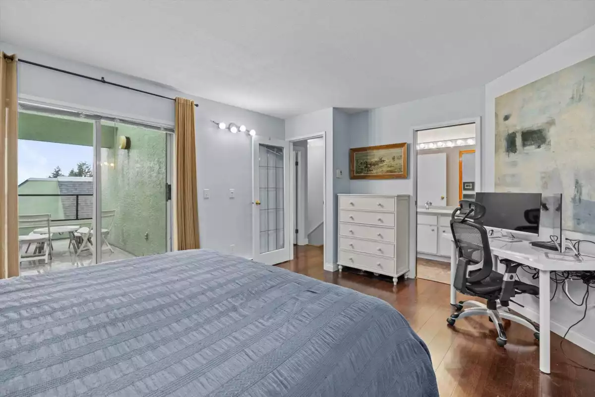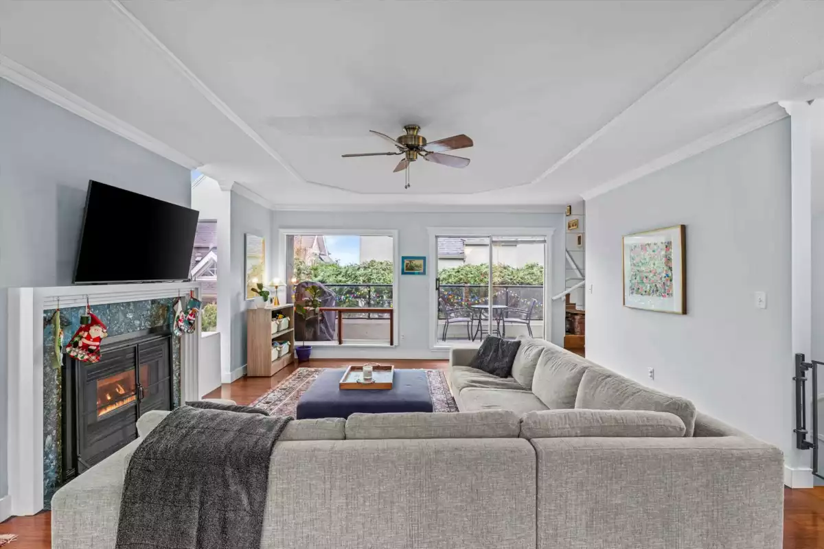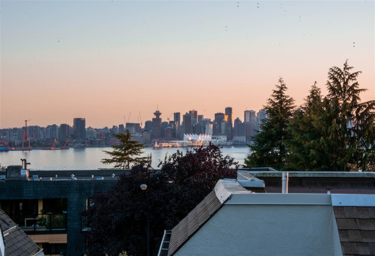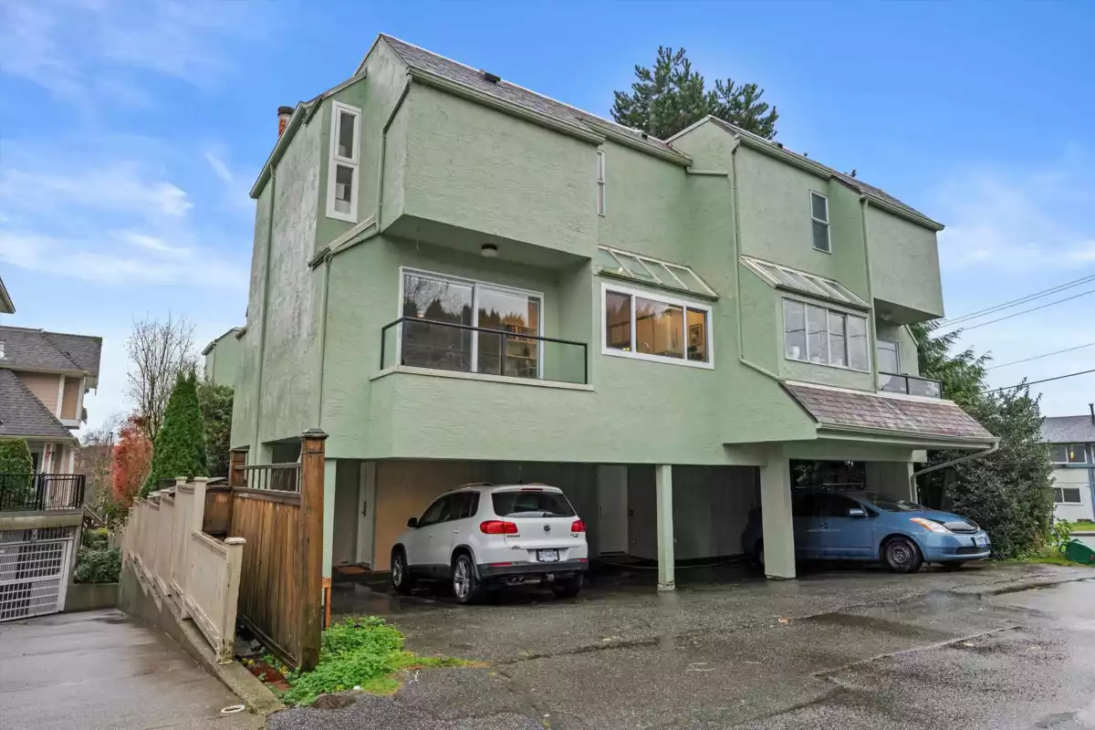 This bright, spacious 2-bed corner home stretches over 3 levels & 1,300+ sq ft of easy living. The top floor is your private retreat, with a generous primary bedroom, walk-in closet, en-suite, & a balcony with downtown views that never get old. The main level is a true standout; an airy open kitchen & living space absolutely drenched in natural light from skylights, 2 balconies, & several new windows plus a new balcony door. Downstairs adds laundry with brand-new machines, a powder room, crawl-space storage, a mini workshop for your inner tinkerer, an enclosed patio, & a two-car EV-ready carport with direct access. Pets are welcome in this proactive, friendly, relaxed, low-fee, self-managed community. Steps to all that Lower Lonsdale offers! OPEN CANCELLED, SORRY!