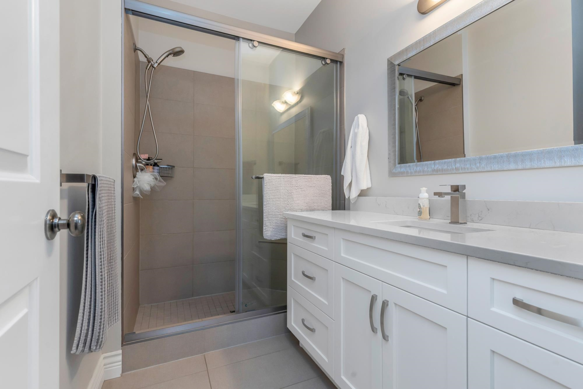 Step into luxury at this meticulously updated 5-bedroom townhome in Serenity at Garrison Crossing. This three-level gem boasts a grand entry with soaring vaulted ceilings leading to a sun-drenched, open-concept living space. Recent high-end upgrades feature vinyl plank flooring, fresh paint, and custom light fixtures. The gourmet kitchen shines with crisp white cabinetry, quartz countertops, and premium new appliances. Enjoy year-round comfort with a heat pump (A/C) and the luxury of heated floors in the upper bathroom. The versatile layout offers a main-floor primary suite, two bedrooms up, and two down alongside a family room with a sleek wet bar—perfect for entertaining or a teenager hangout. A private yard with street-gate access completes this stroll-to-everything retreat.