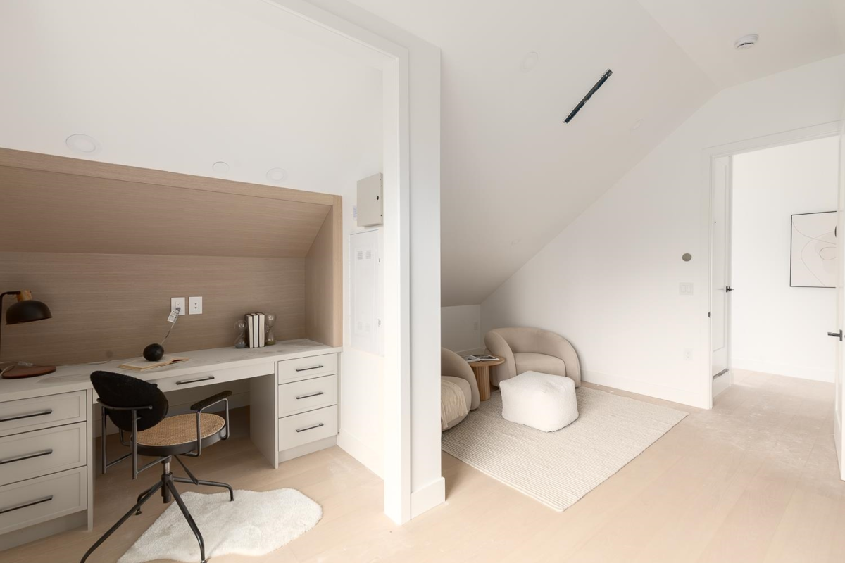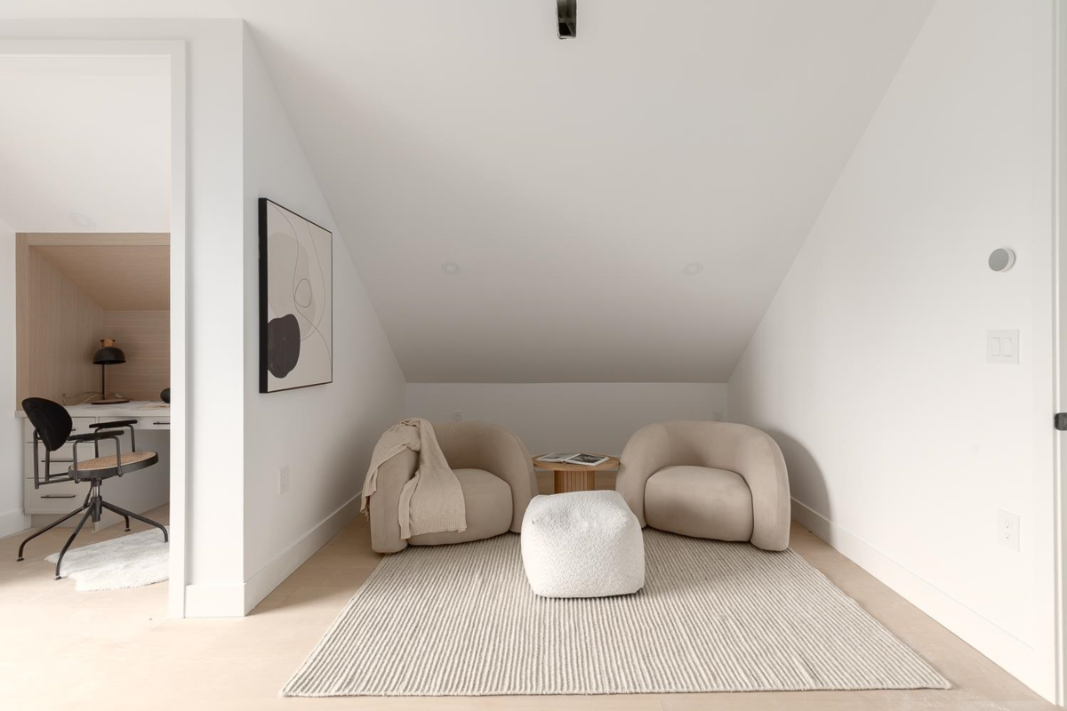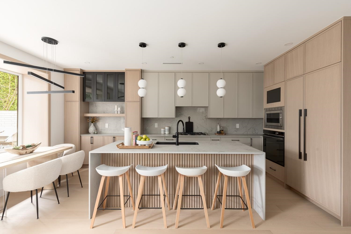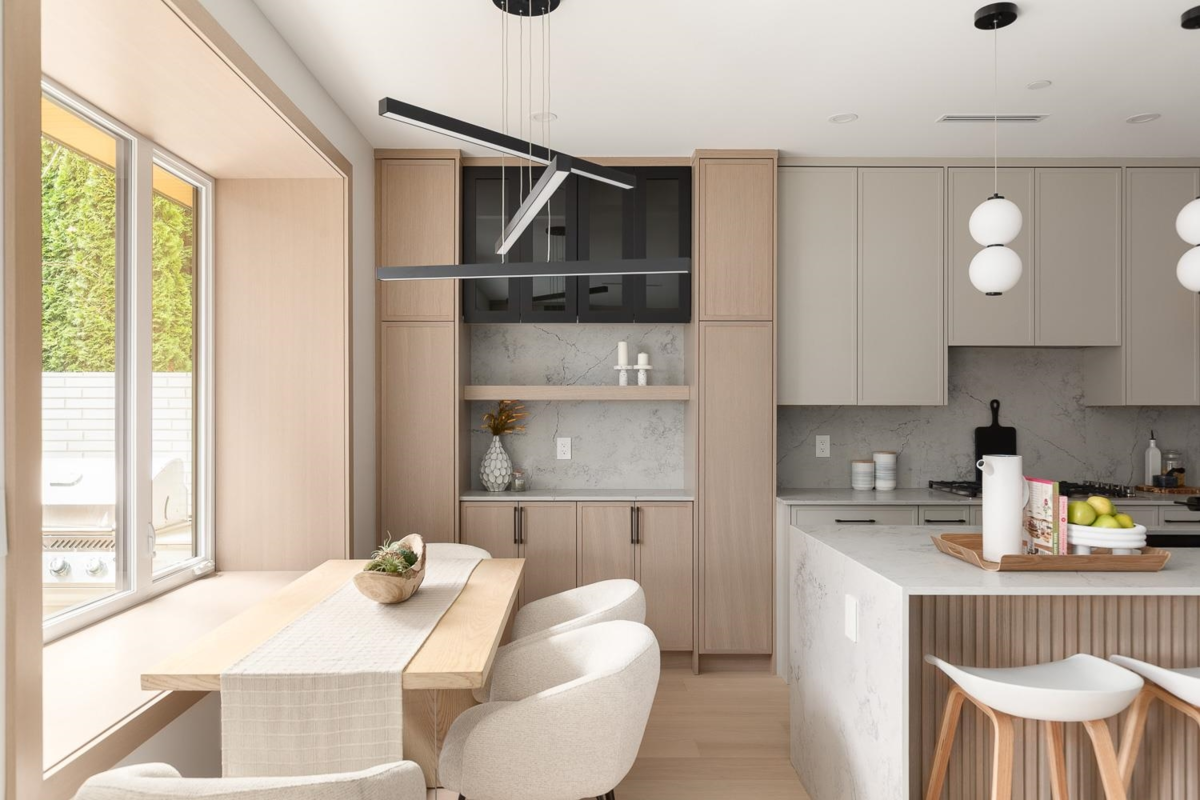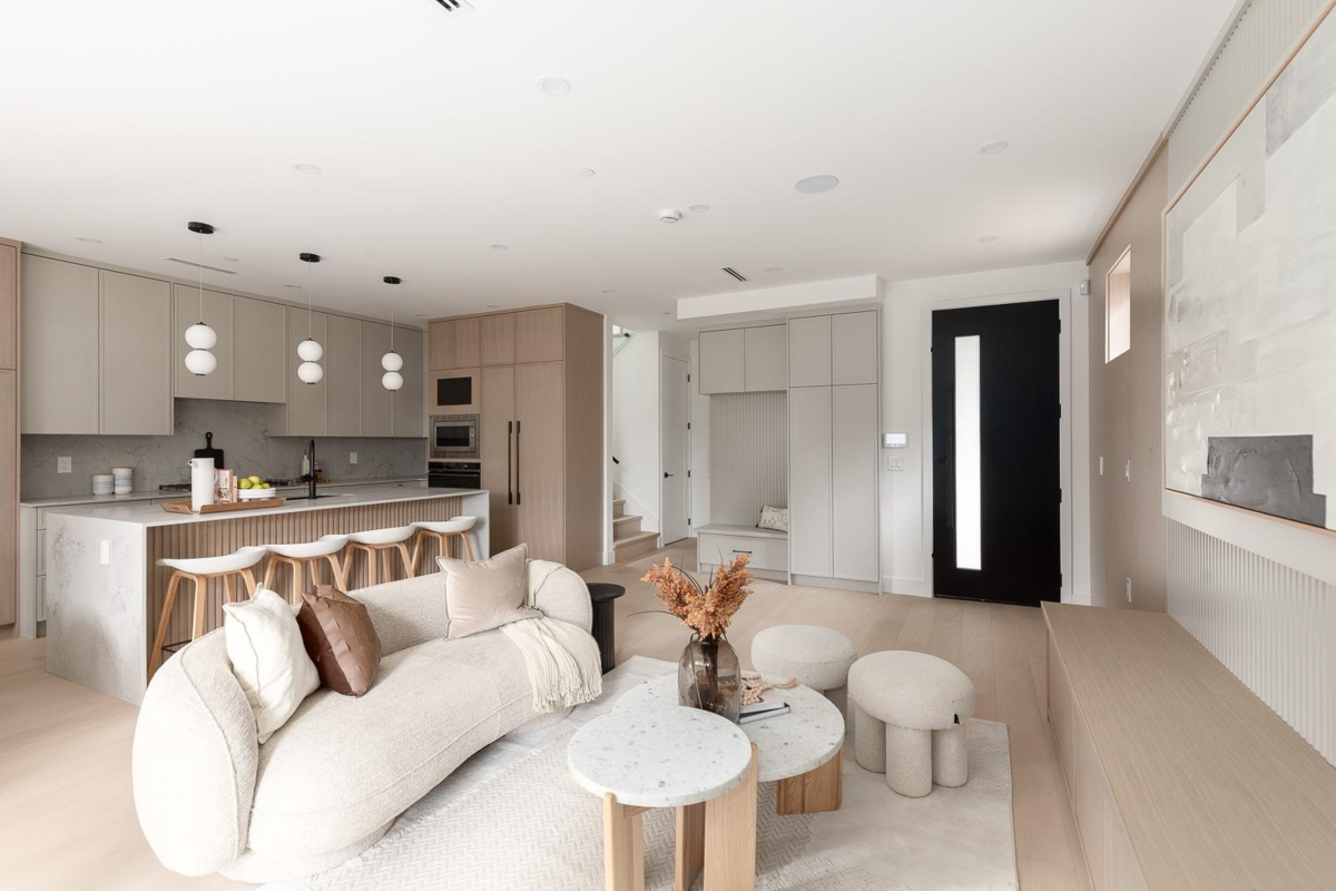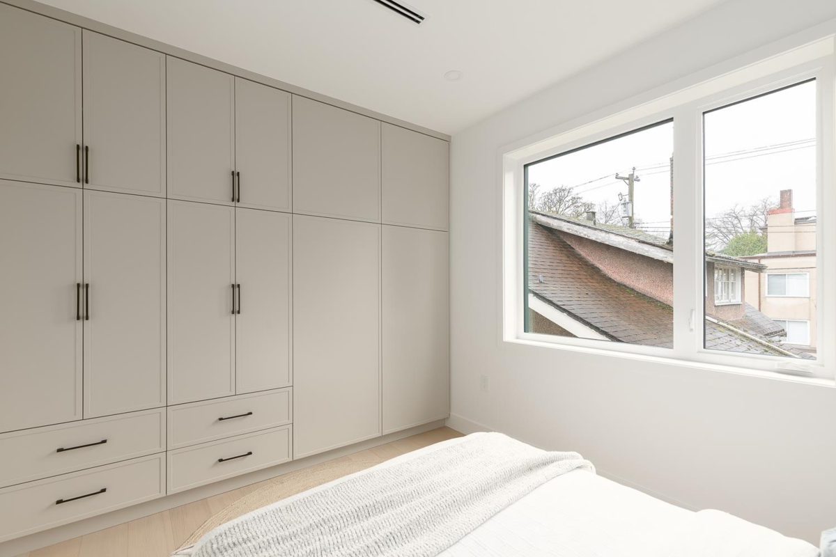 Back 1/2 duplex in coveted Cambie Village offering almost 1,900 sq.ft., 4 bedrooms & 3.5 baths. A covered patio with Eclipse doors connects the bright living space to an outdoor kitchen for seamless entertaining. Oversized designer kitchen showcases integrated cabinetry & extensive millwork. Top floor loft is a highly functional 4th space with built-in desk, lounge area & ensuite primary featuring a curbless shower & room for a king bed. Private 1-car garage, radiant heat, A/C, Google thermostats, built-in surround sound & 4-camera security provide modern comfort. Exceptional walkability to Hillcrest Park, farmers market, shops & restaurants with quick access to Downtown & Kitsilano.