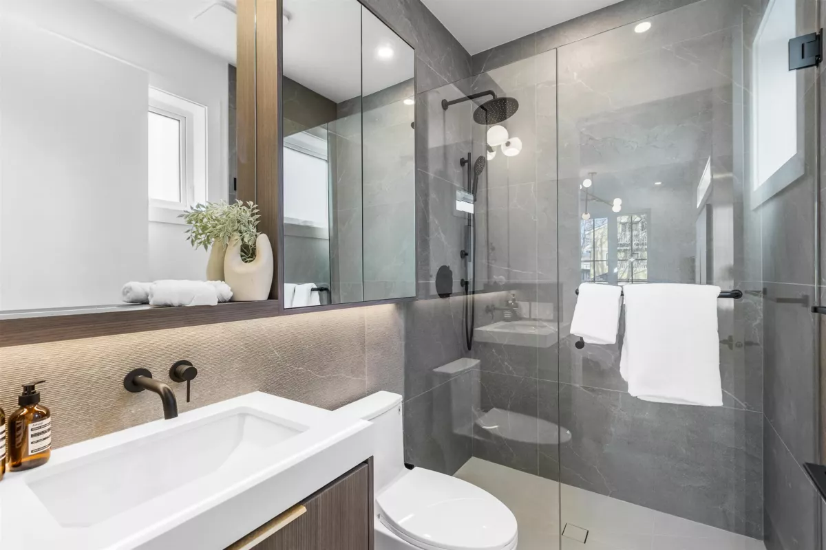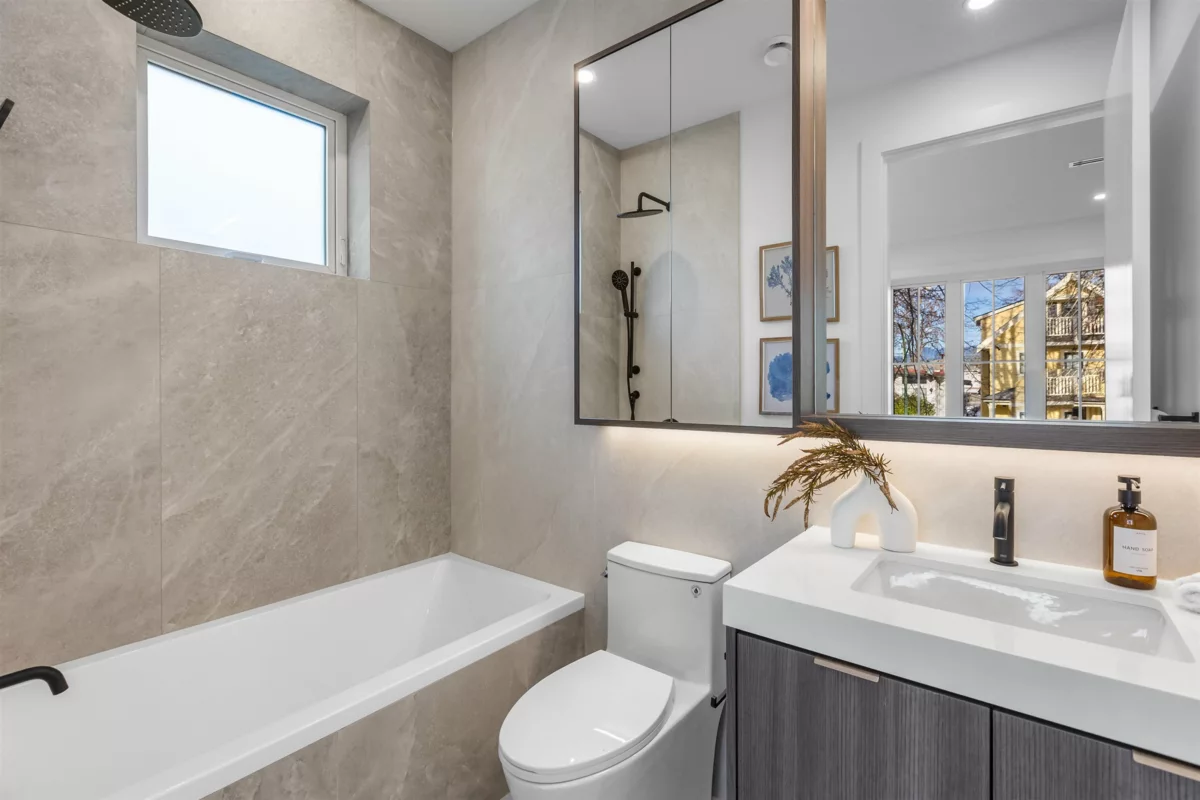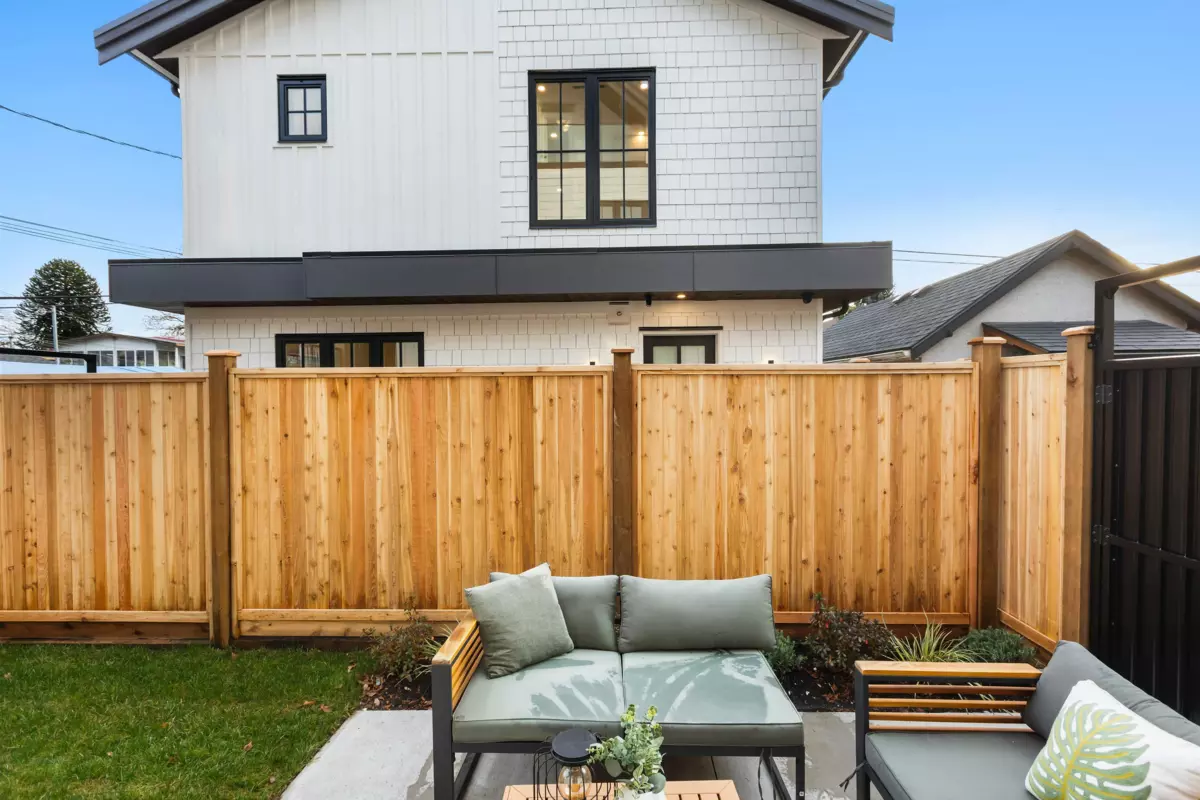 Discover Fraser Living, a boutique collection of modern farm style homes in the heart of Vancouver’s Sunset neighbourhood. 3-storey back unit offers 3 beds 4 baths + 1 designated EV-ready carport. Every home is crafted w/ elevated features incl radiant floor heating, AC heat pump, eng hardwood, Fisher Paykel appliance package, and custom LED lighting to add to the ambiance. 10ft grand ceiling heights create an expansive sense of space, while the high-efficiency construction with modern amenities delivers premium comfortable living. Positioned within the catchment of John Henderson Elementary + John Oliver Secondary, this family-friendly address is surrounded by parks, shopping + transit and designed for families and urban professionals.